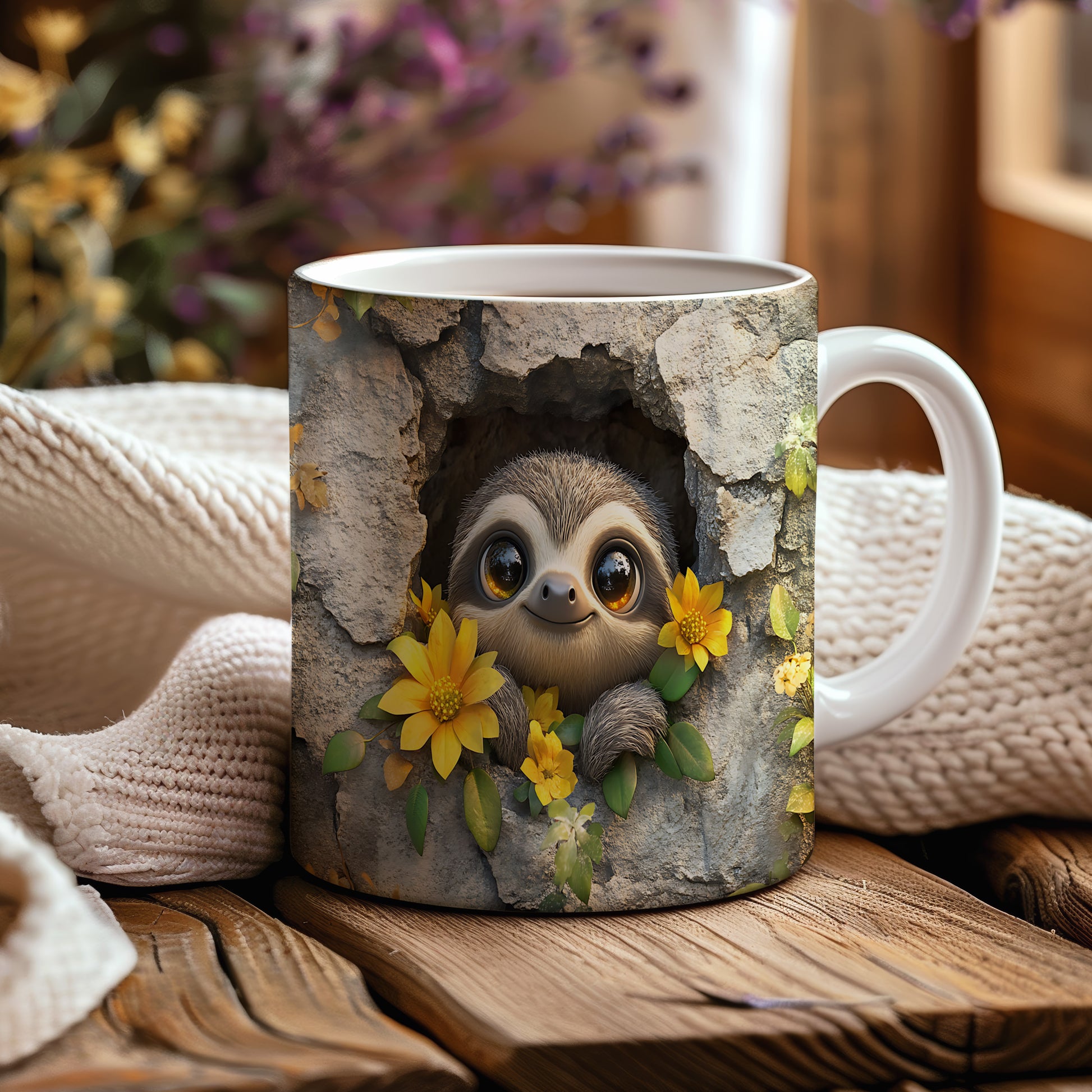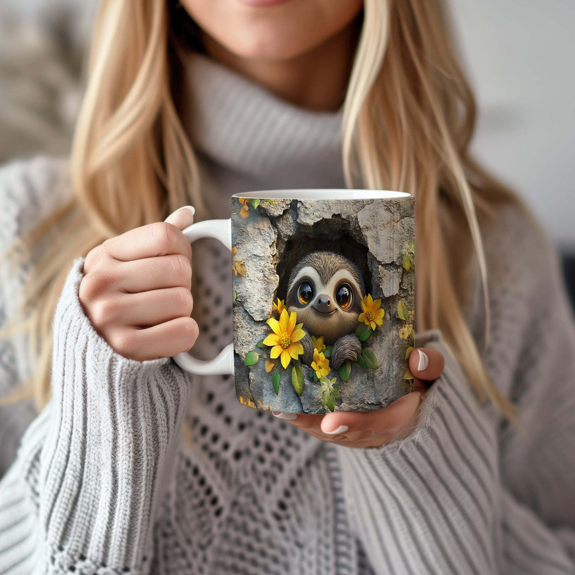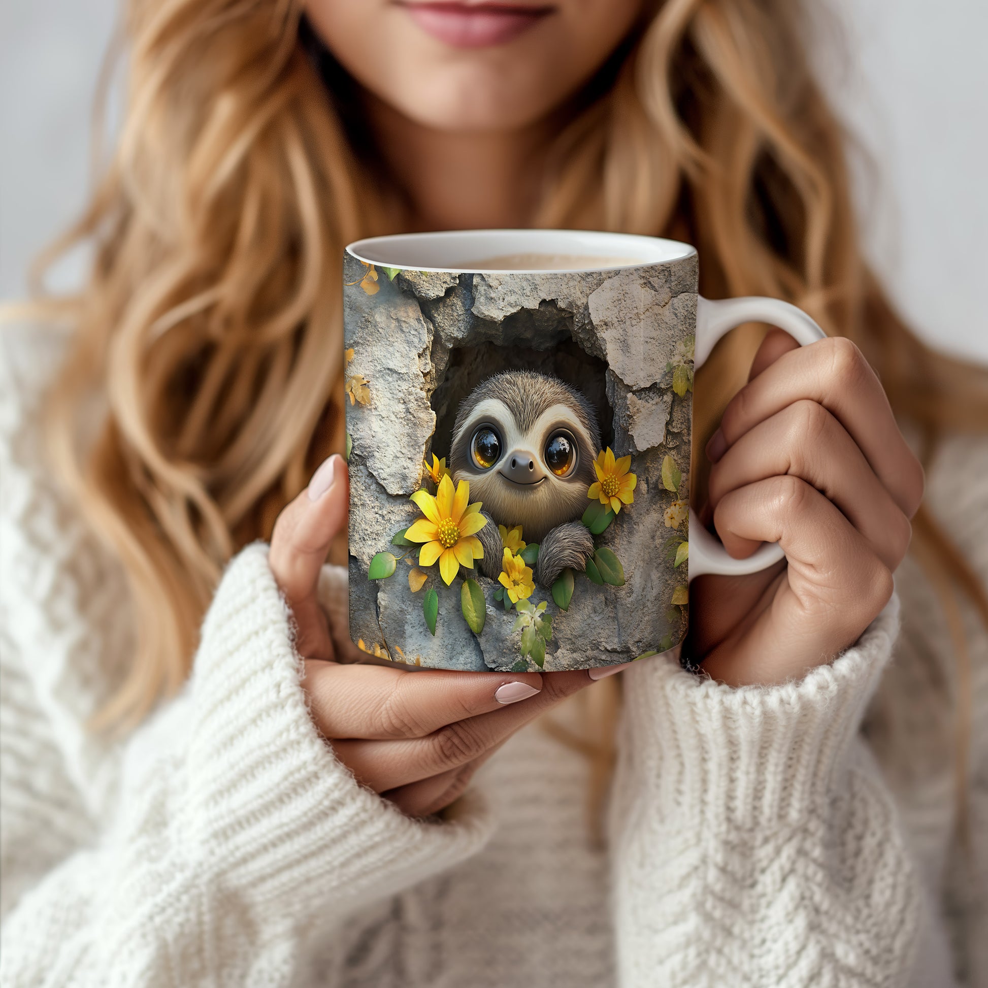 Veselý hrnek s motivem lenochoda obklopeného žlutými květinami. Tento hrnek potěší každého milovníka přírody a zvířat, ideální jako dárek pro přátele nebo rodinu. Materiál: keramika. Objem: 330 ml. Vhodné do myčky i mikrovlnky. Užívejte si kávu nebo čaj s tímto originálním kouskem, který přinese radost do každého dne.