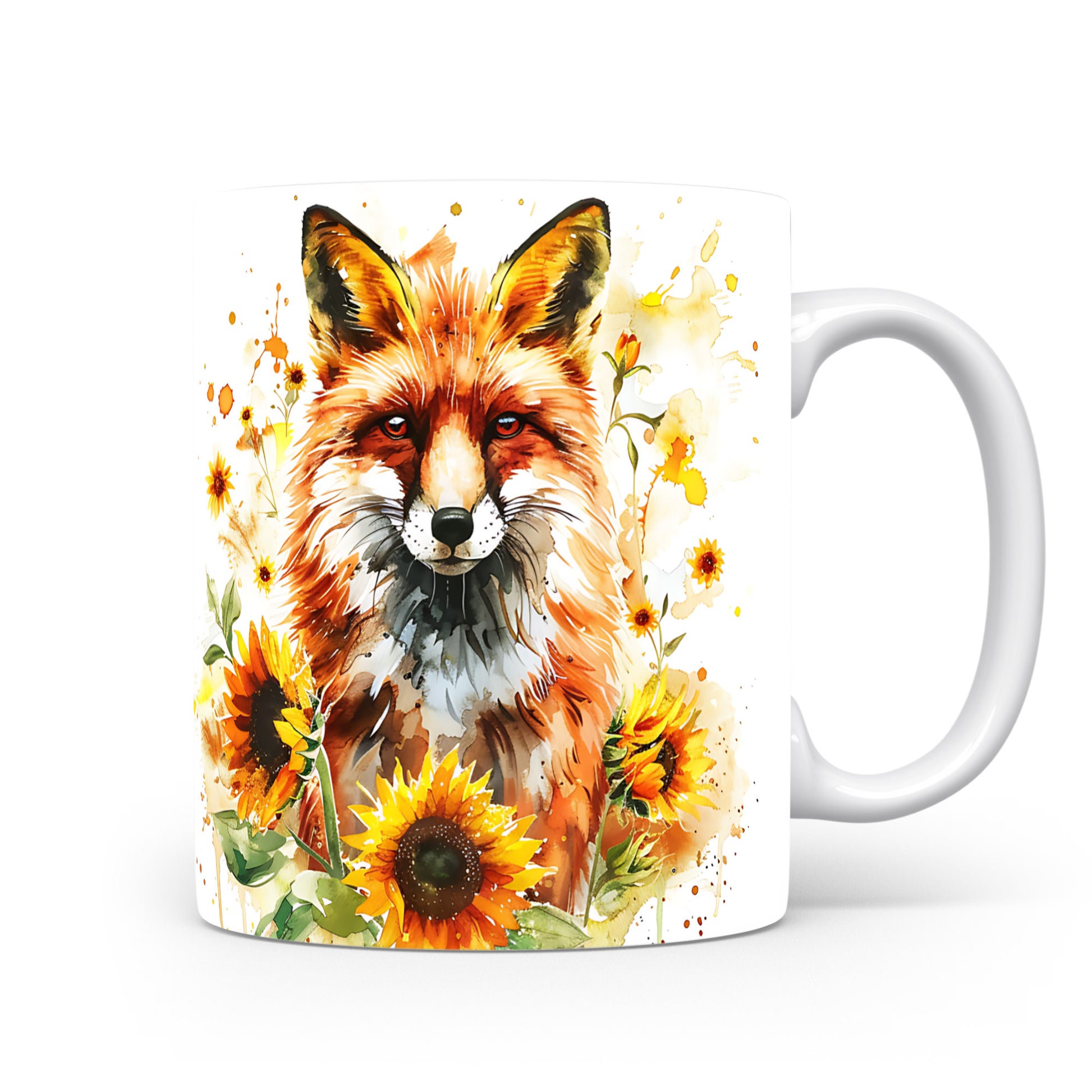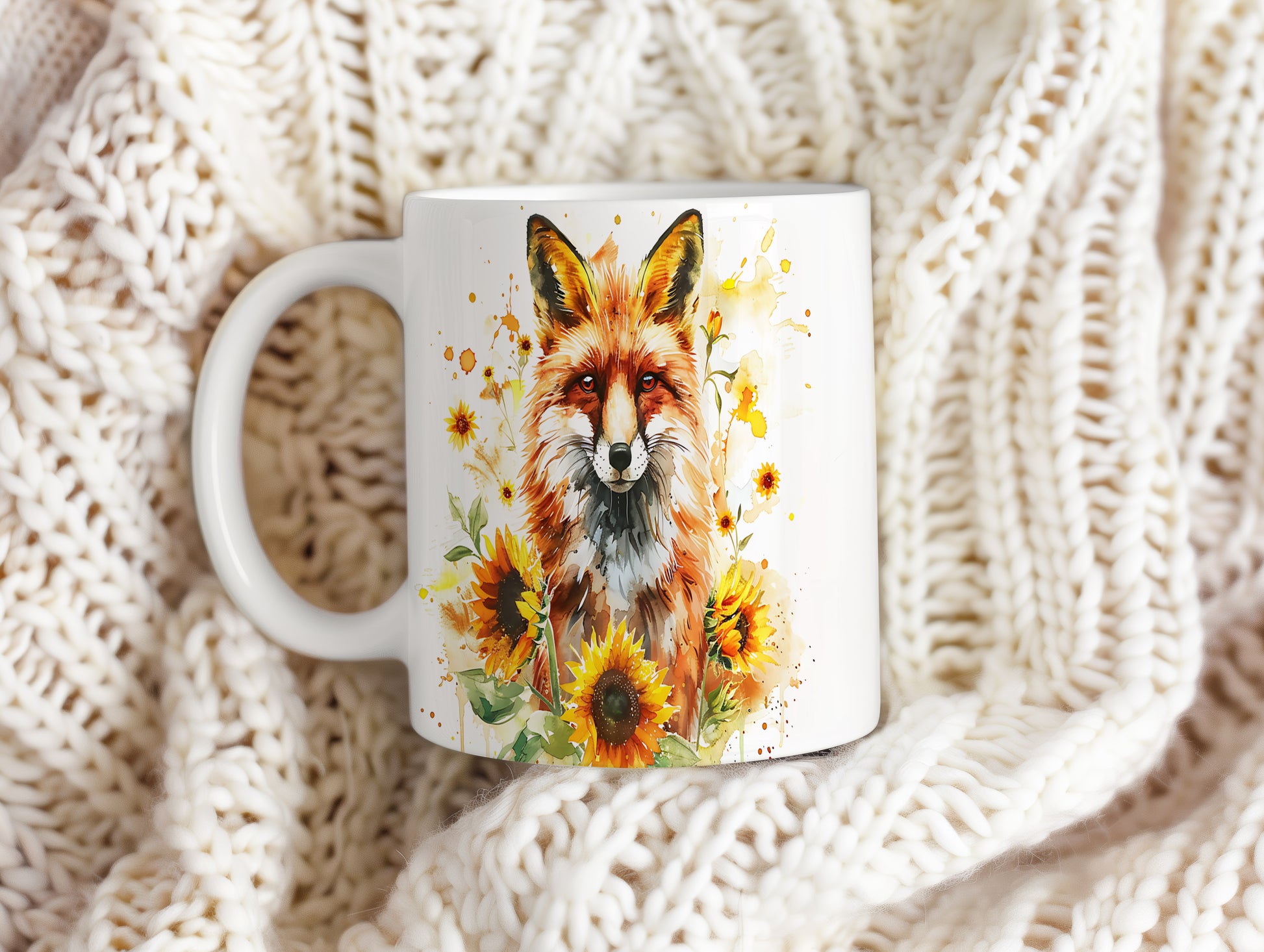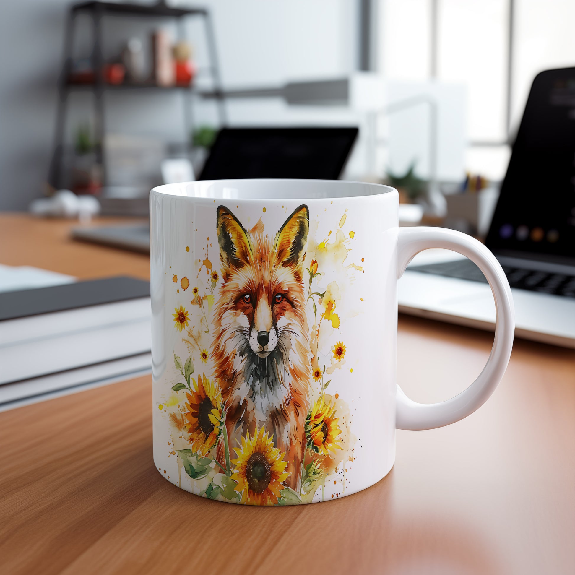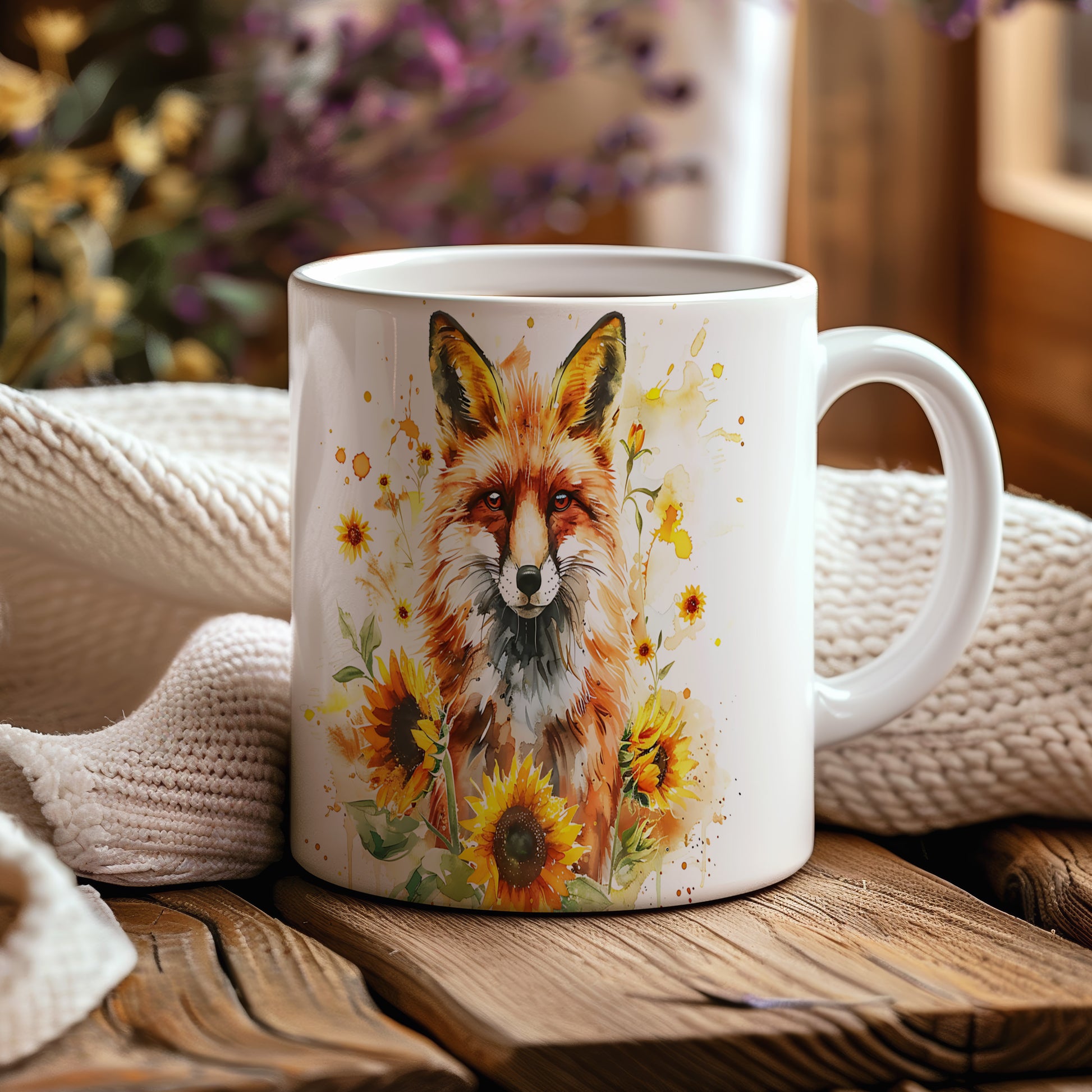 Hrnek s motivem lišky a slunečnic je elegantním kouskem, který spojuje přírodu s krásným designem. Je ideální pro milovníky zvířat a přírody, skvělý tip na dárek pro přátele nebo rodinu. Materiál: keramika. Objem: 330 ml. Vhodné do myčky i mikrovlnky. Tento hrnek přináší radost při každém doušku oblíbeného nápoje.