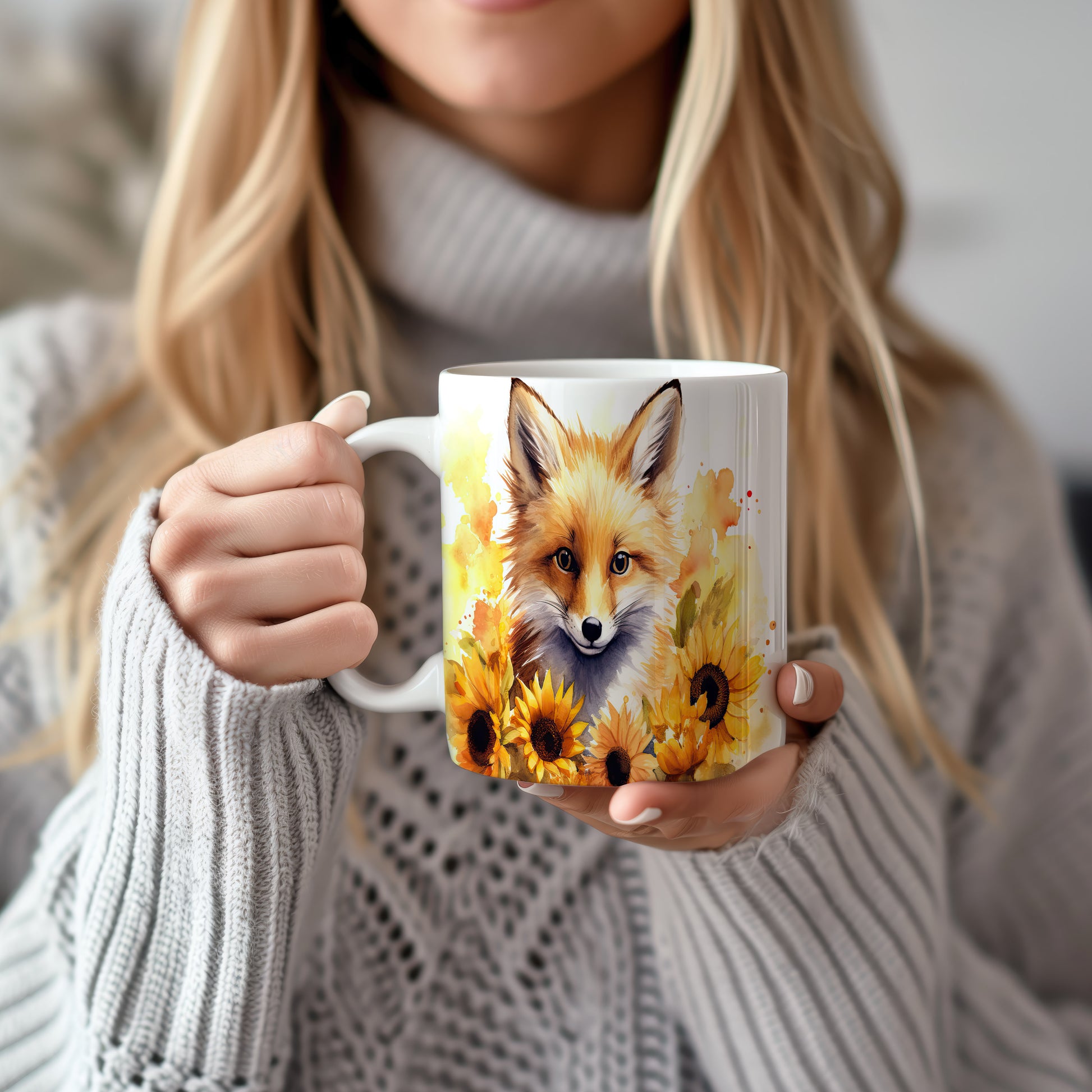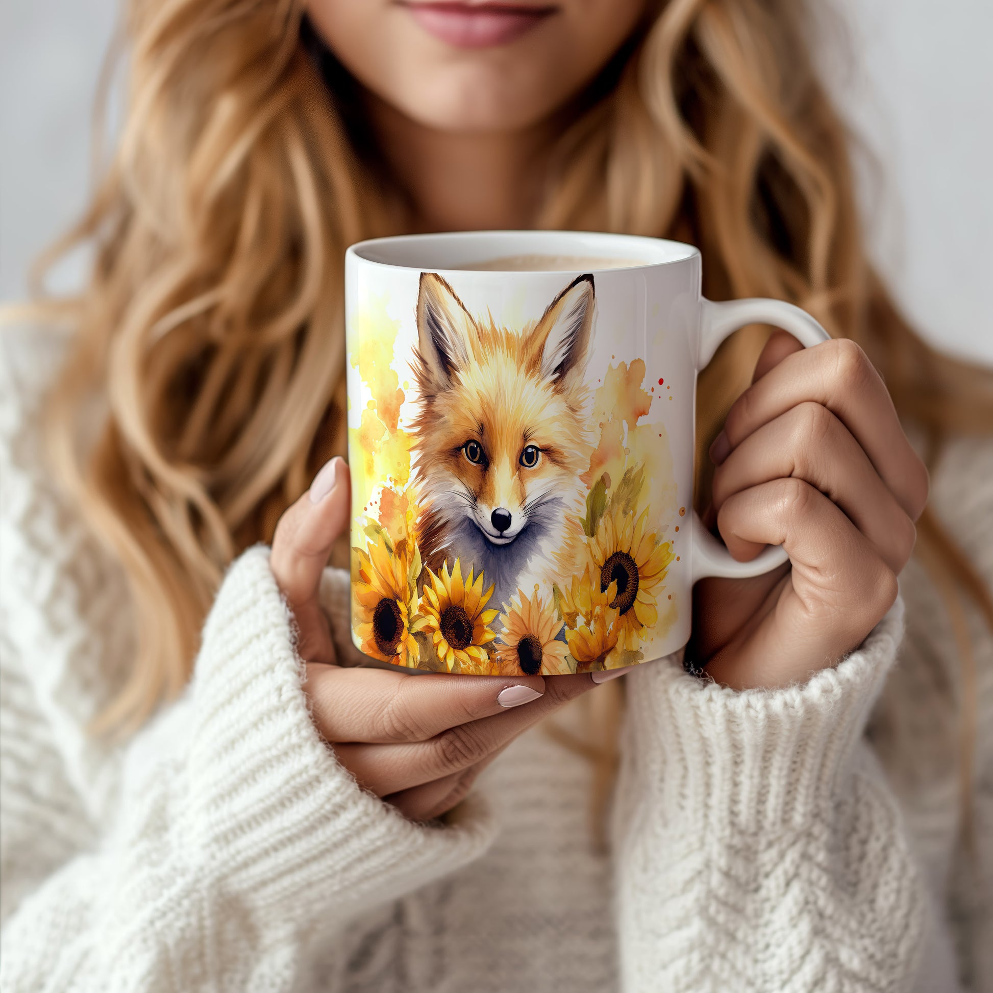 Hrnek s motivem lišky a slunečnic je krásným kouskem, který potěší milovníky přírody. Tento hrnek je skvělým dárkem pro přátele nebo rodinu, kteří ocení originální design. Materiál: keramika. Objem: 330 ml. Vhodné do myčky i mikrovlnky. Díky svému stylovému vzhledu přináší do každodenního pití radost a pohodu.