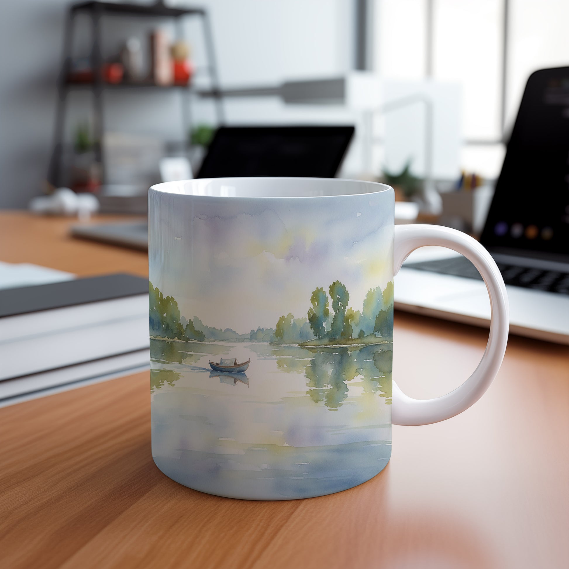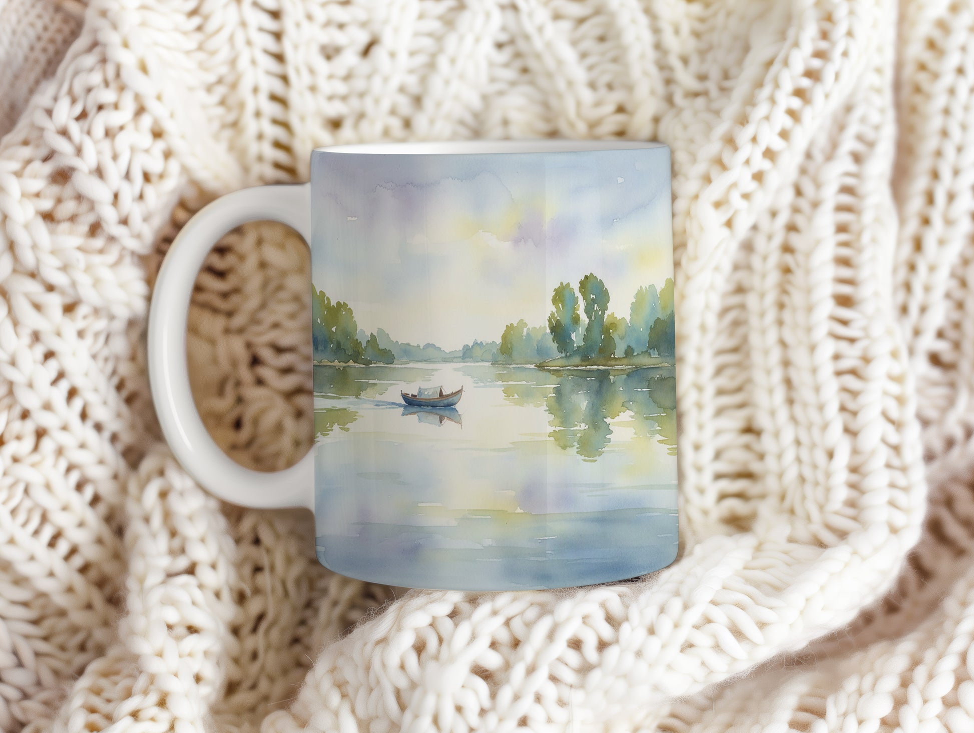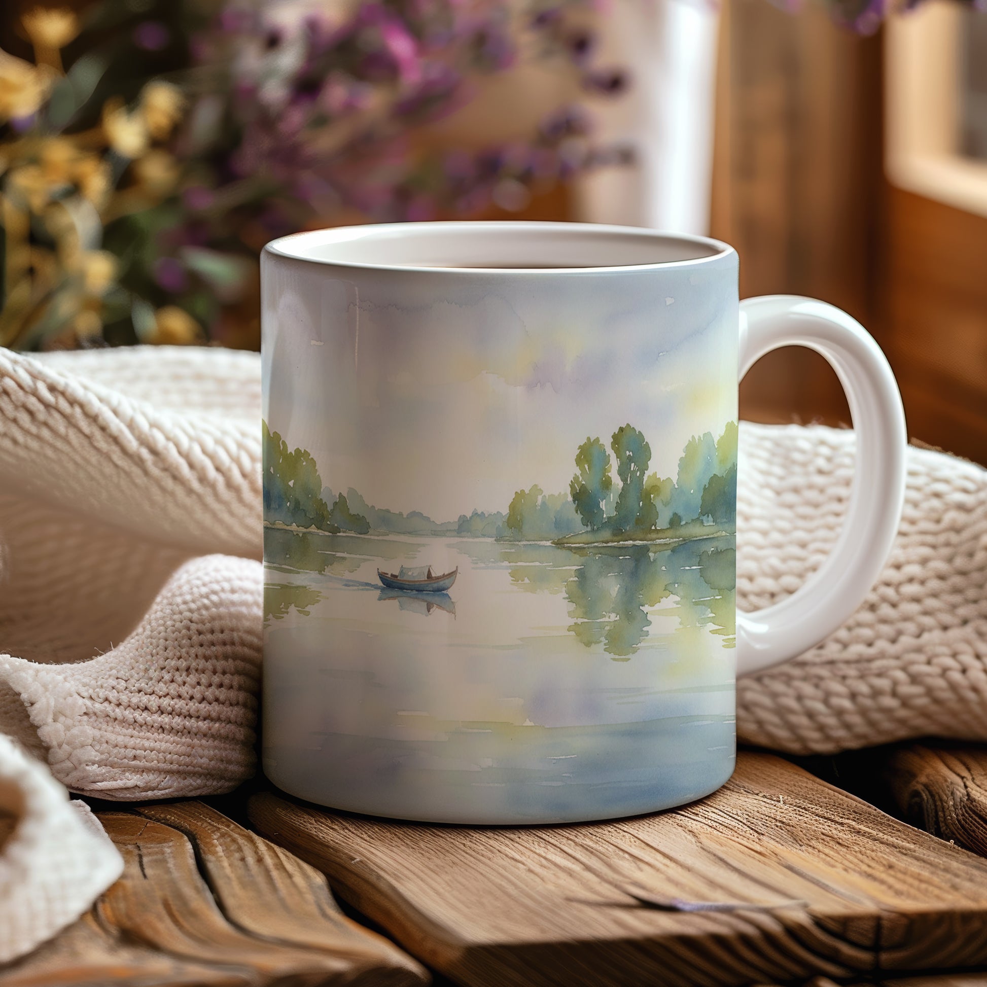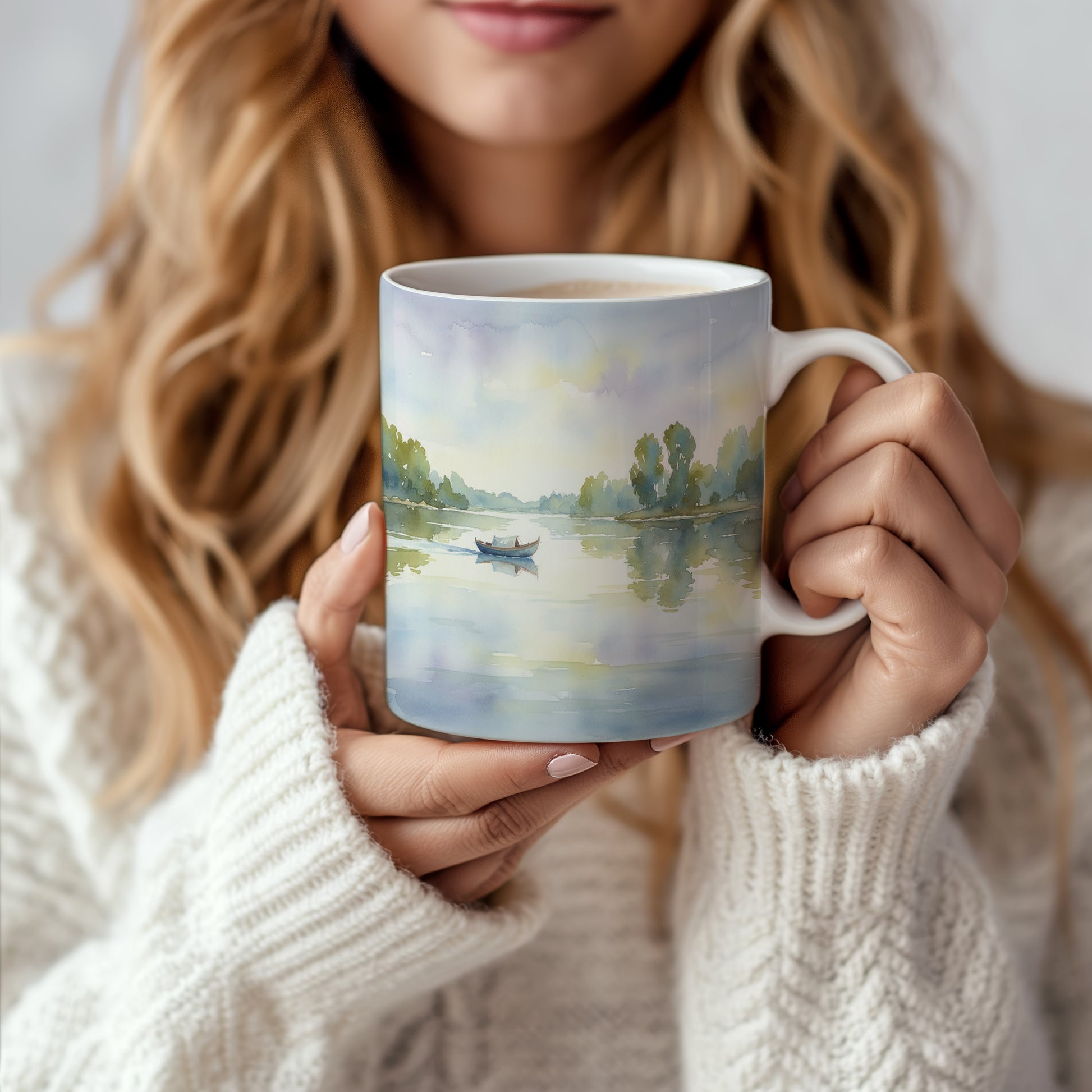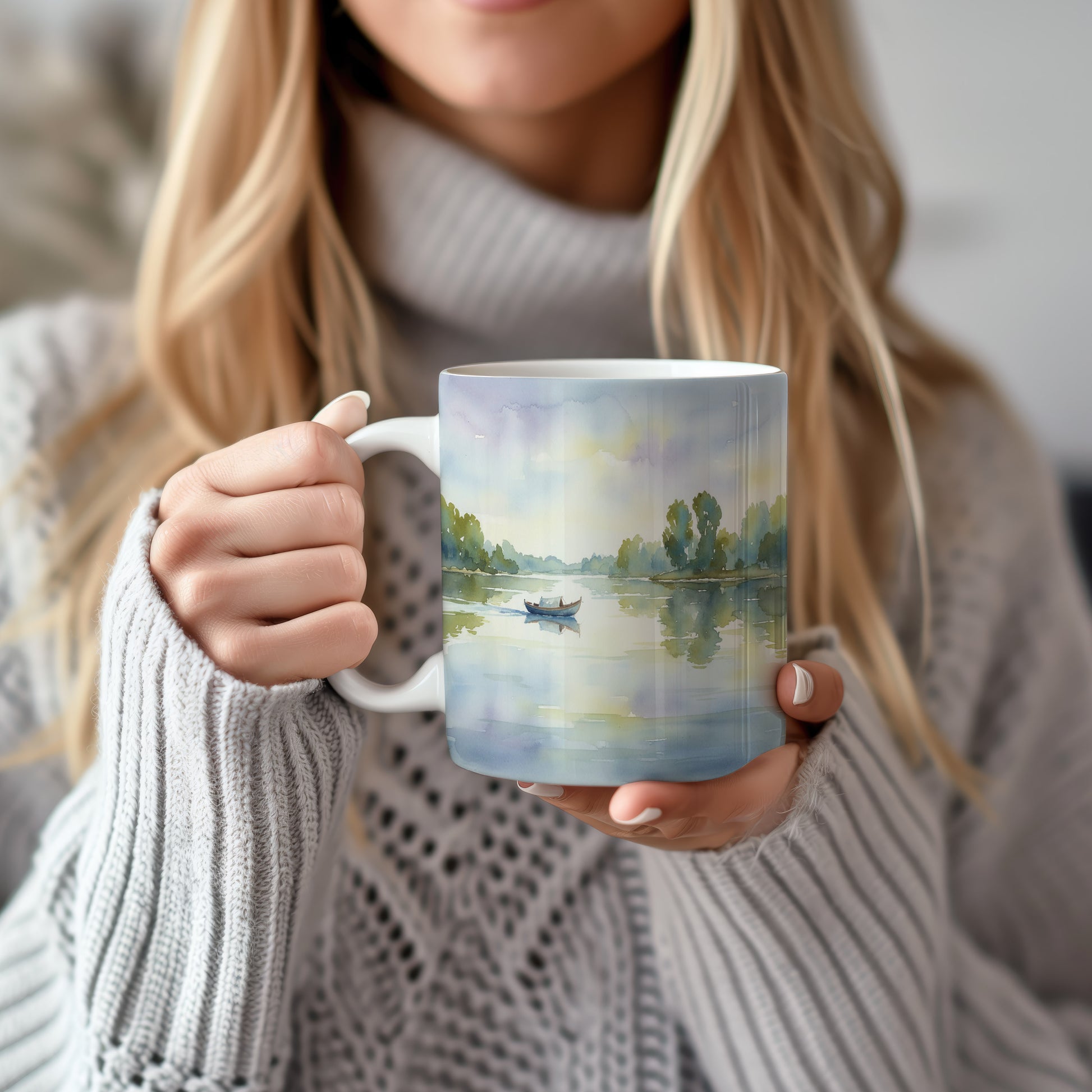 Objevte kouzlo akvarelu s hrnkem, který zobrazuje loď na poklidné hladině jezera. Jemné barvy a klidná atmosféra vás přenesou do světa pohody. Hrnek 330 ml – vhodný do myčky i mikrovlnky.