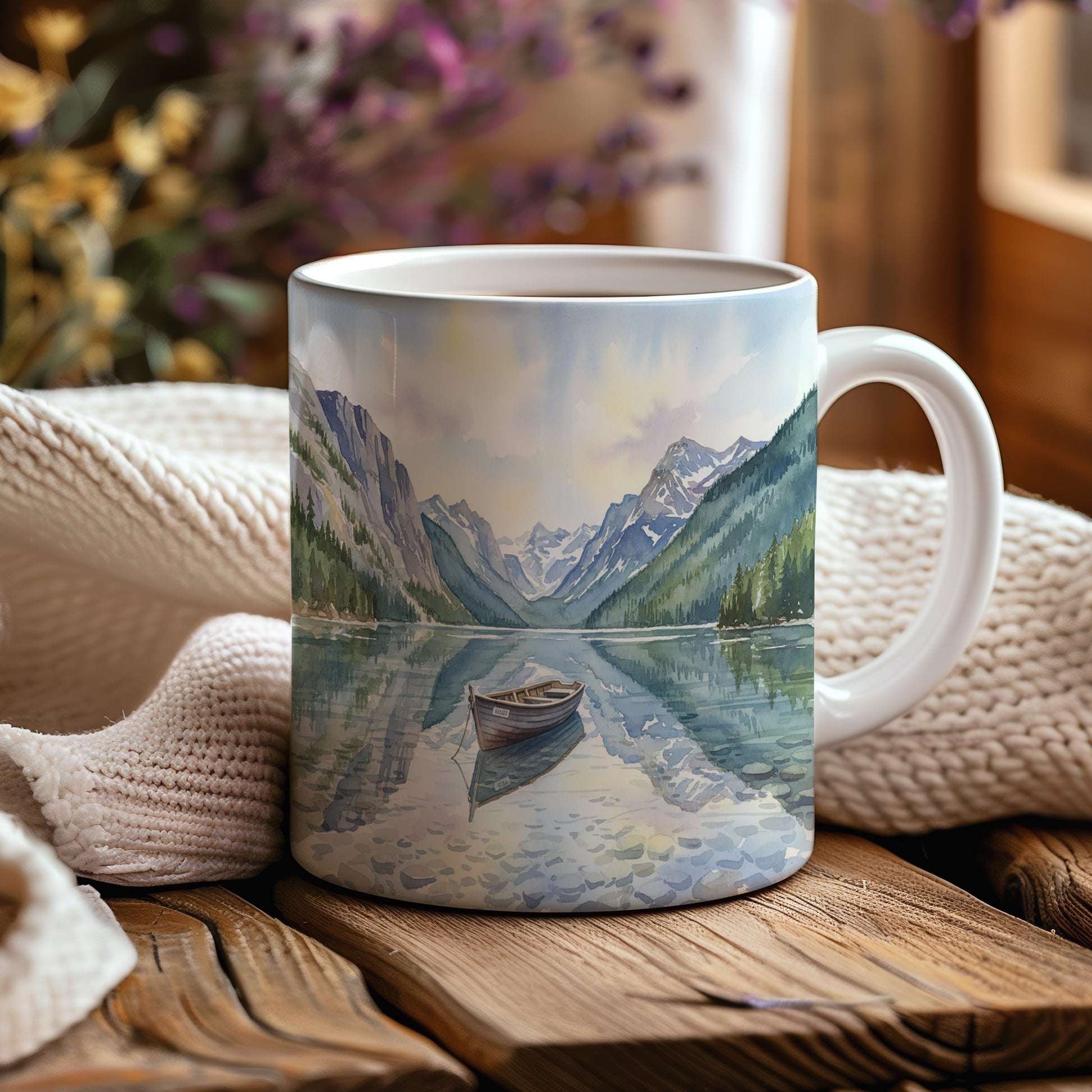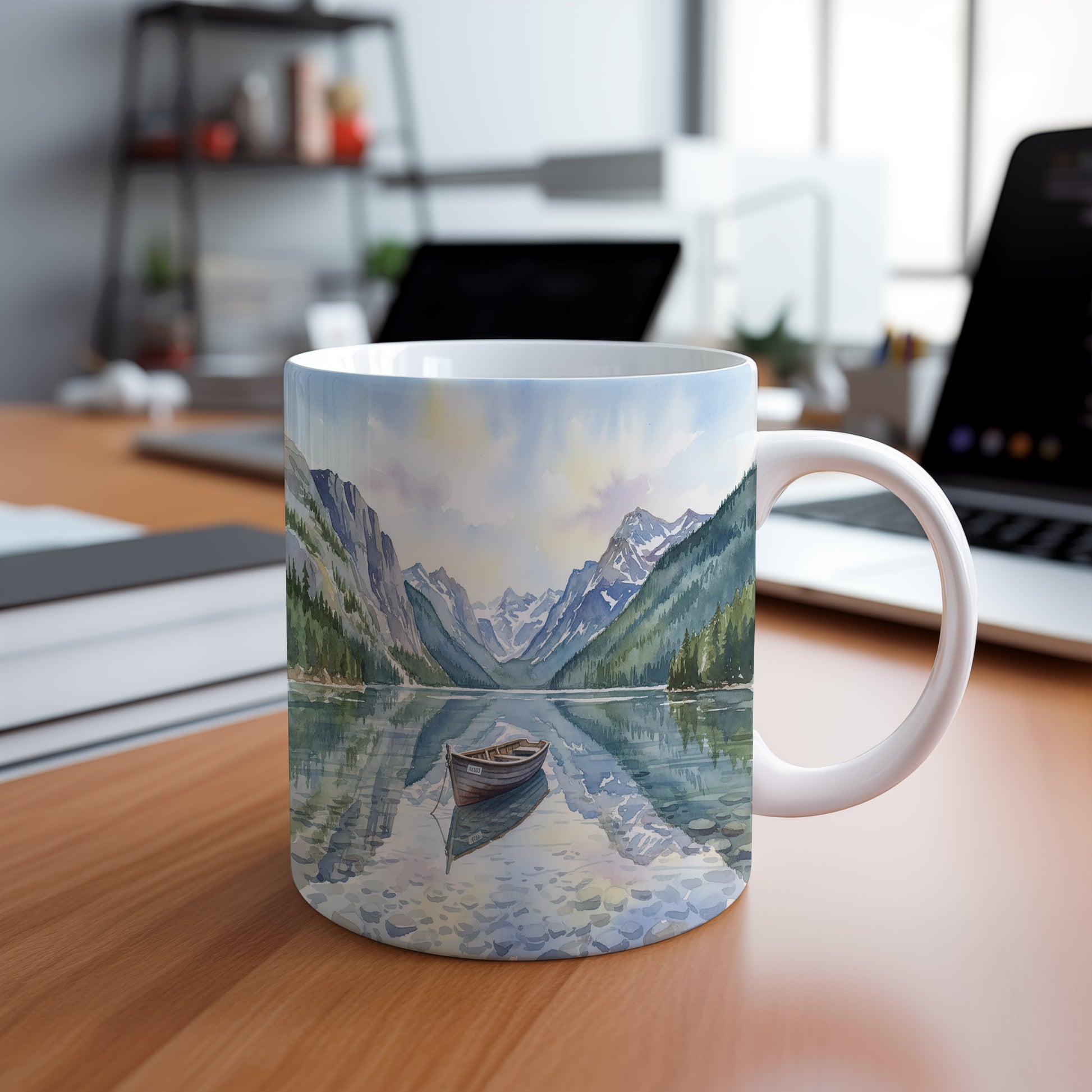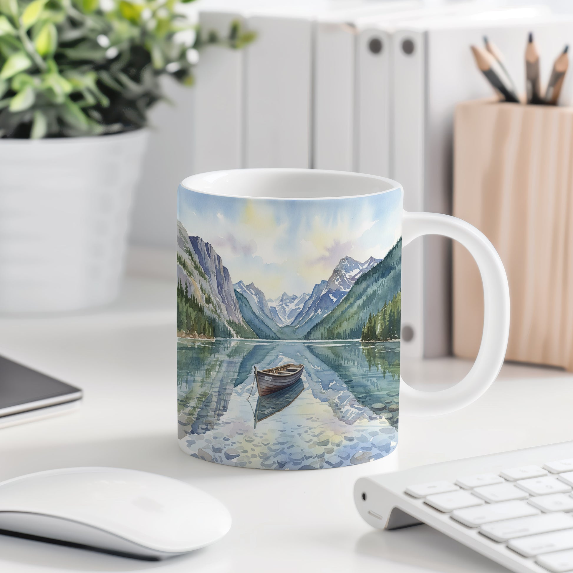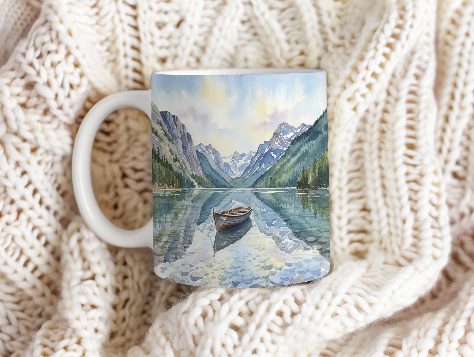 Objevte klid horského jezera s loďkou v akvarelu. Jemné barvy a detailní zpracování vás přenesou do světa pohody. Hrnek 330 ml – vhodný do myčky i mikrovlnky.