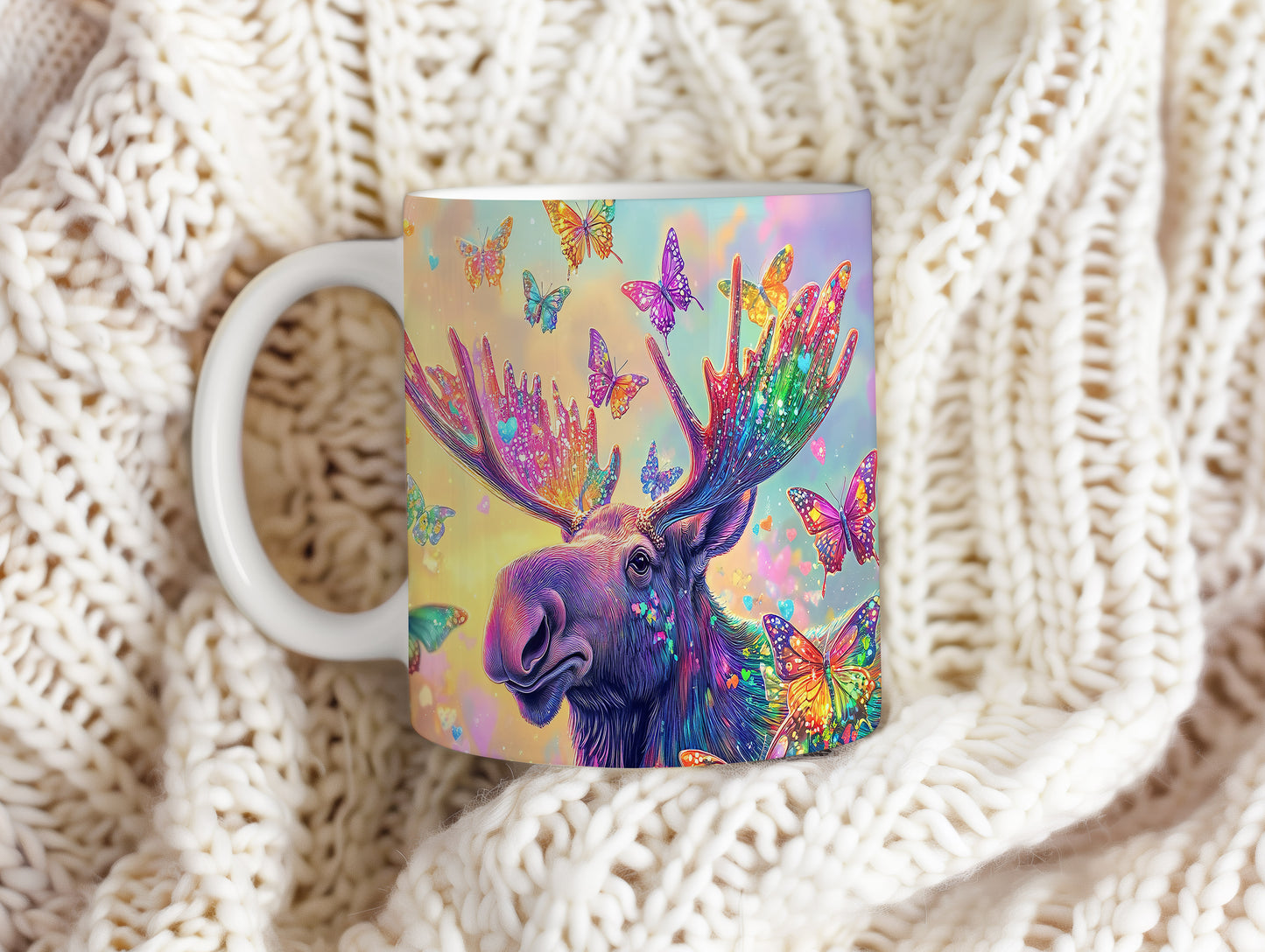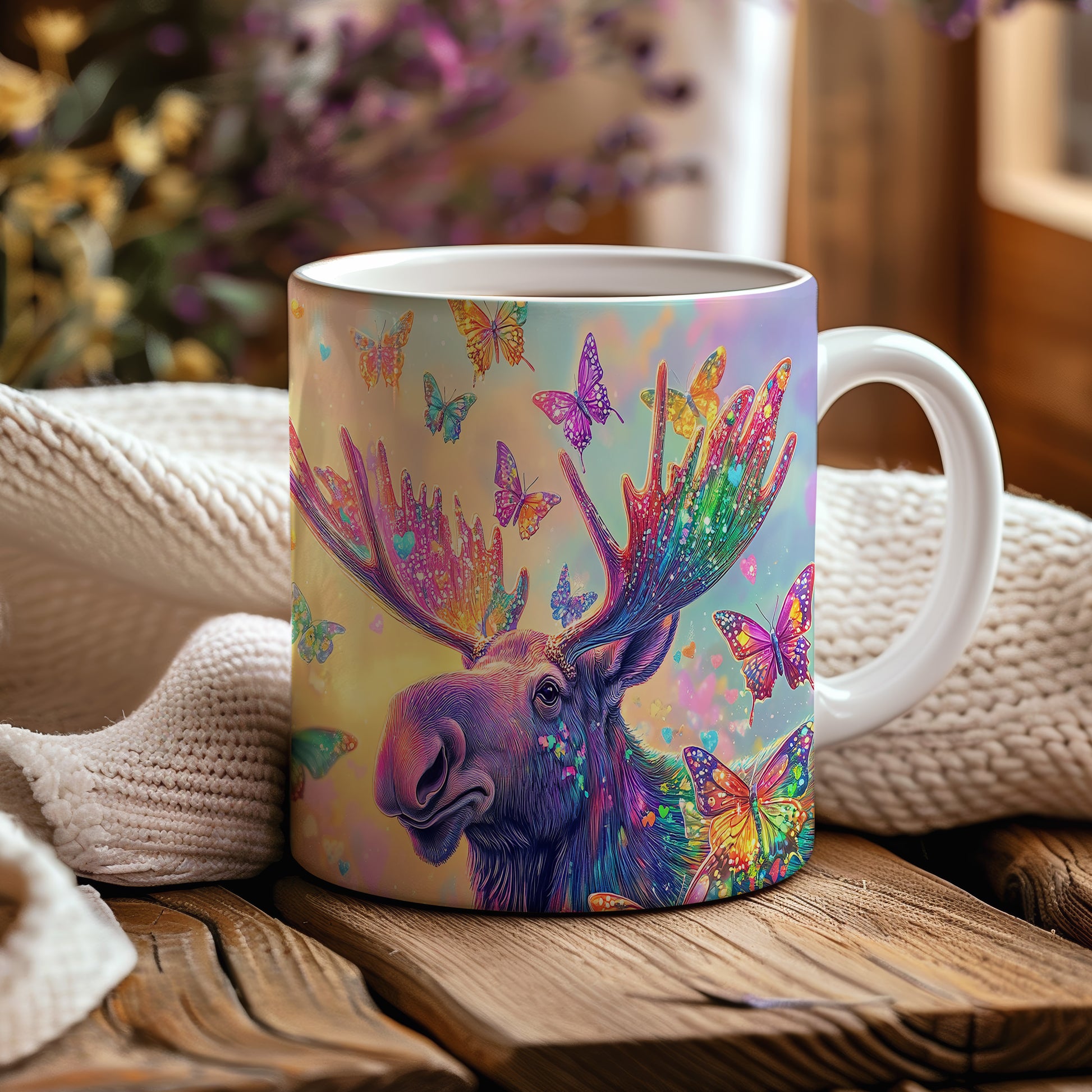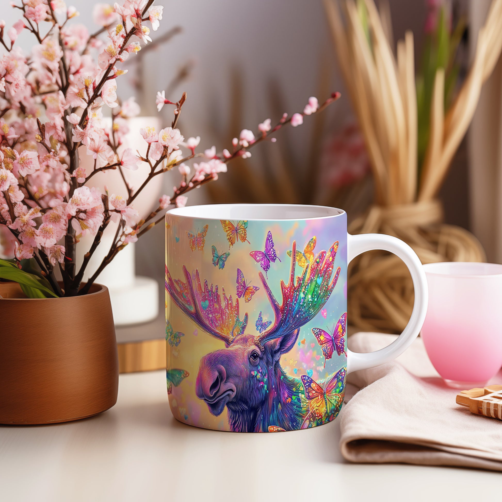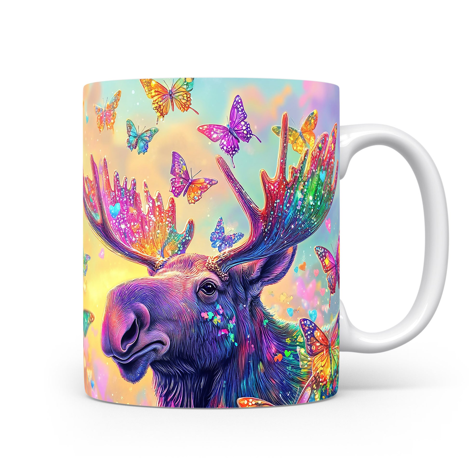 Hrnek s krásným losím motivem, obklopený barevnými motýly. Tento hrnek je skvělým dárkem pro milovníky přírody a zvířat. Materiál: keramika. Objem: 330 ml. Vhodné do myčky i mikrovlnky. Díky svému designu přináší do každodenního pití radost a pozitivní energii.