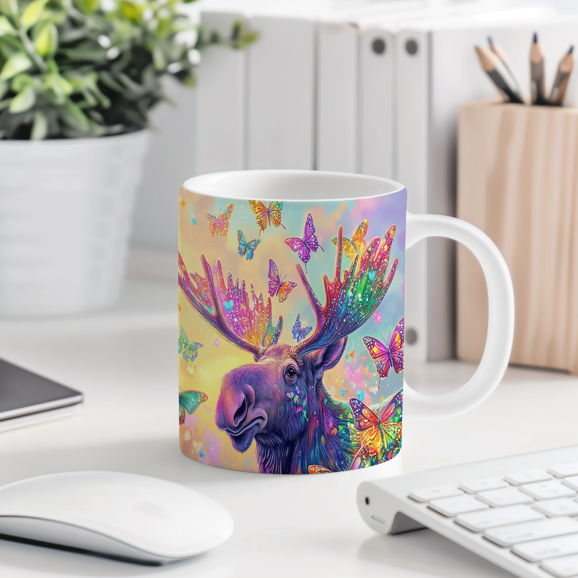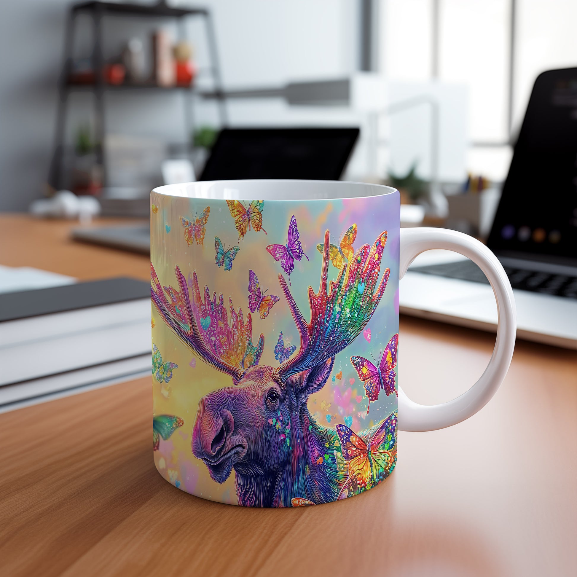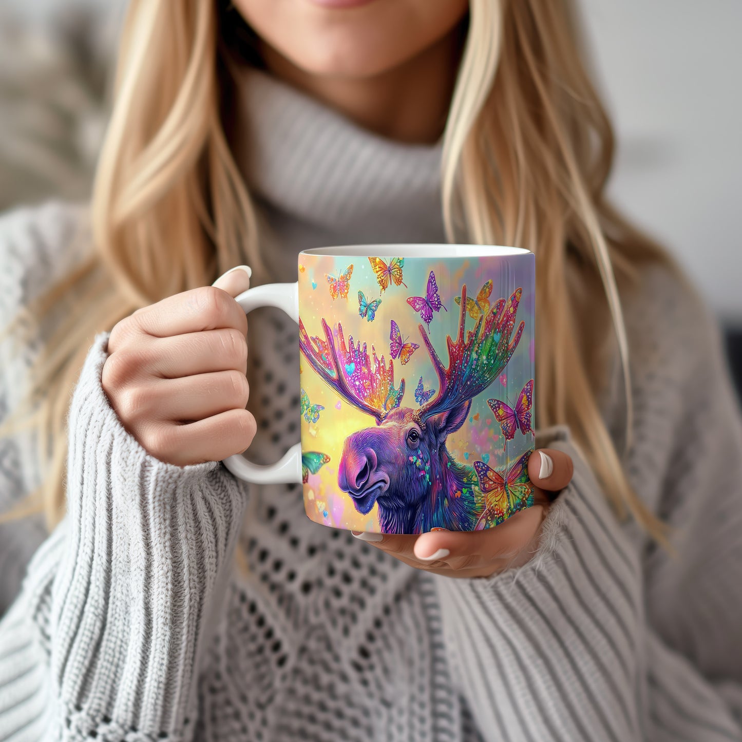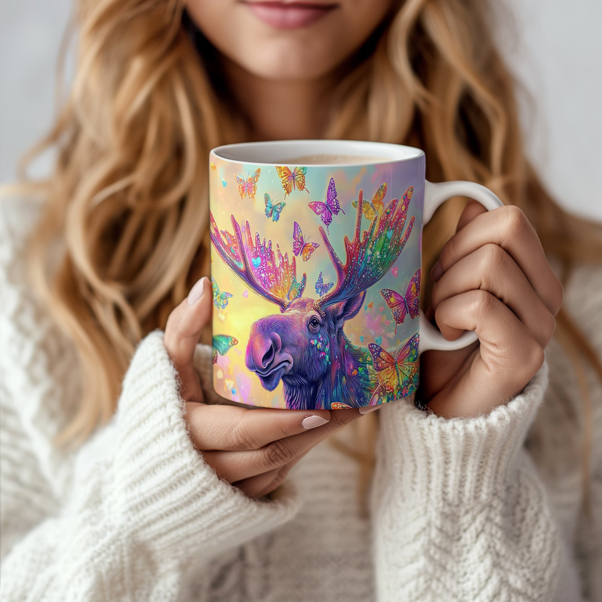 Hrnek s krásným losím motivem, obklopený barevnými motýly. Tento hrnek je skvělým dárkem pro milovníky přírody a zvířat. Materiál: keramika. Objem: 330 ml. Vhodné do myčky i mikrovlnky. Díky svému designu přináší do každodenního pití radost a pozitivní energii.