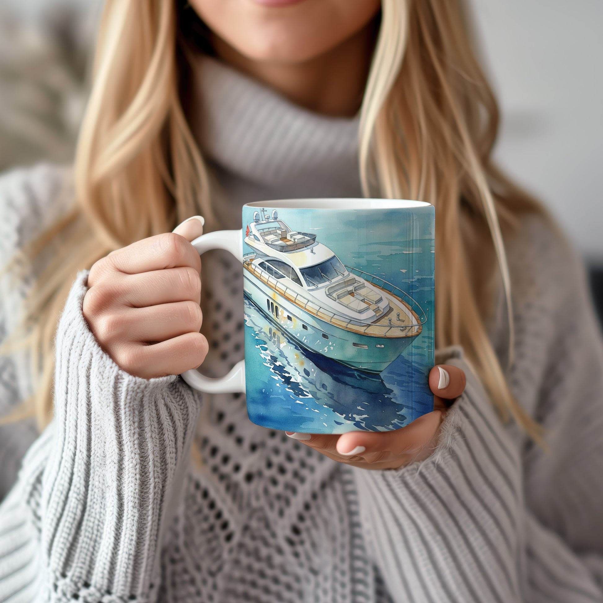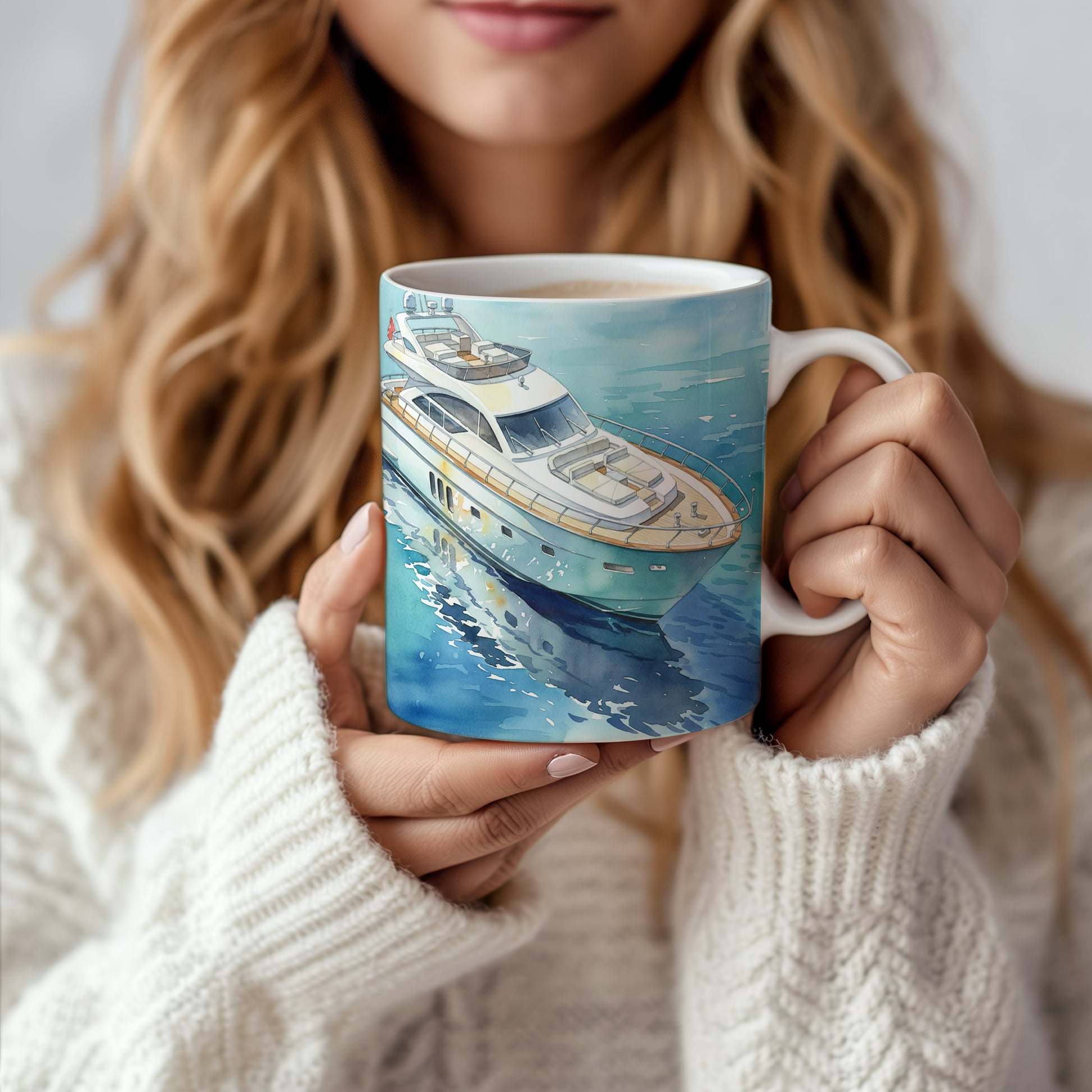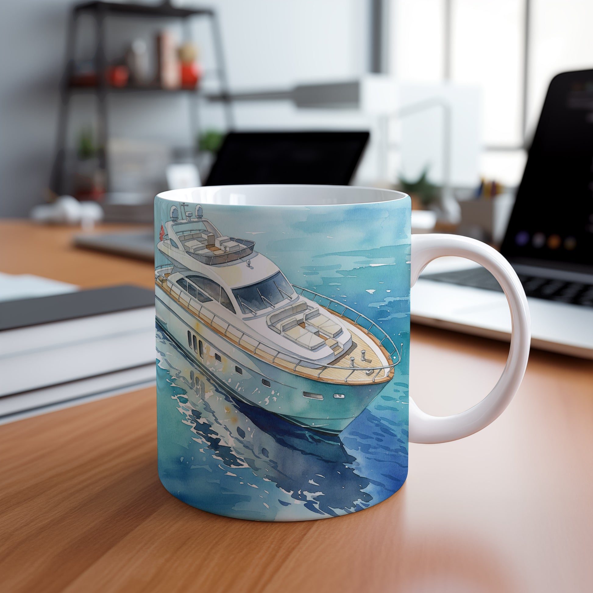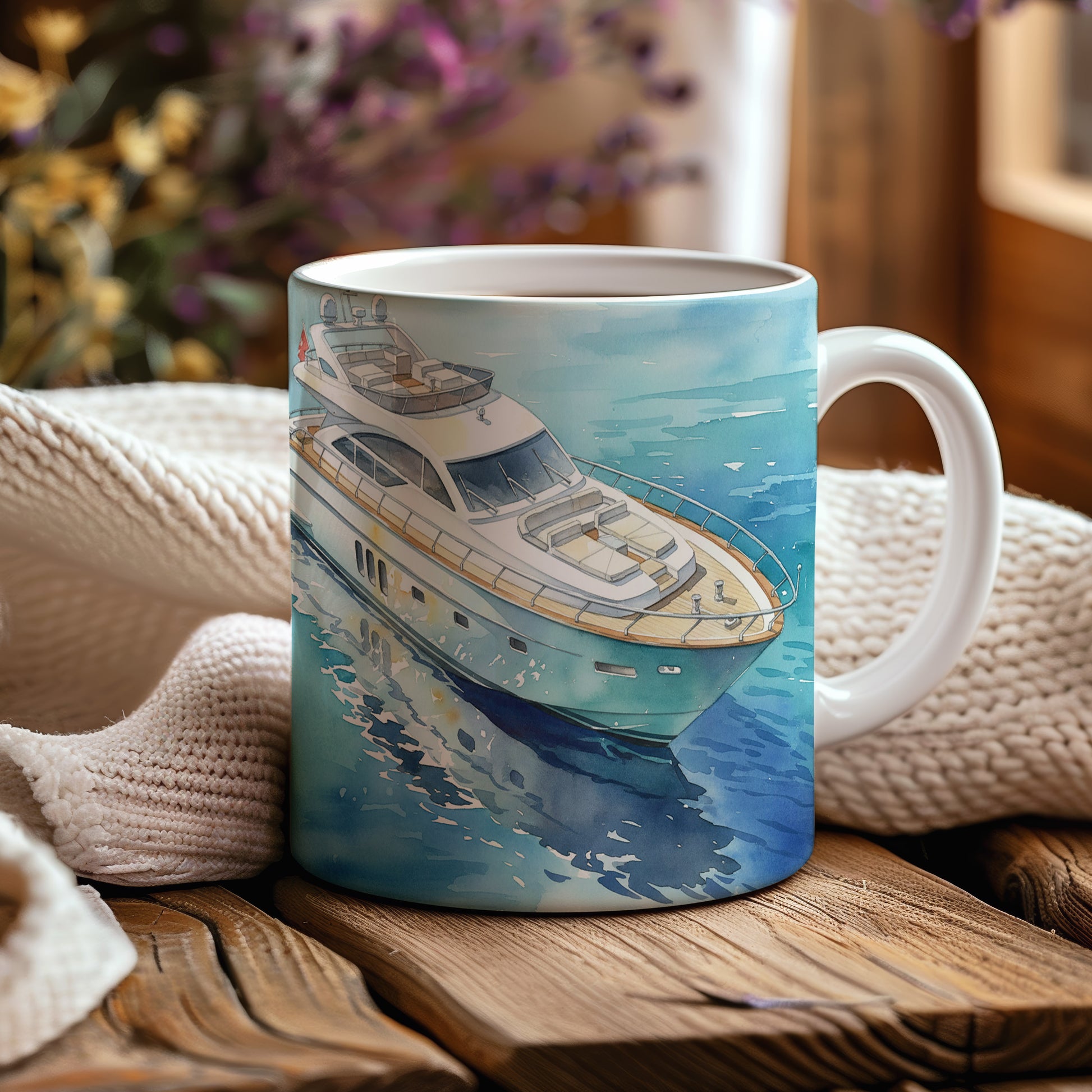 Elegantní akvarelový motiv jachty na klidné vodní hladině přináší pocit pohody a luxusu. Hrnek 330 ml – vhodný do myčky i mikrovlnky.