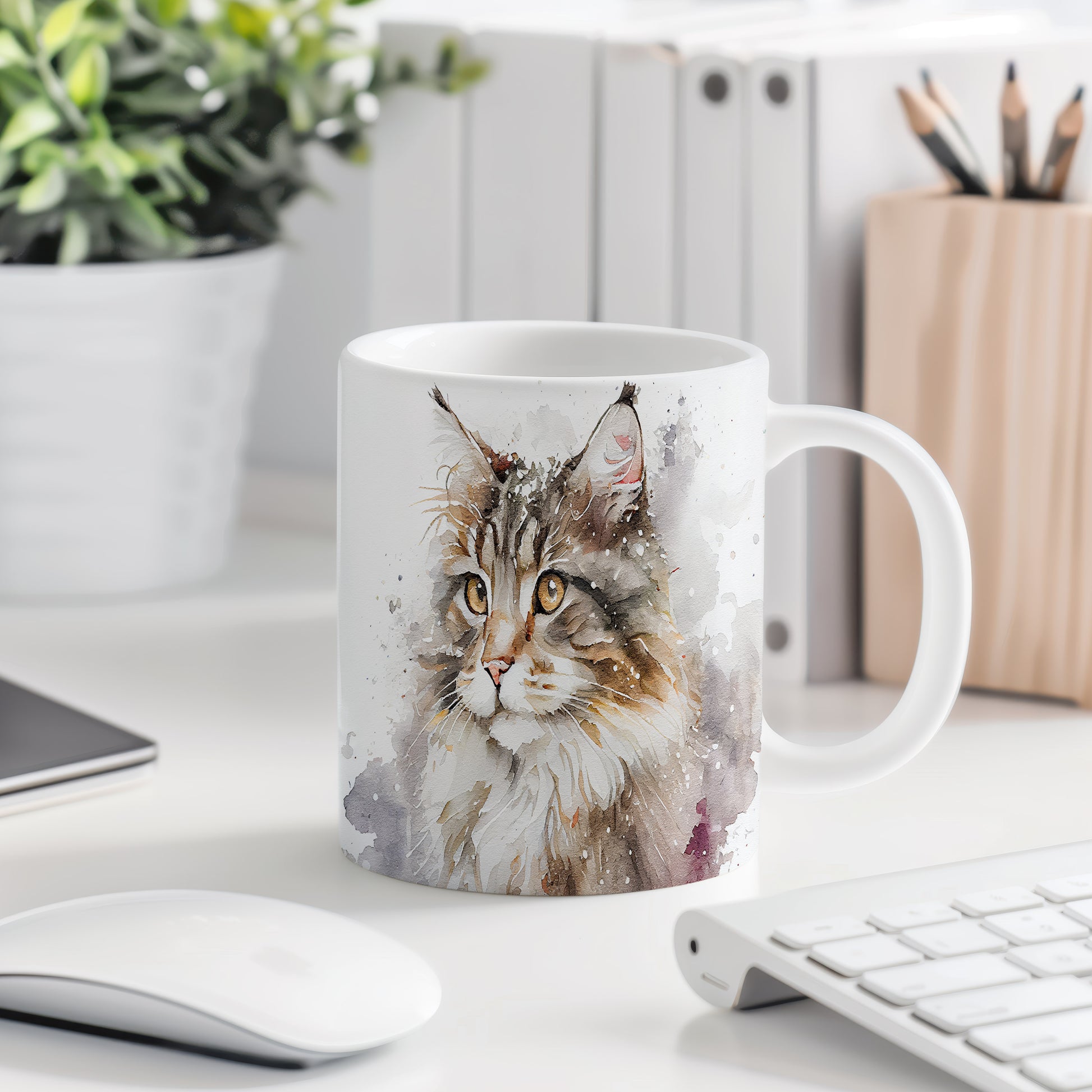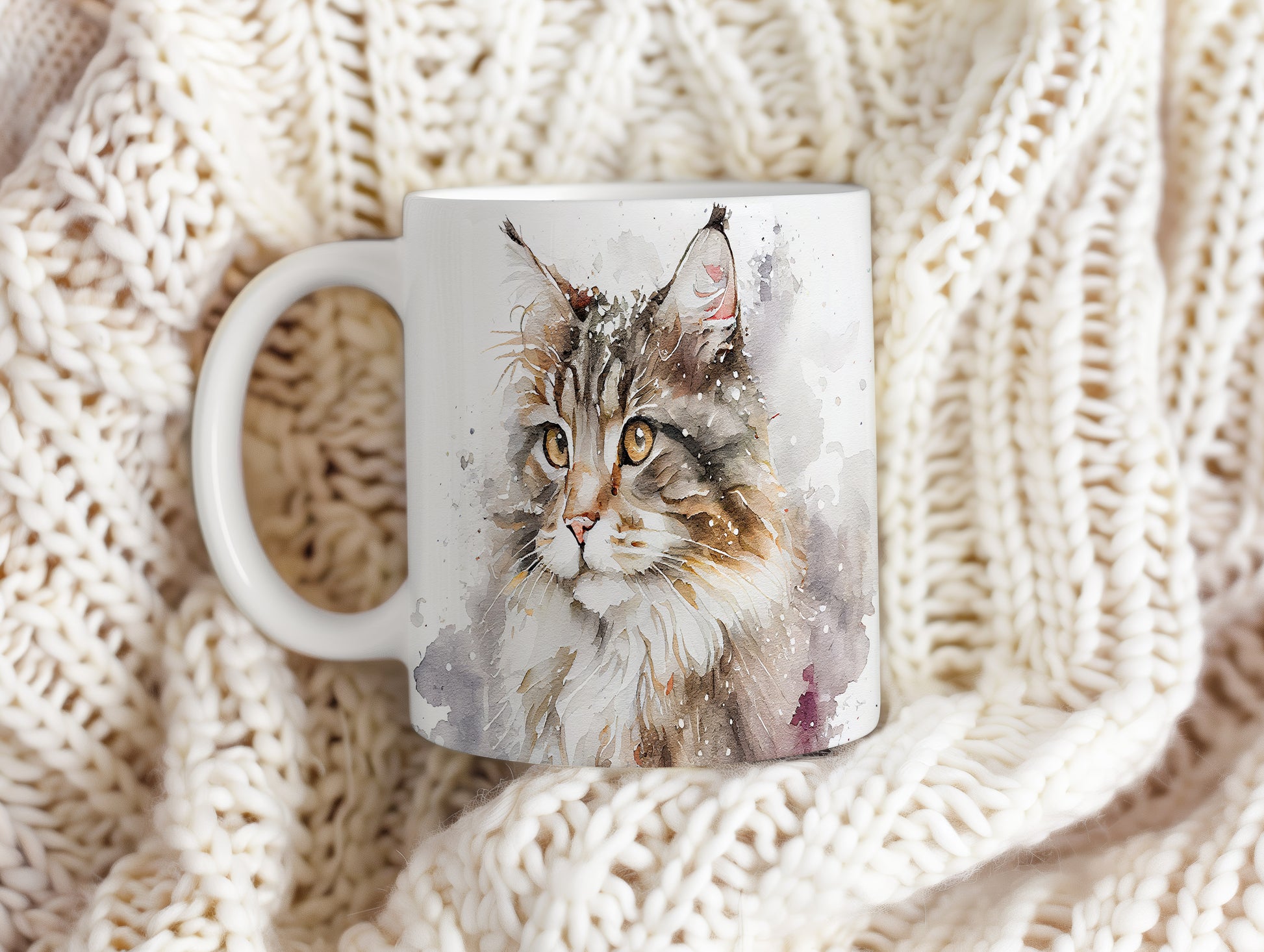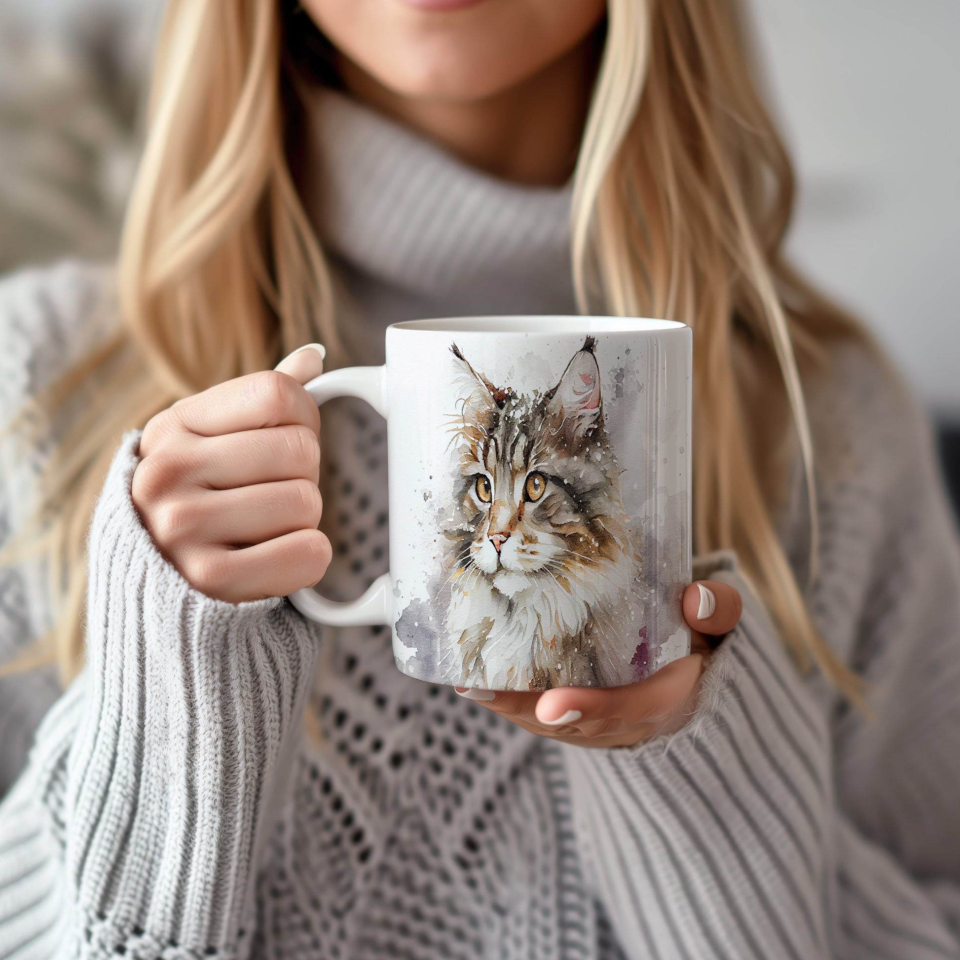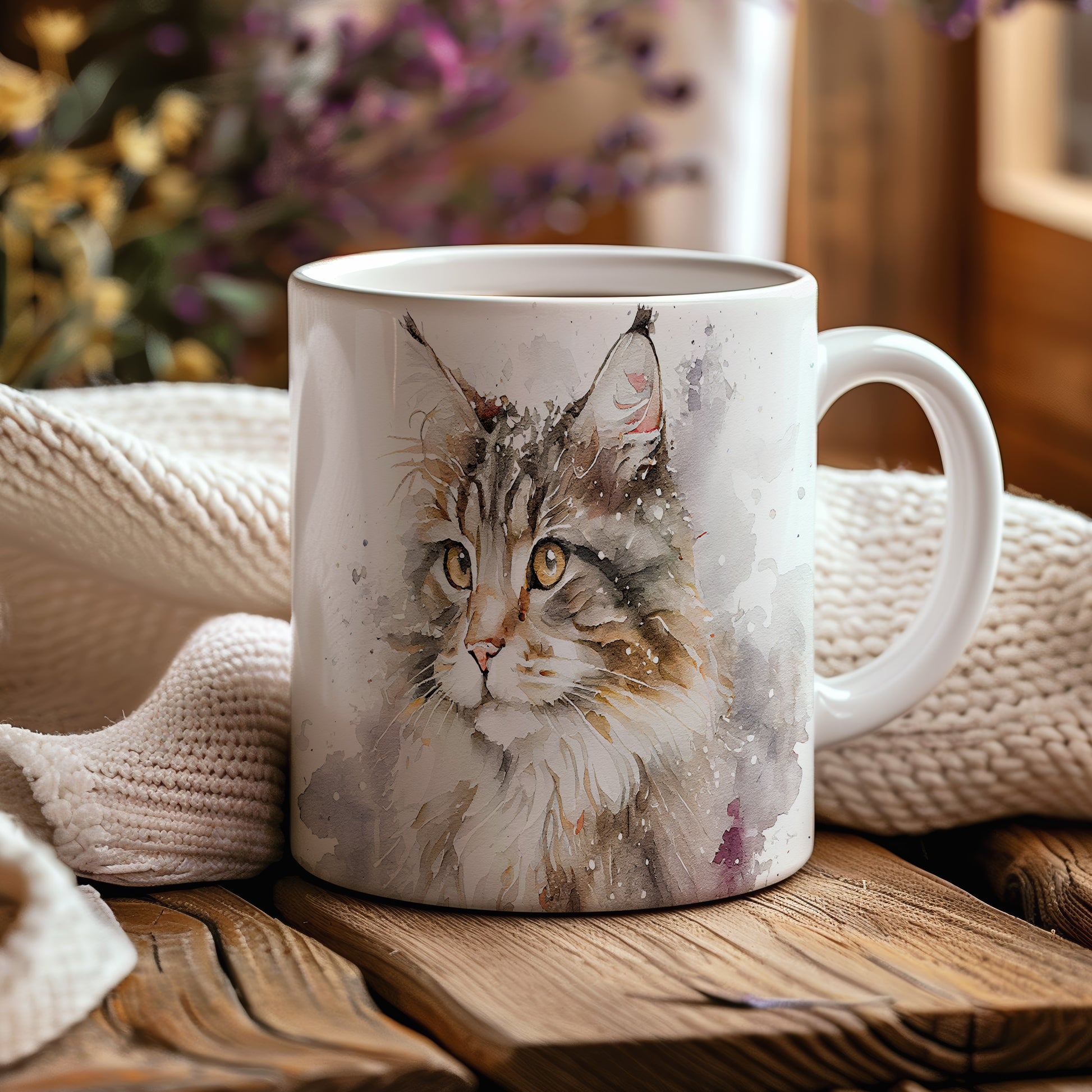 Tento hrnek zobrazuje elegantní kočku v akvarelovém stylu. Je ideální pro milovníky zvířat a skvělým dárkem pro přátele či rodinu. Materiál: keramika. Objem: 330 ml. Vhodné do myčky i mikrovlnky. Používání tohoto hrnku přináší radost z každého doušku.