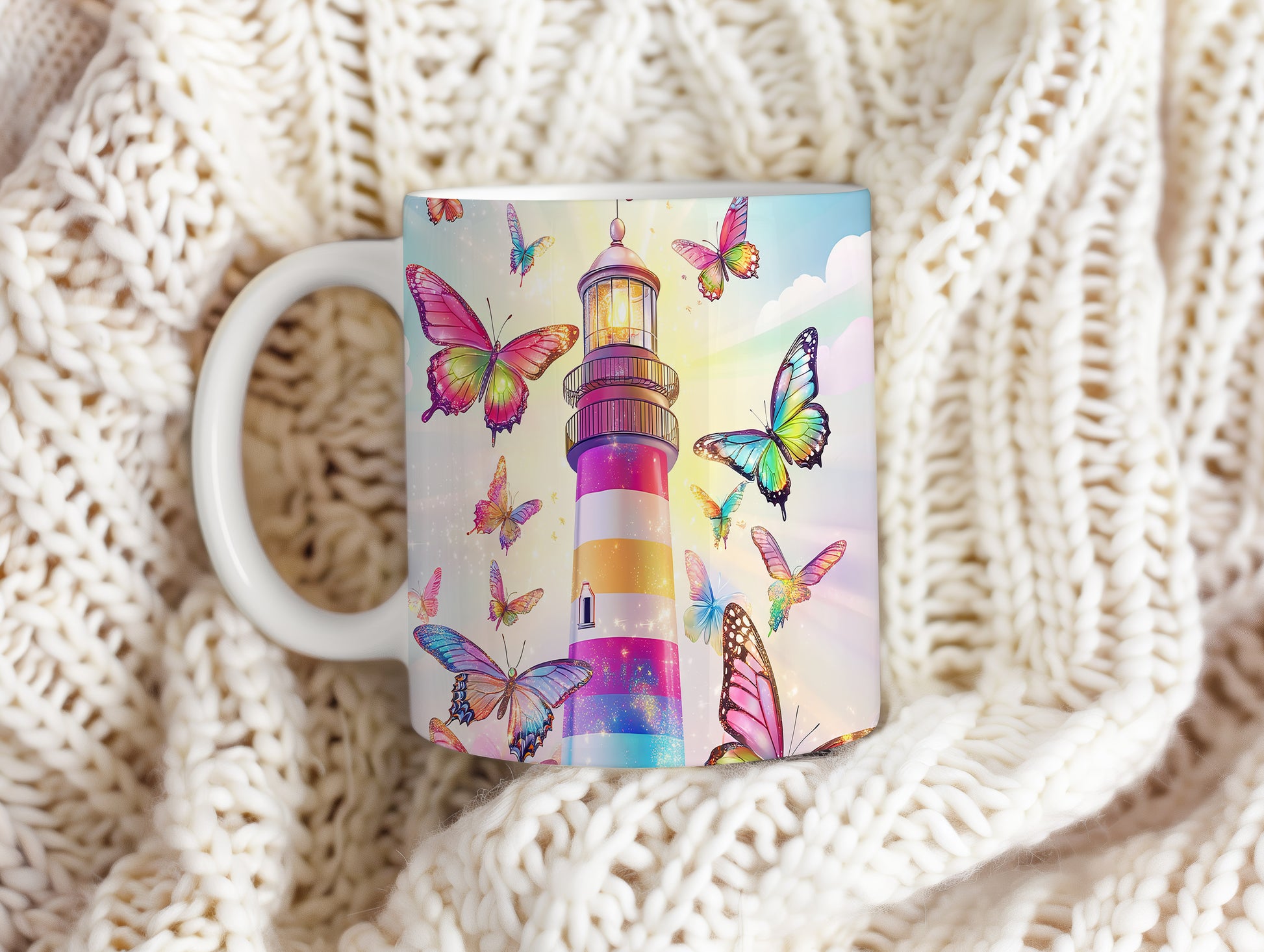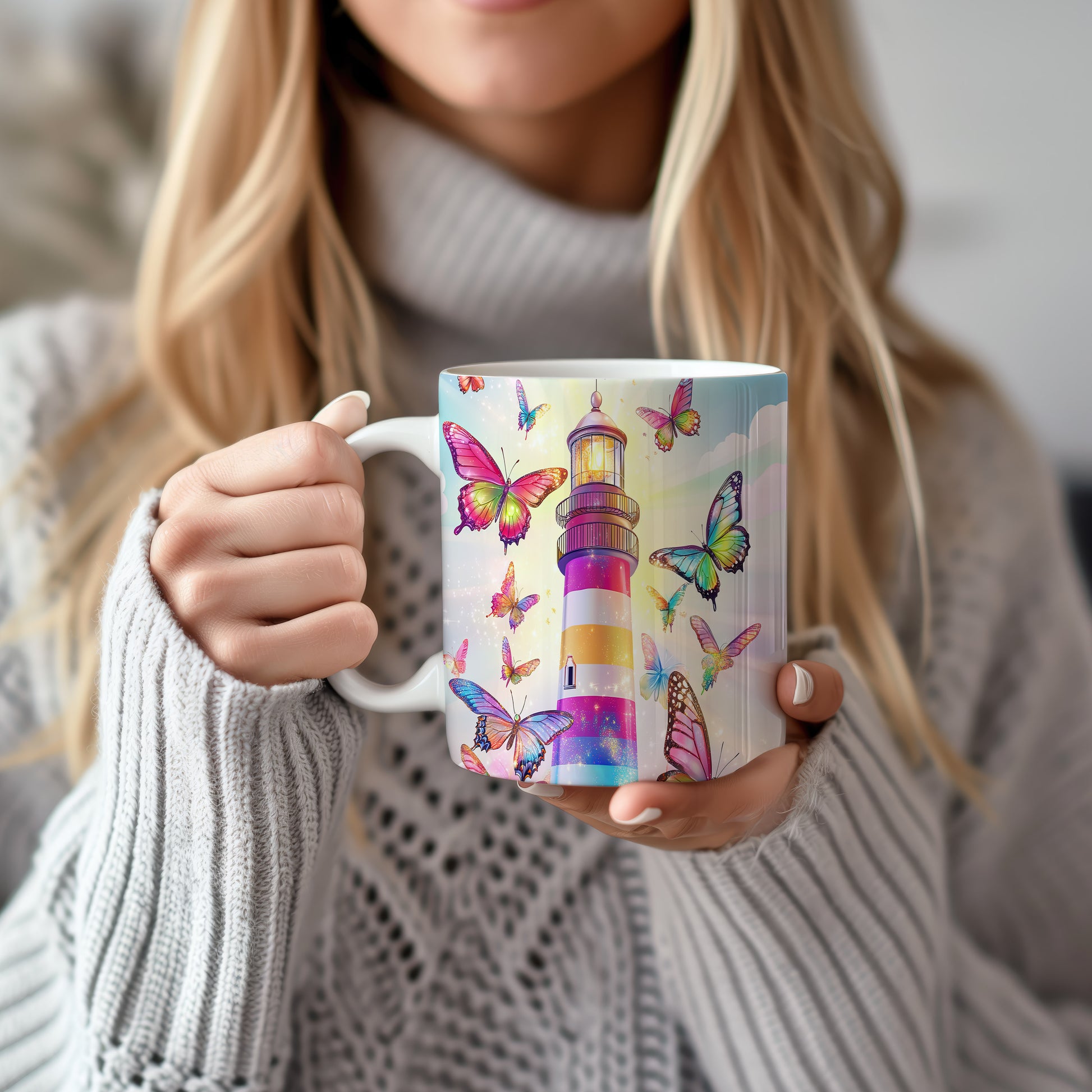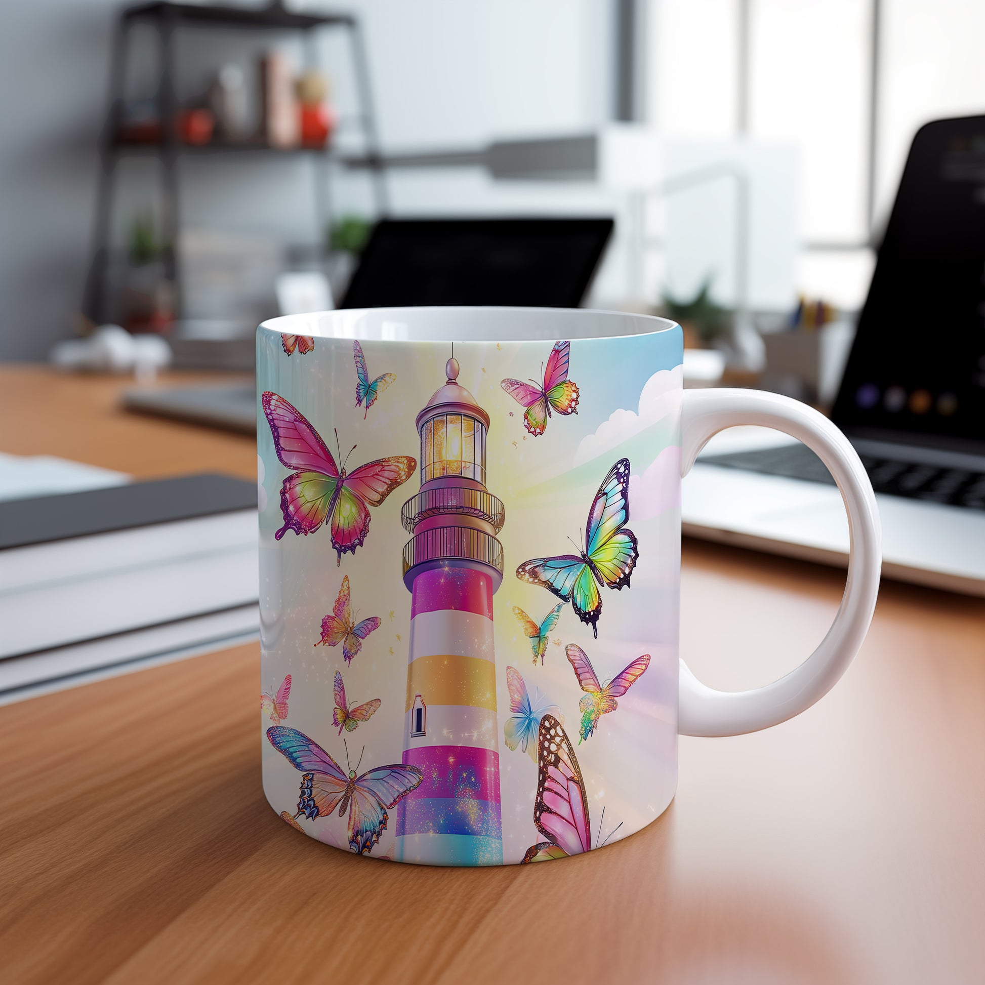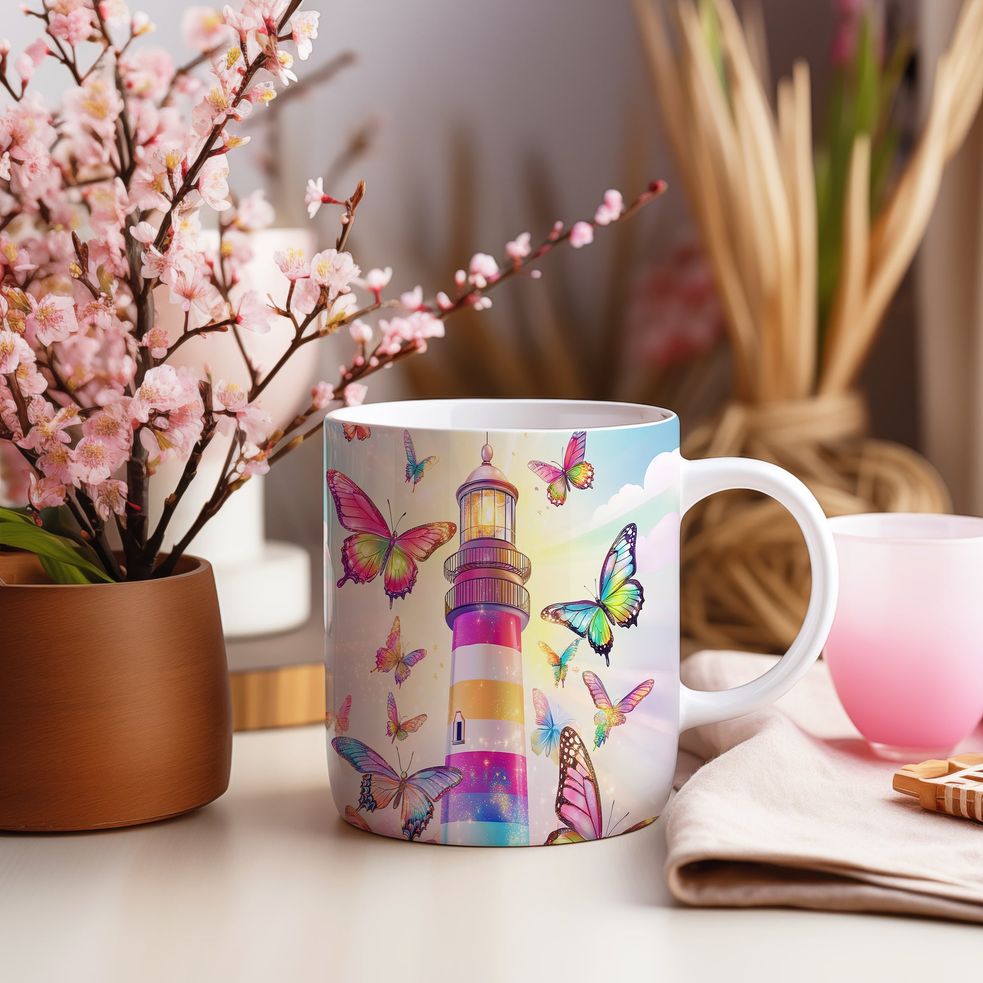 Tento hrnek s barevným majákem a živými motýly přináší do vašeho dne radost a svěžest. Je ideální pro milovníky přírody a skvělým dárkem pro každého, kdo ocení krásu detailů. Materiál: keramika. Objem: 330 ml. Vhodné do myčky i mikrovlnky. Používáním tohoto hrnku si užijete nejen oblíbený nápoj, ale také příjemný pohled na originální design.