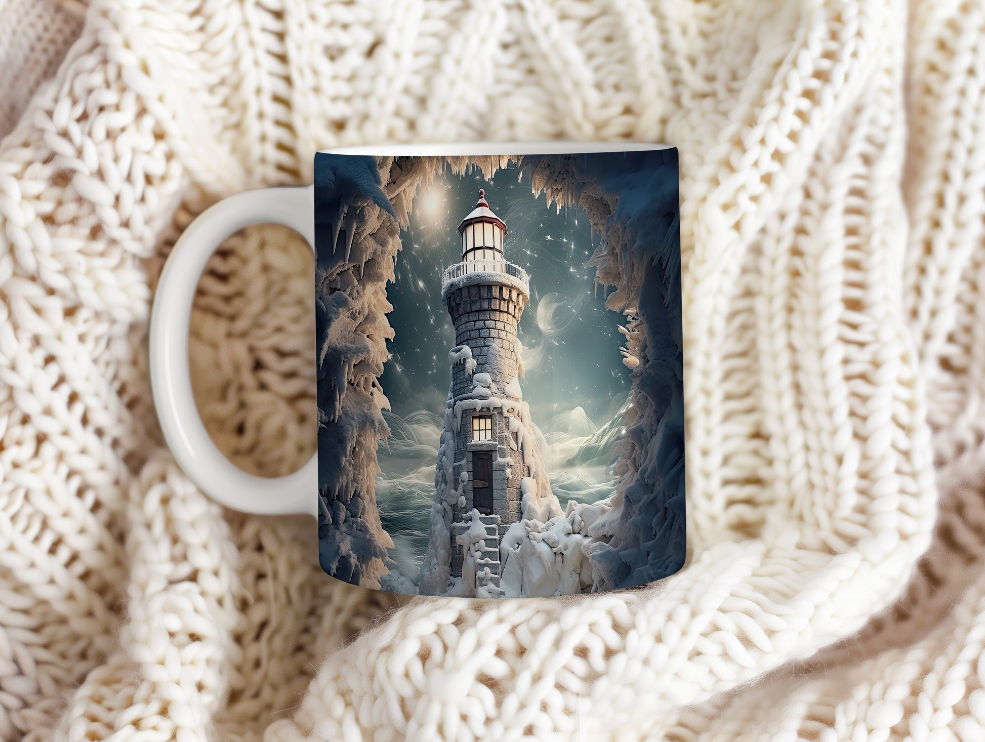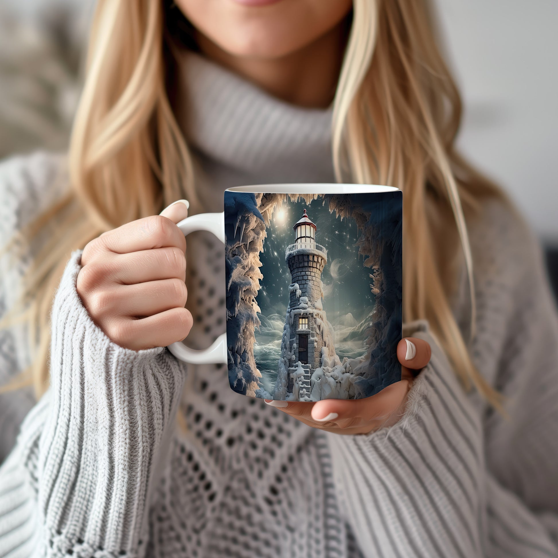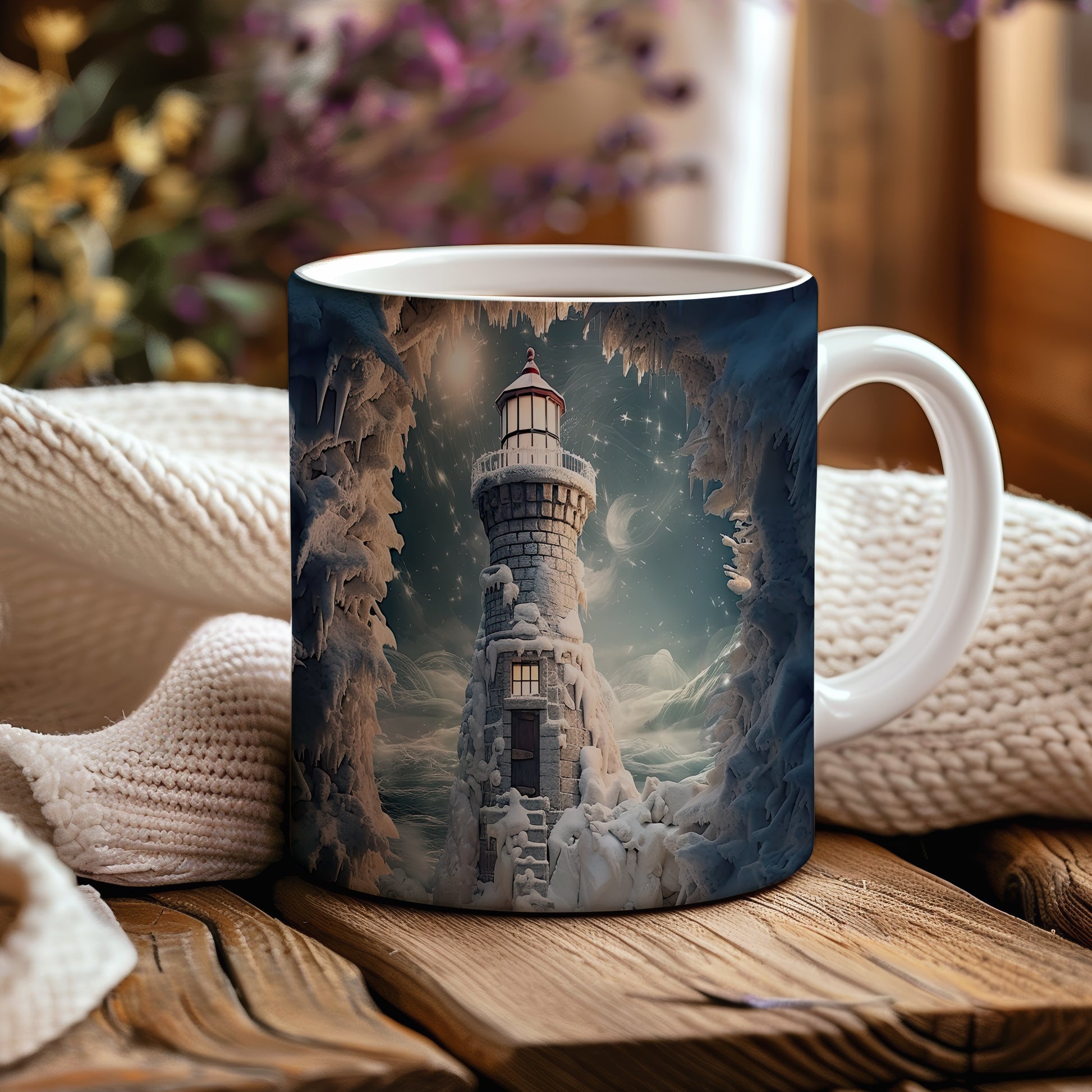 Tento hrnek zobrazuje malebný maják v zasněžené zimní krajině, doplněný o krásné hvězdy na obloze. Je ideální pro milovníky přírody a zimních scenérií, skvělý tip na dárek pro přátele či rodinu. Materiál: keramika. Objem: 330 ml. Vhodné do myčky i mikrovlnky. Užívejte si teplé nápoje s tímto stylovým hrnkem, který přináší útulnou atmosféru.