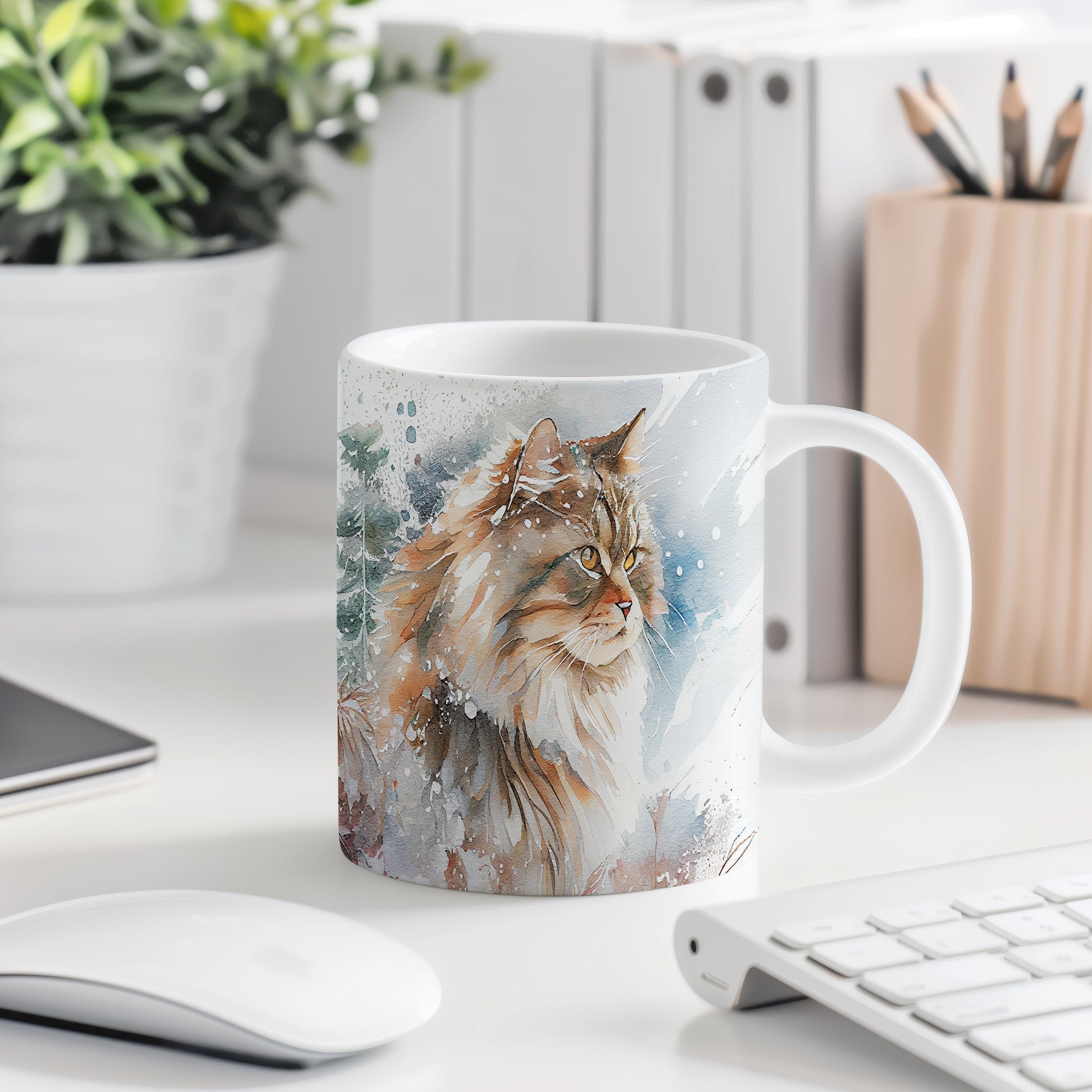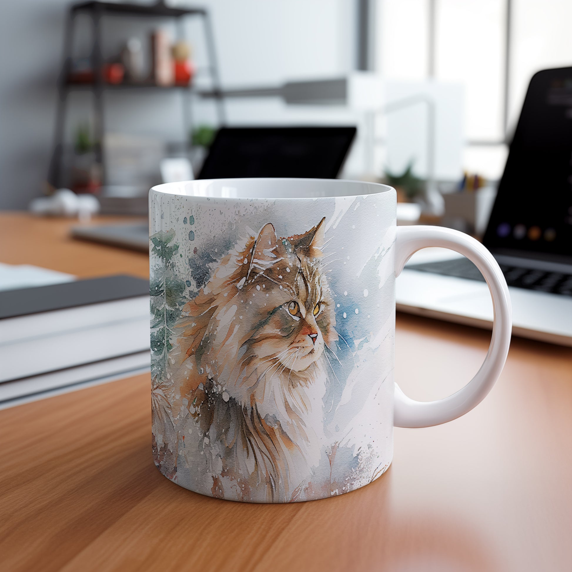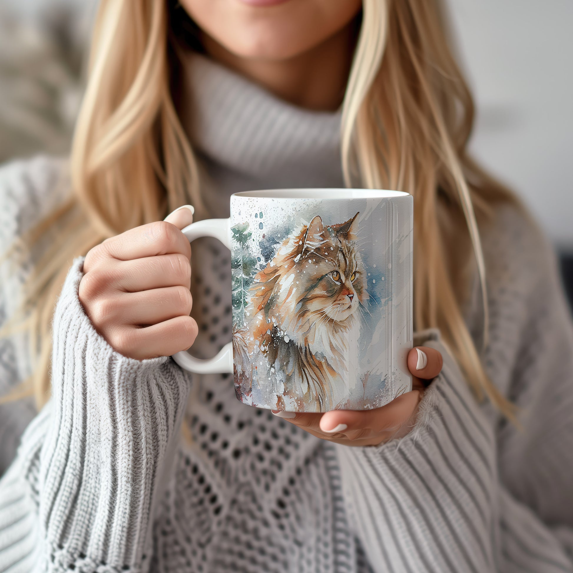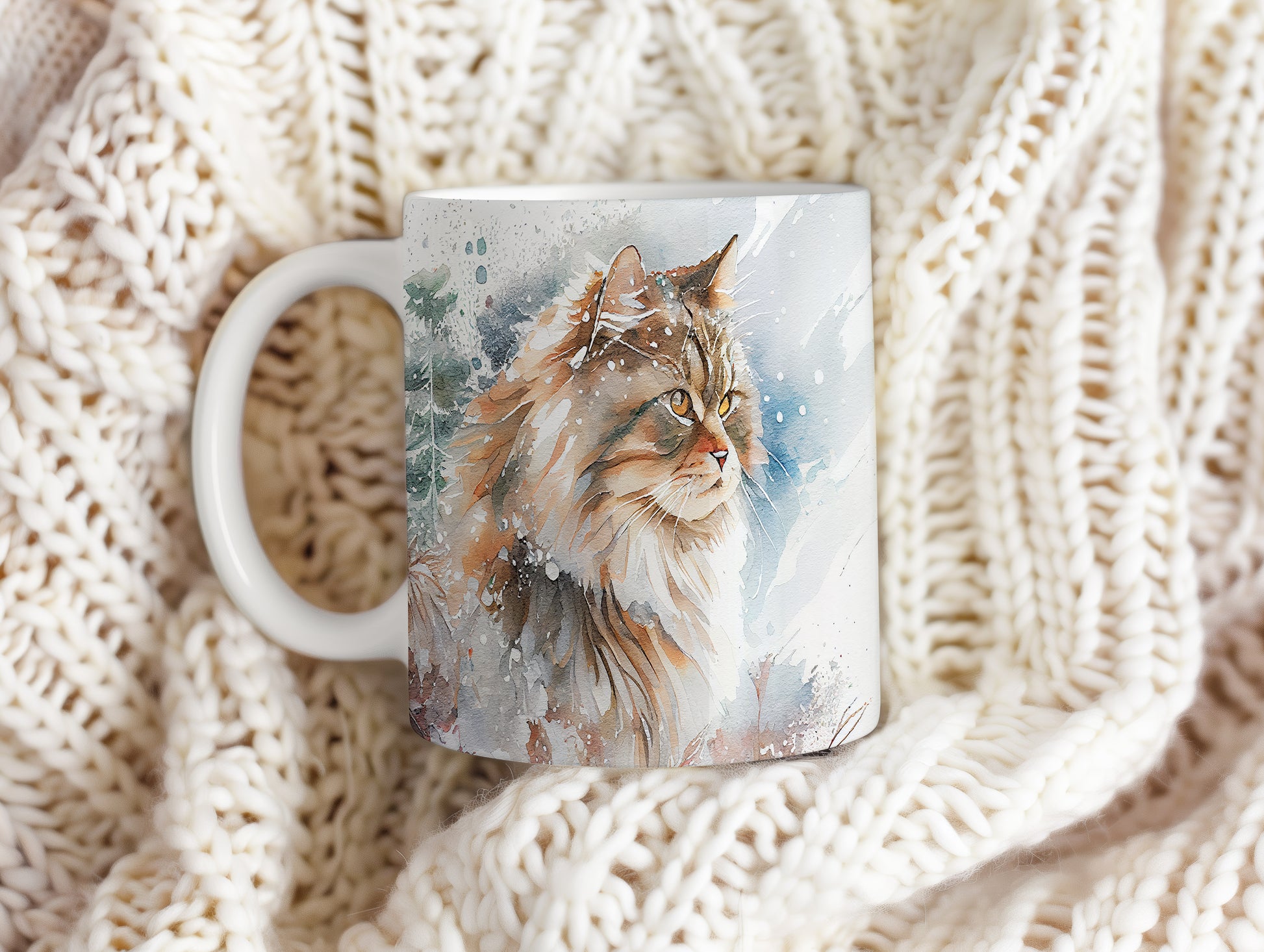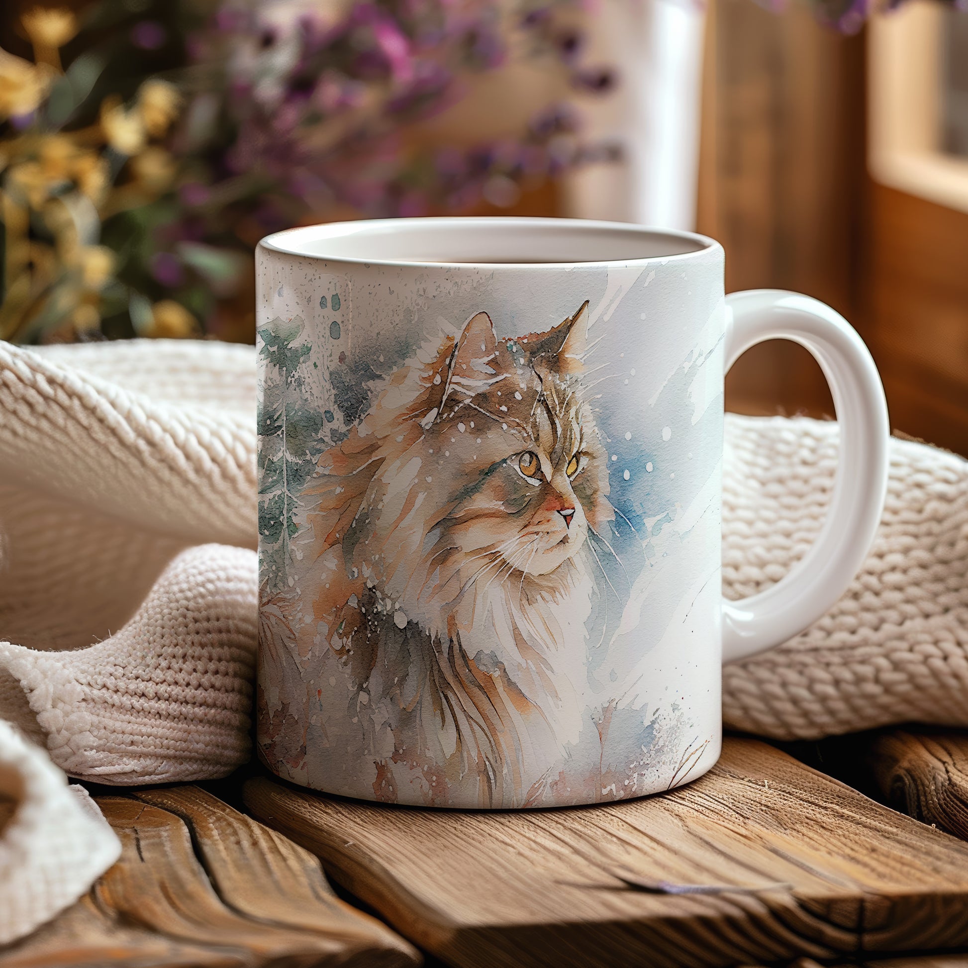 Tento krásný hrnek s jemnou akvarelovou malbou kočky zachycuje její majestátní vzhled. Je ideální pro milovníky zvířat a skvělým dárkem pro každého, kdo ocení jedinečný design. Materiál: keramika. Objem: 330 ml. Vhodné do myčky i mikrovlnky. Používání tohoto hrnku přináší radost z každého doušku.