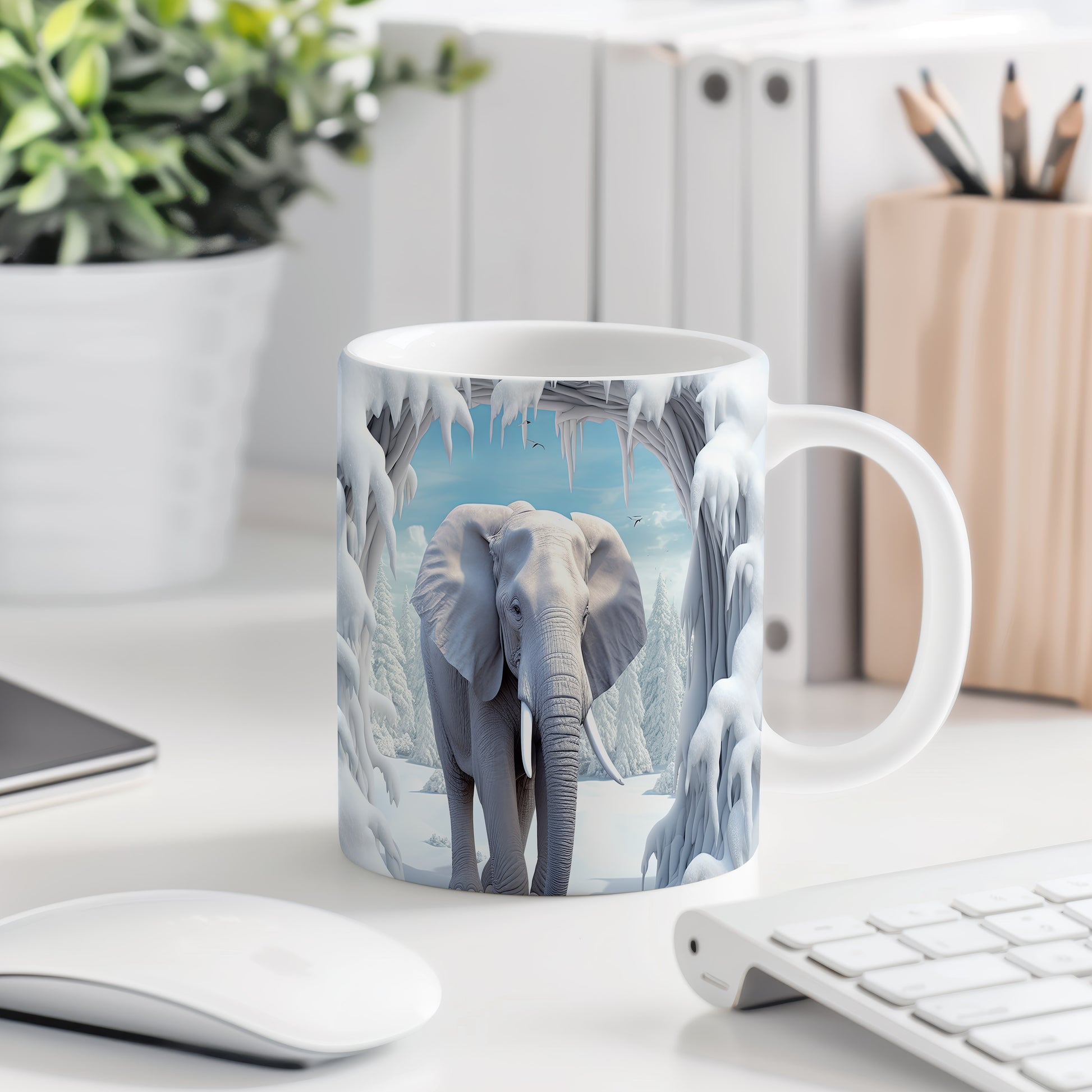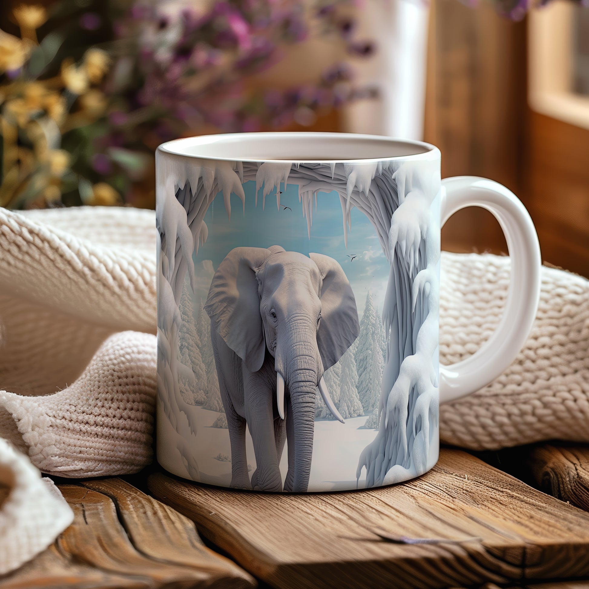 Na hrnku je zobrazen majestátní slon v zimní krajině. Tento elegantní motiv přináší do vašeho dne nádech divočiny a je ideálním dárkem pro milovníky přírody. Materiál: keramika. Objem: 330 ml. Vhodné do myčky i mikrovlnky. Používání tohoto hrnku vám zpříjemní každé ráno a dodá mu jedinečný styl.