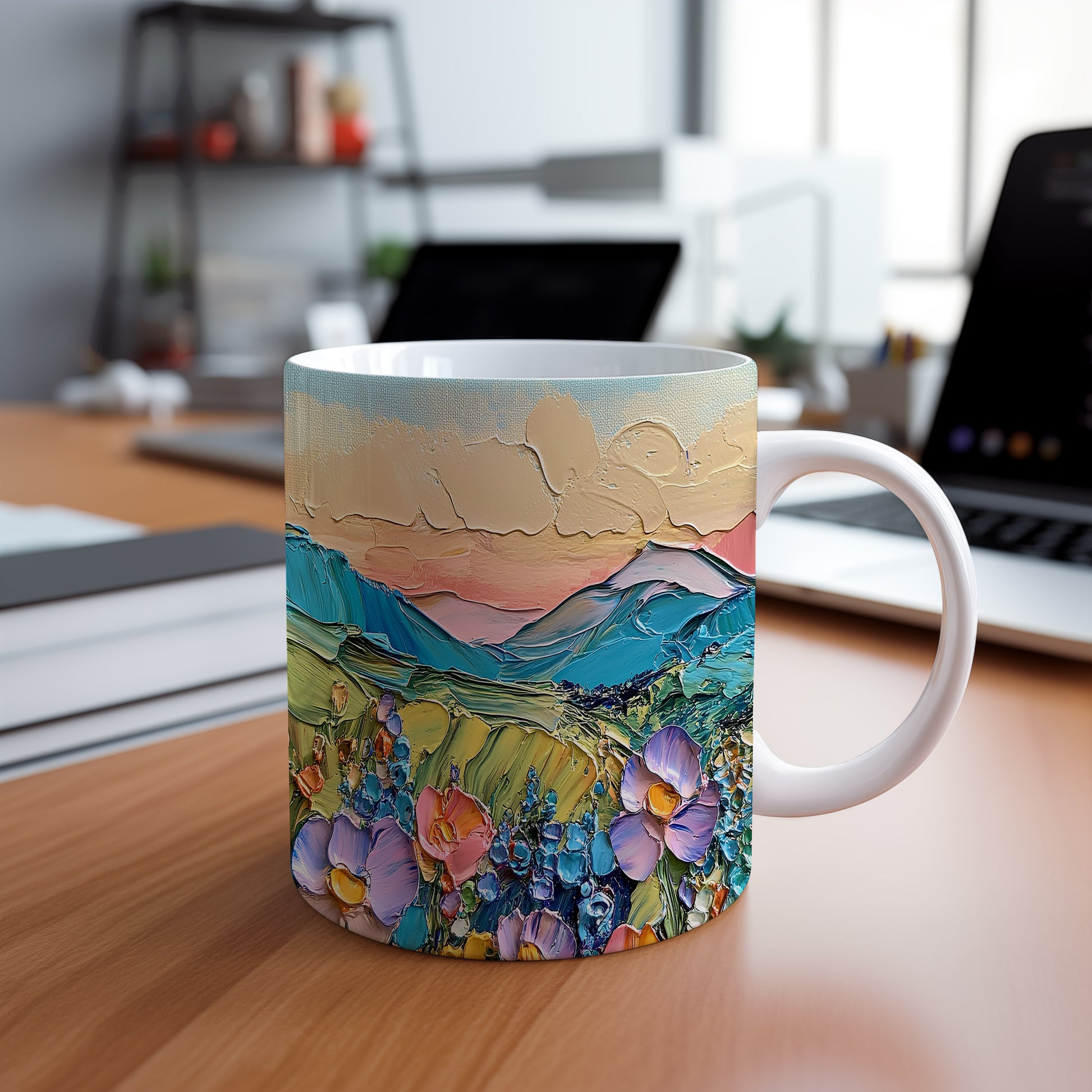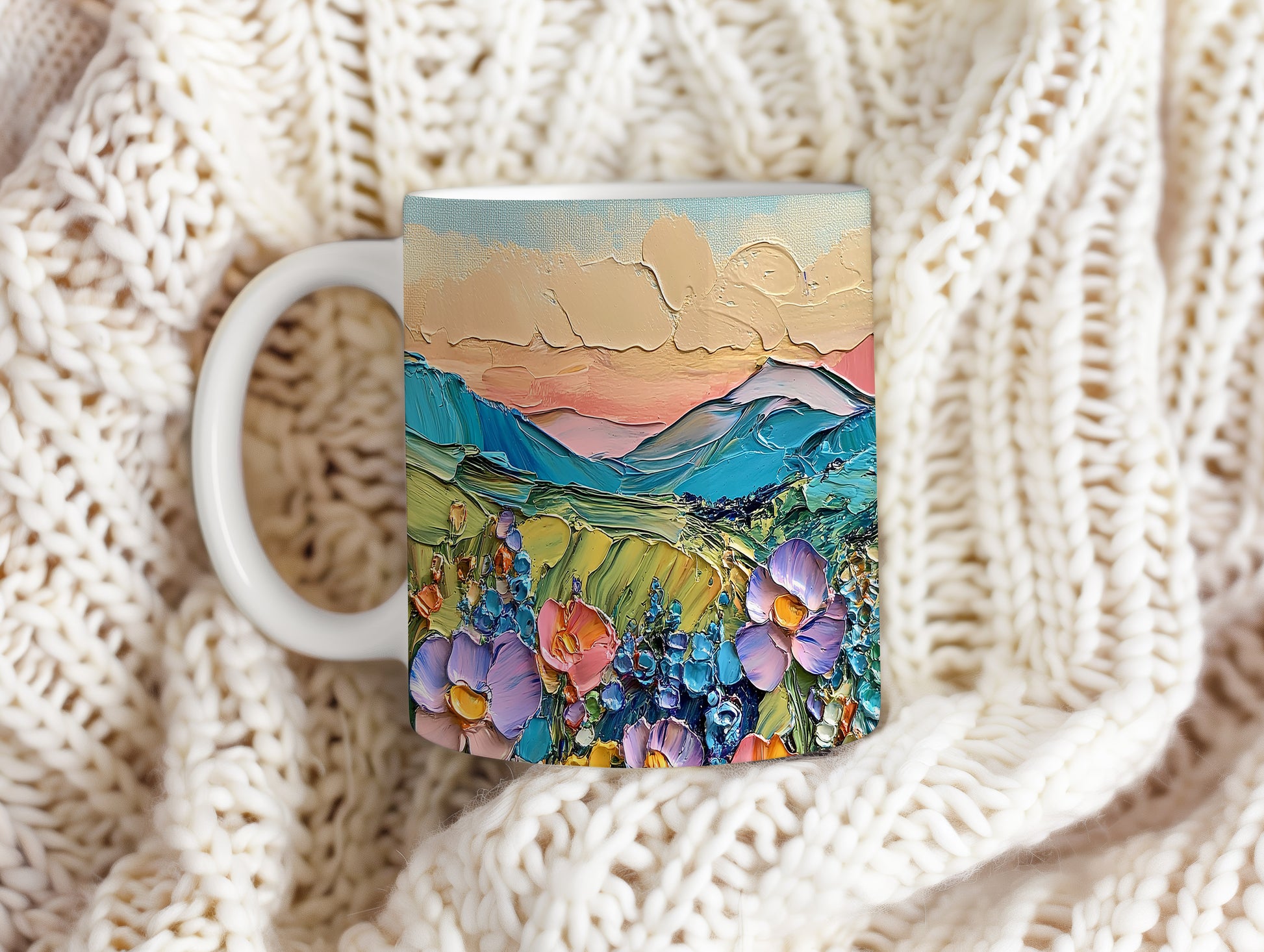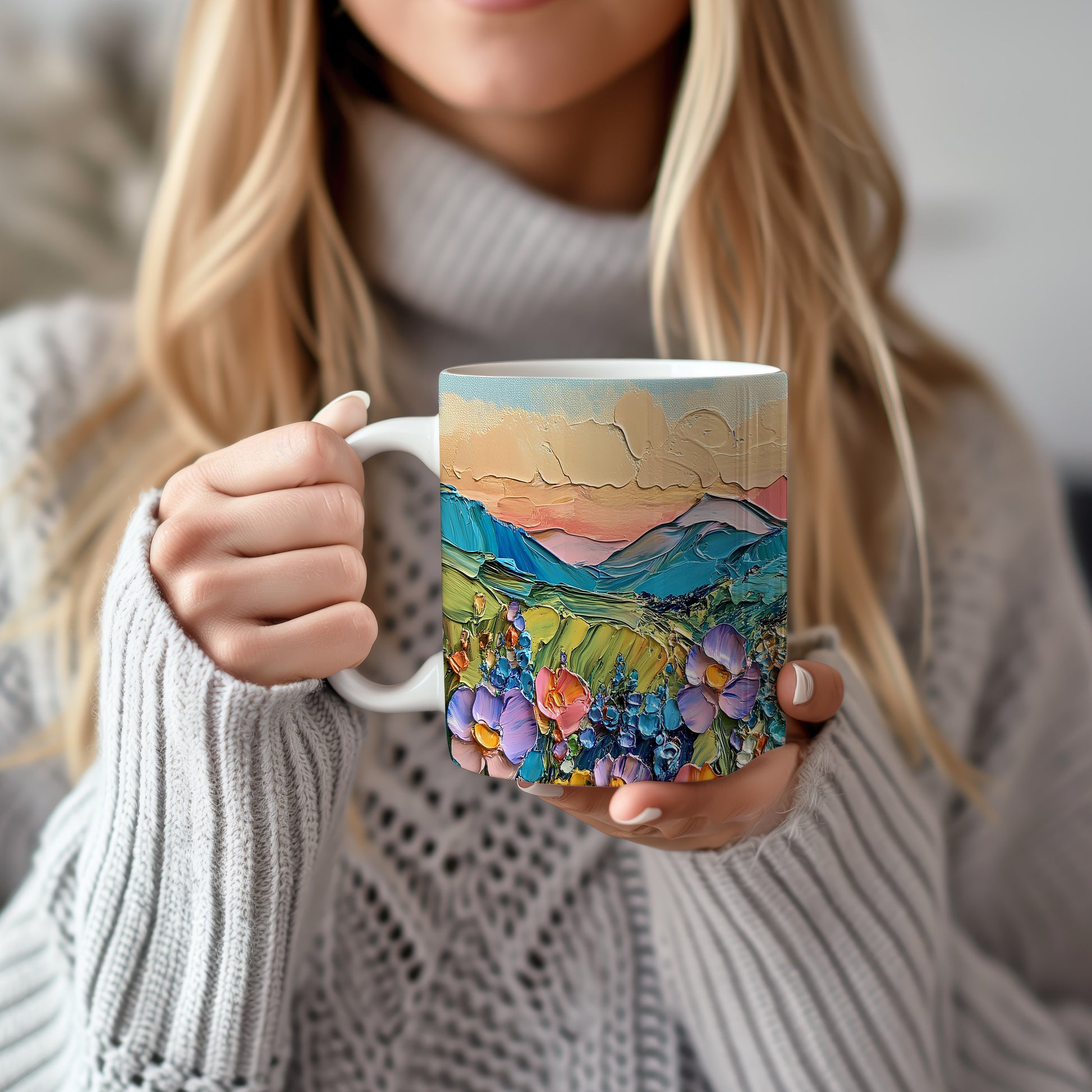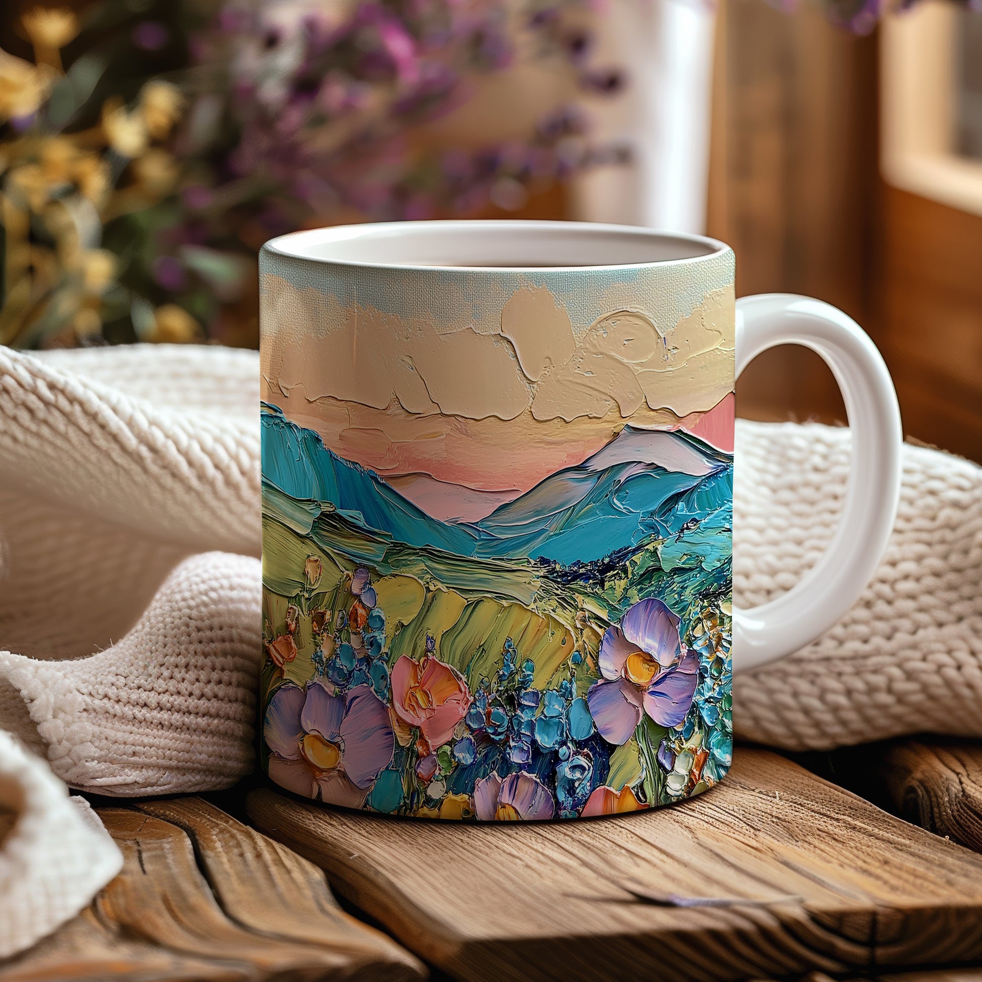 Hrnek s malebnou krajinou a květinami je skvělým kouskem pro milovníky přírody a krásných výhledů. Tento hrnek je ideální jako dárek pro přátele nebo rodinu, kteří ocení estetiku a pohodlí. Materiál: keramika. Objem: 330 ml. Vhodné do myčky i mikrovlnky. Díky svému designu přináší do každého dne radost a pohodu.