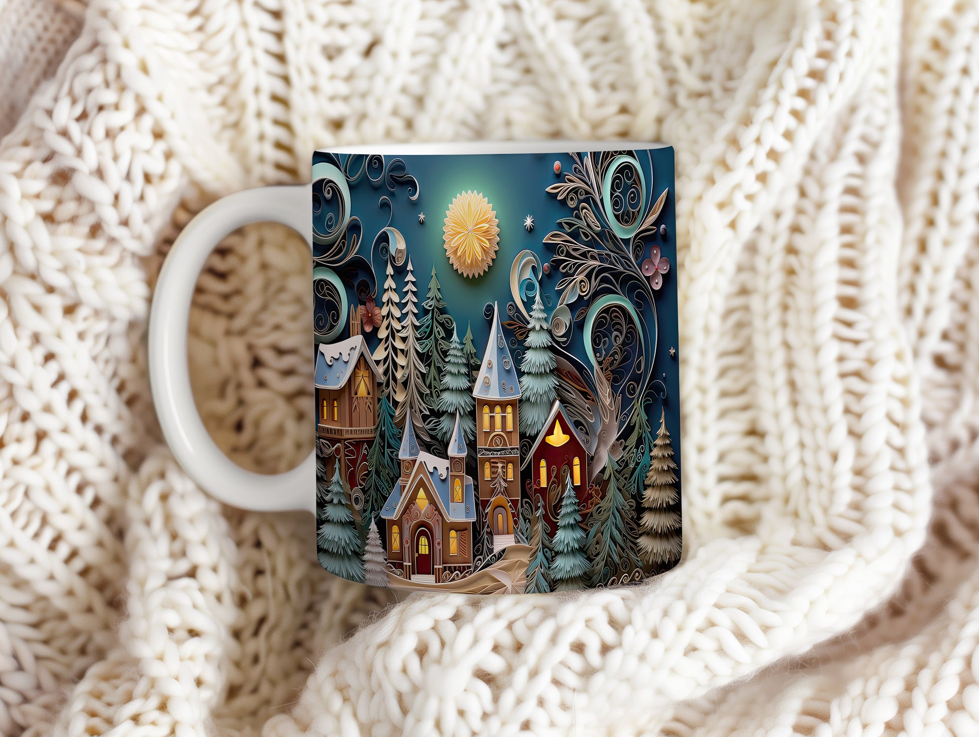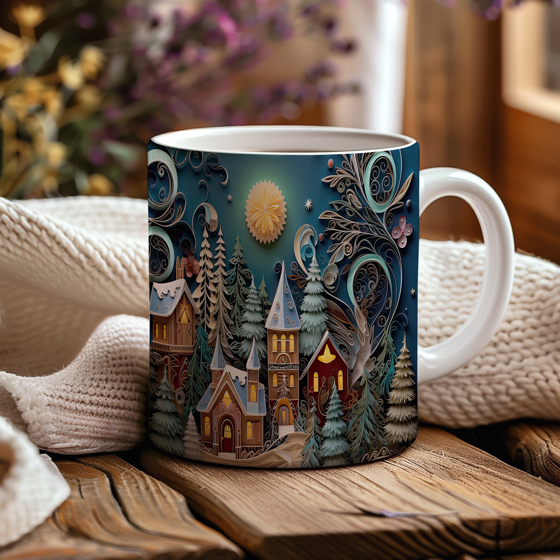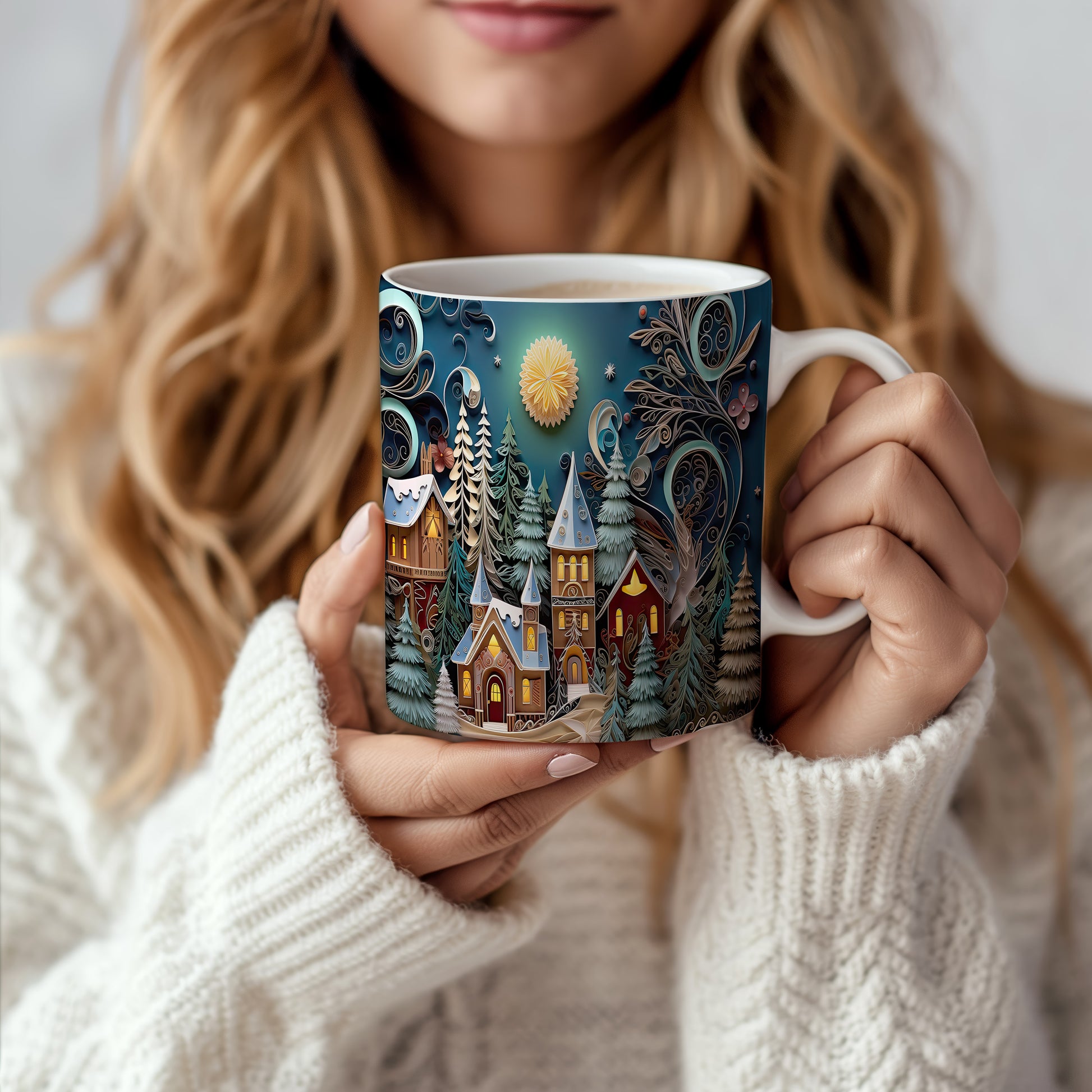 Tento hrnek zobrazuje malebnou zimní krajinu s barevnými domečky a zasněženými stromy. Je ideální pro milovníky přírody a zimní atmosféry, skvělý tip na dárek pro přátele nebo rodinu. Materiál: keramika. Objem: 330 ml. Vhodné do myčky i mikrovlnky. Díky svému designu přináší do každého dne kousek zimní pohody.