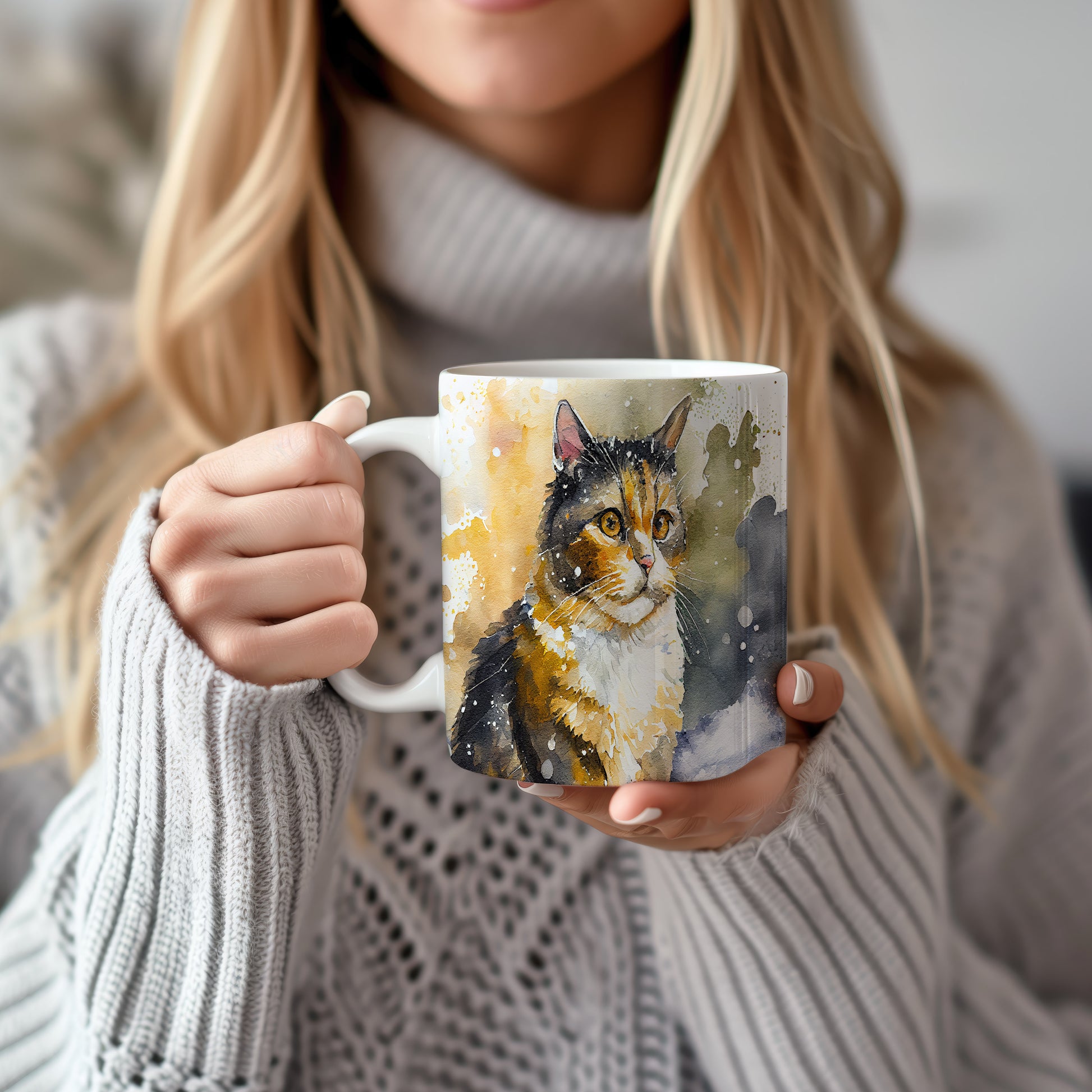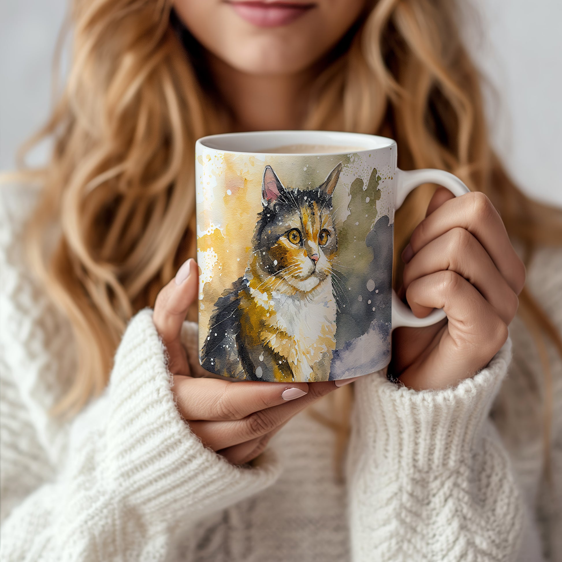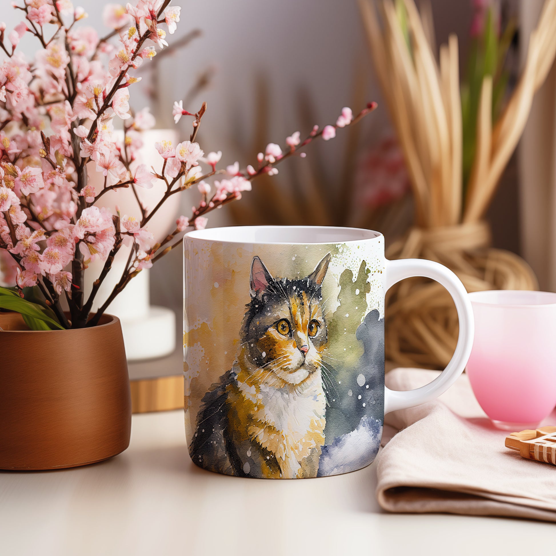 Keramický hrnek s akvarelovým motivem kočky. Tento hrnek je ideální pro milovníky zvířat a skvělým dárkem pro každého, kdo má rád kočky. Materiál: keramika. Objem: 330 ml. Vhodné do myčky i mikrovlnky. Užívejte si svůj oblíbený nápoj s tímto jedinečným hrnkem, který přináší radost do každého dne.