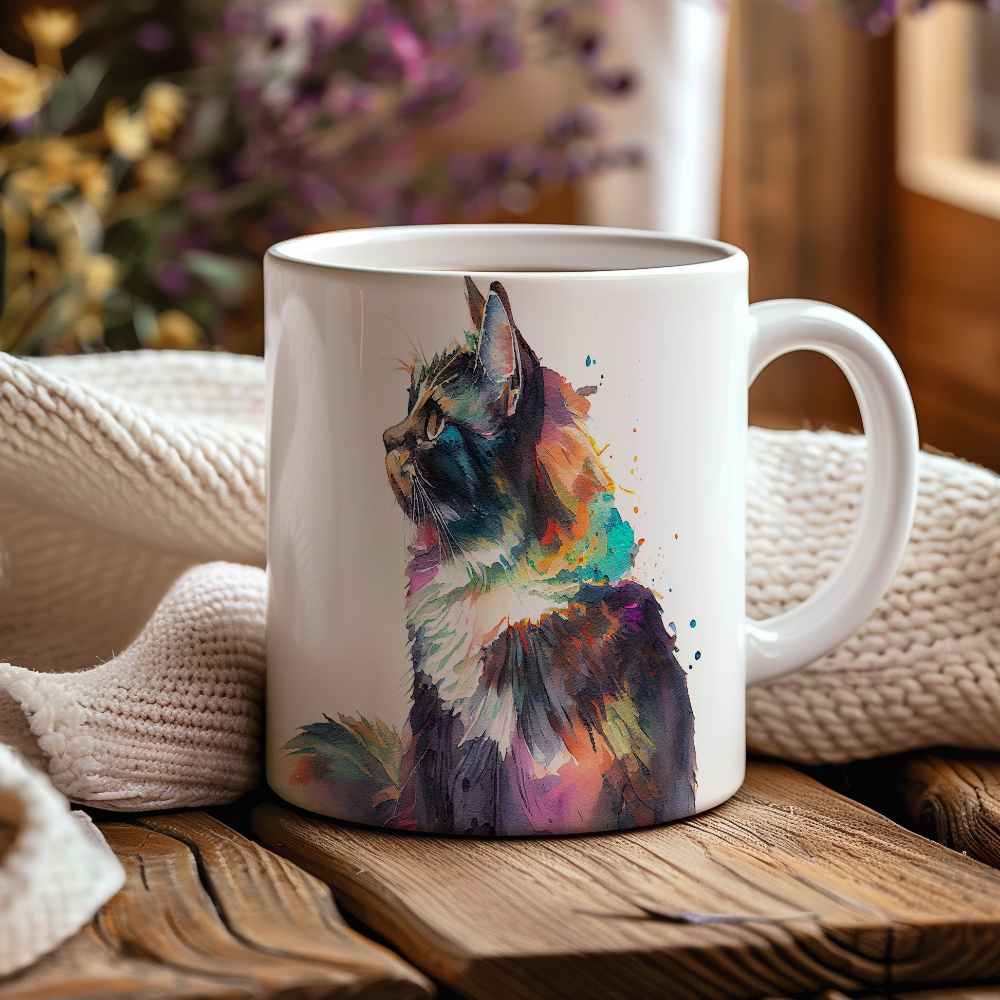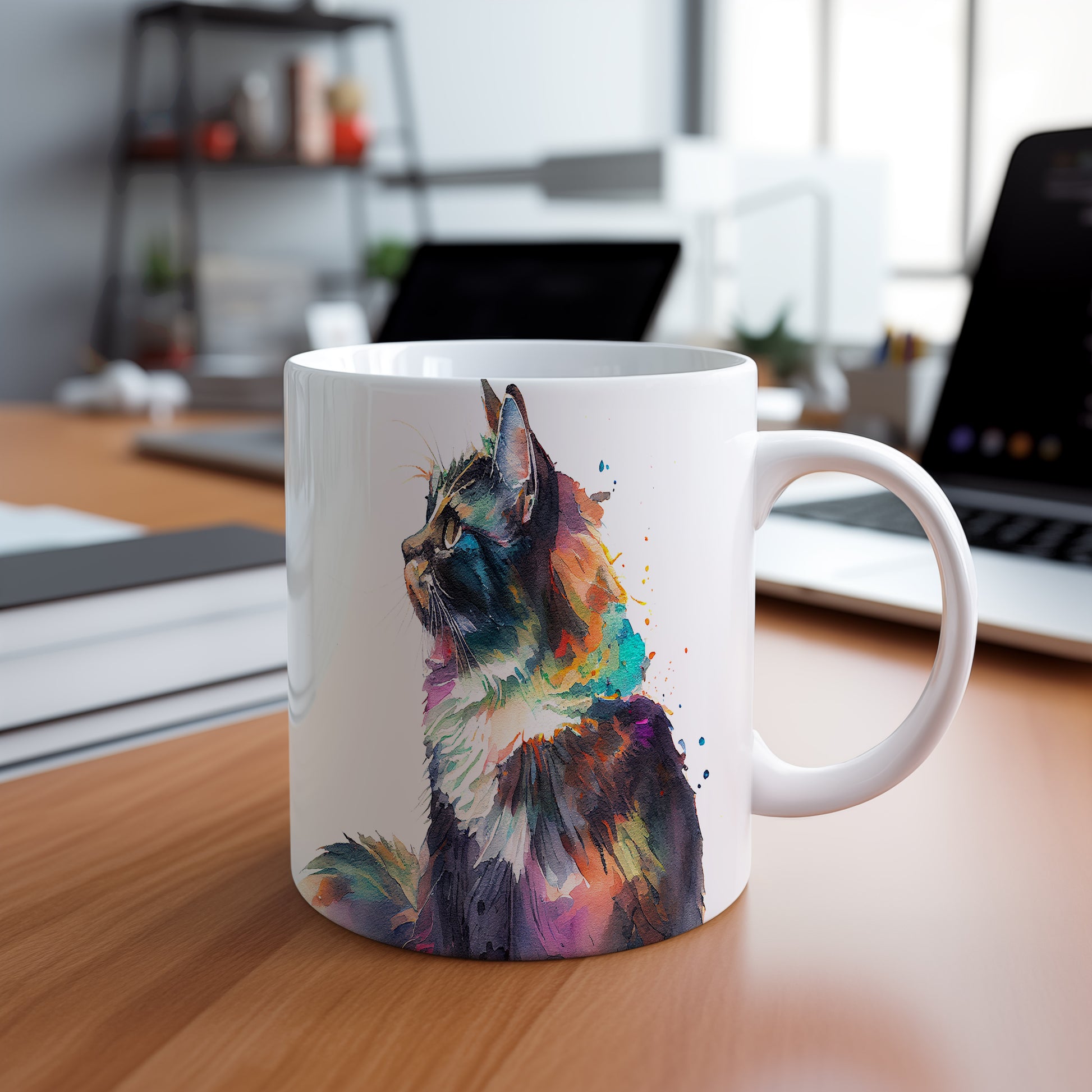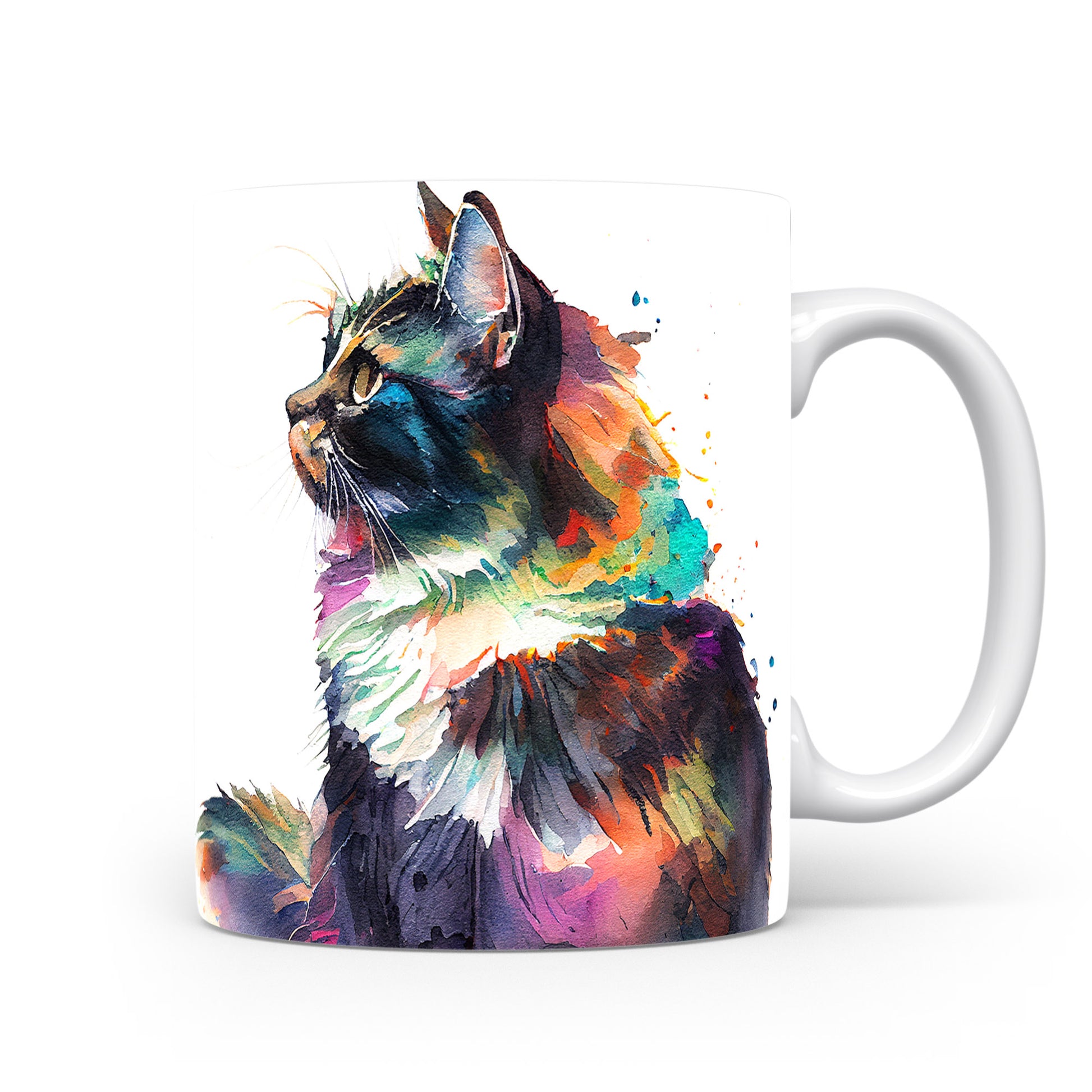 Tento hrnek je zdoben barevným akvarelovým motivem kočky, která se dívá na stranu. Je ideální pro milovníky zvířat a potěší každého, kdo má rád kočky. Materiál: keramika. Objem: 330 ml. Vhodné do myčky i mikrovlnky. Používání tohoto hrnku přináší radost a útulnost do každého dne.