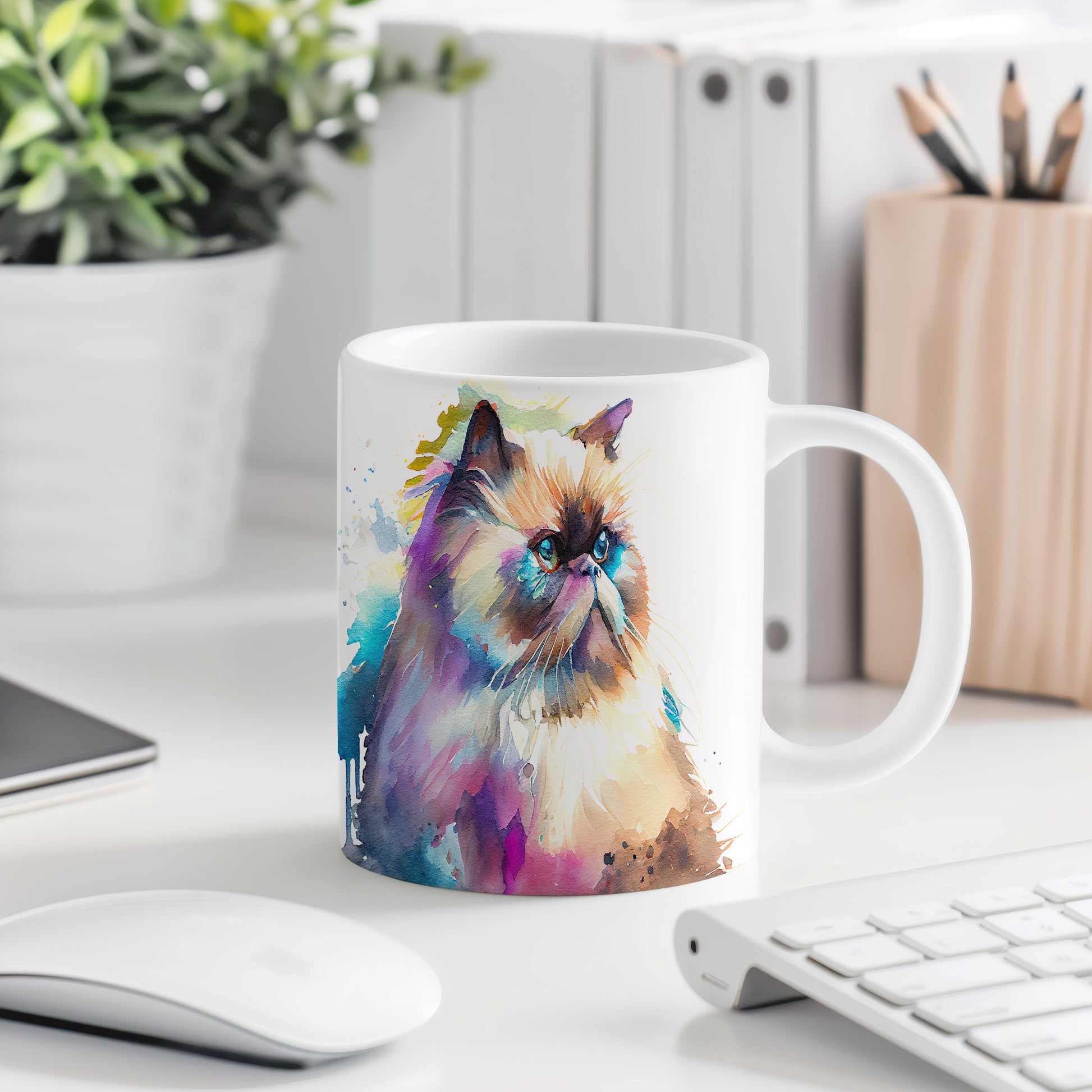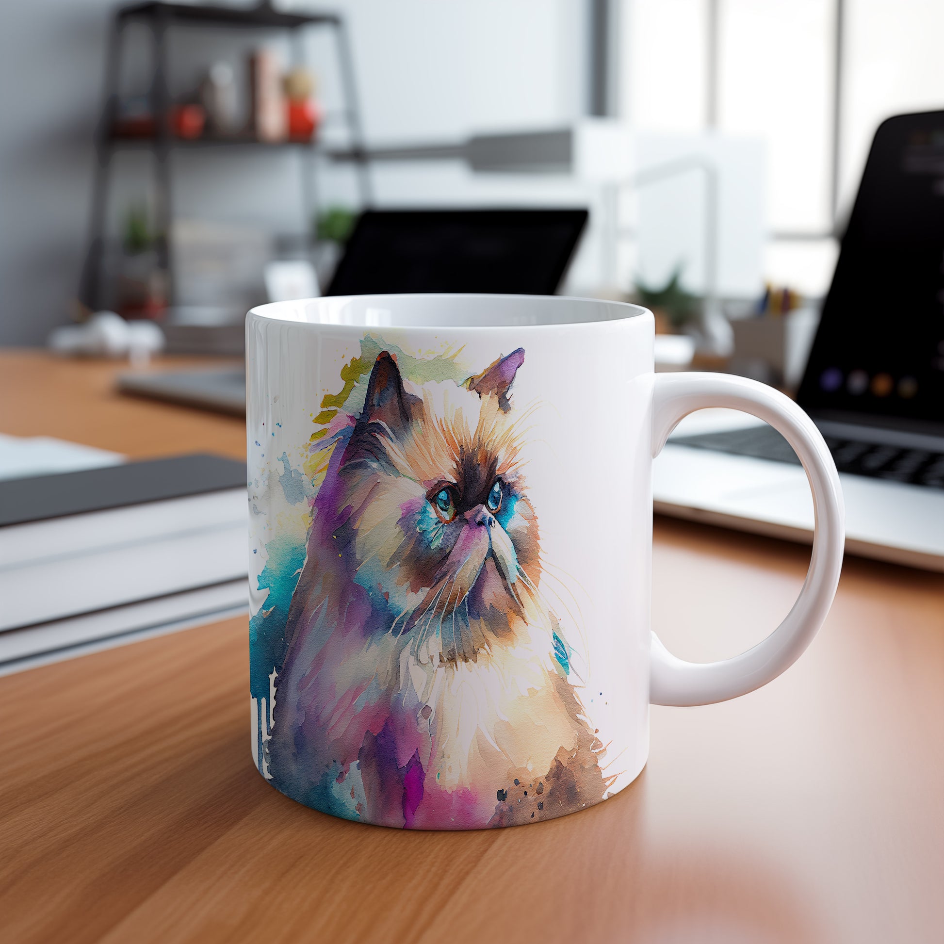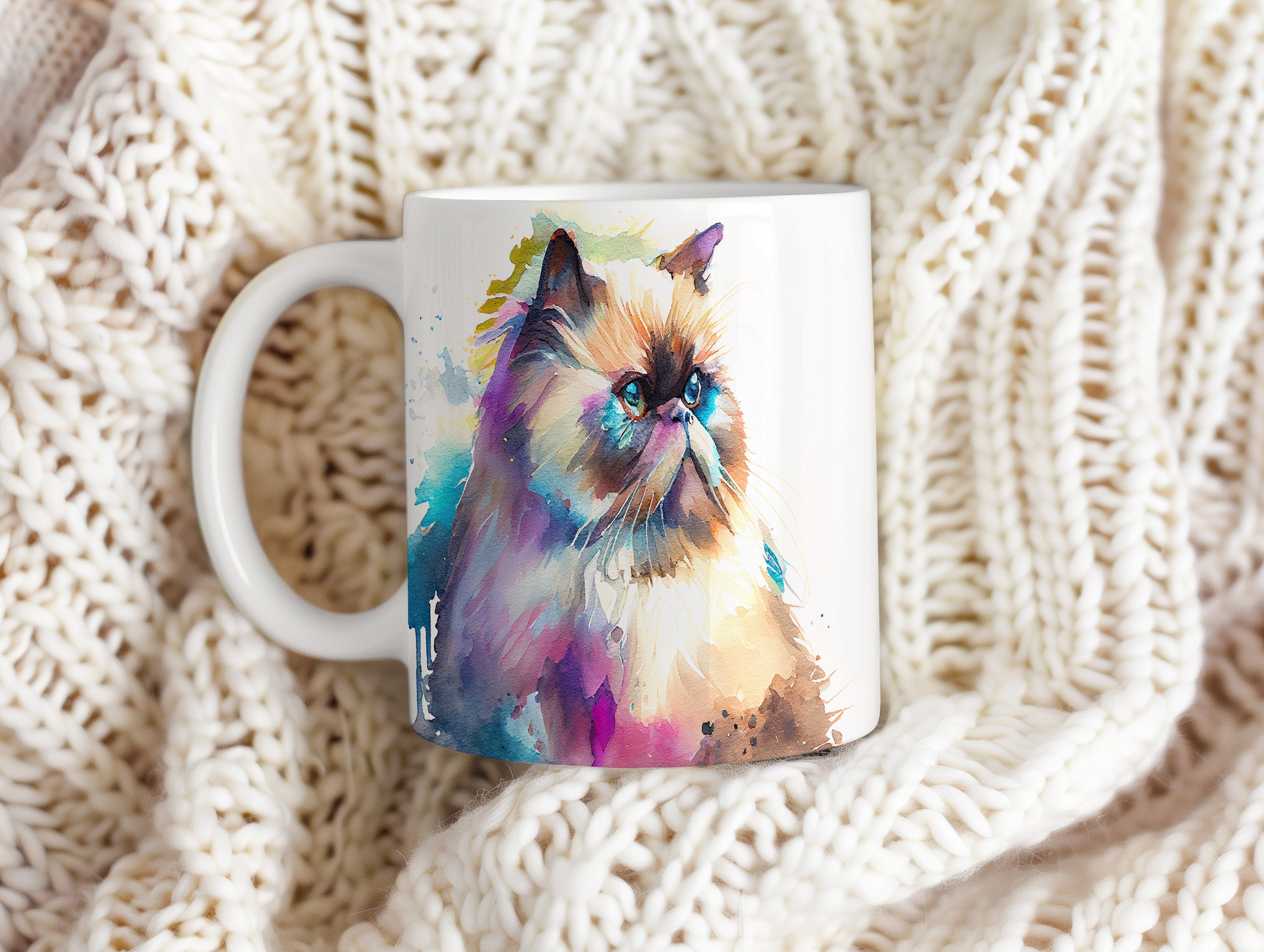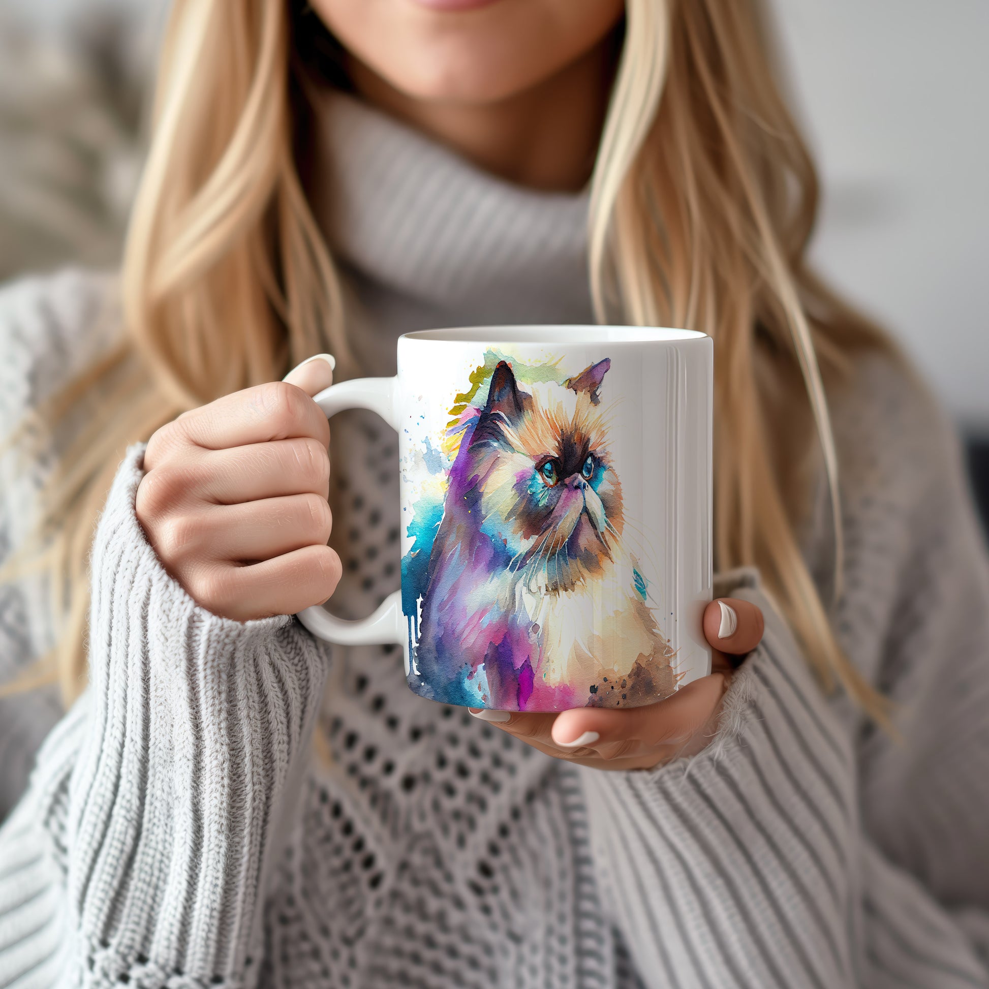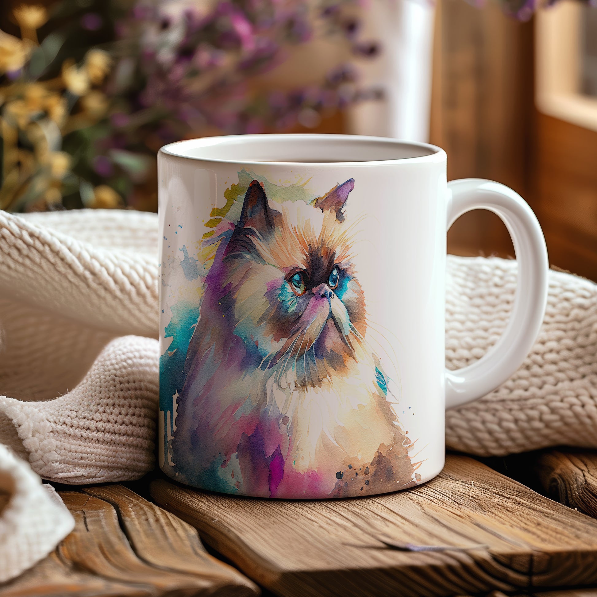 Hrnek s realistickým obrazem kočky v akvarelovém stylu. Tento hrnek je skvělým dárkem pro milovníky koček a umění. Materiál: keramika. Objem: 330 ml. Vhodné do myčky i mikrovlnky. Díky svému designu přináší radost do každodenního pití.