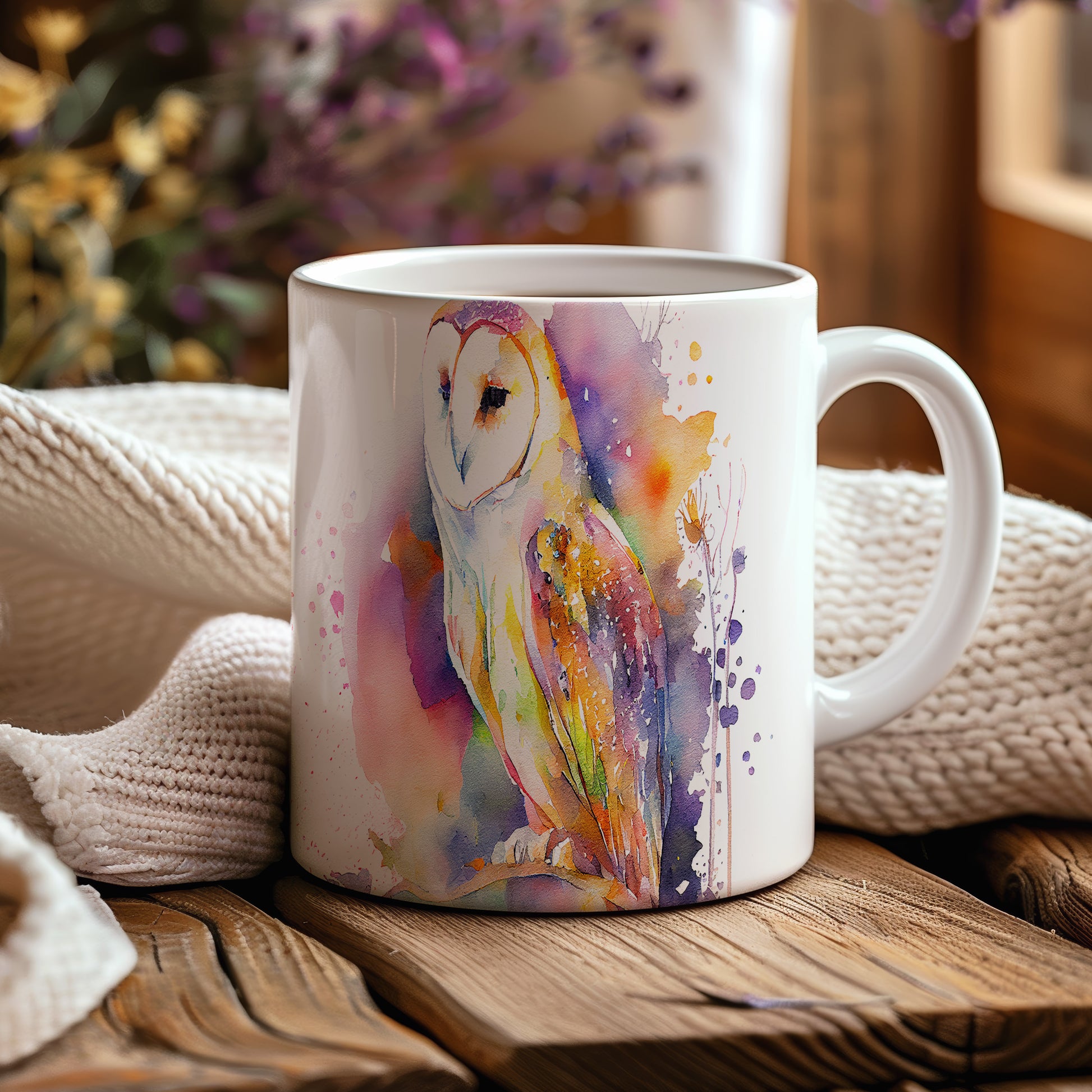 Hrnek s malovanou sovou v akvarelovém stylu přináší do vašeho dne barevnou radost. Je ideální pro milovníky přírody a skvělým dárkem pro přátele či rodinu. Materiál: keramika. Objem: 330 ml. Vhodné do myčky i mikrovlnky. Tento hrnek vám zpříjemní každé ráno s oblíbeným nápojem.