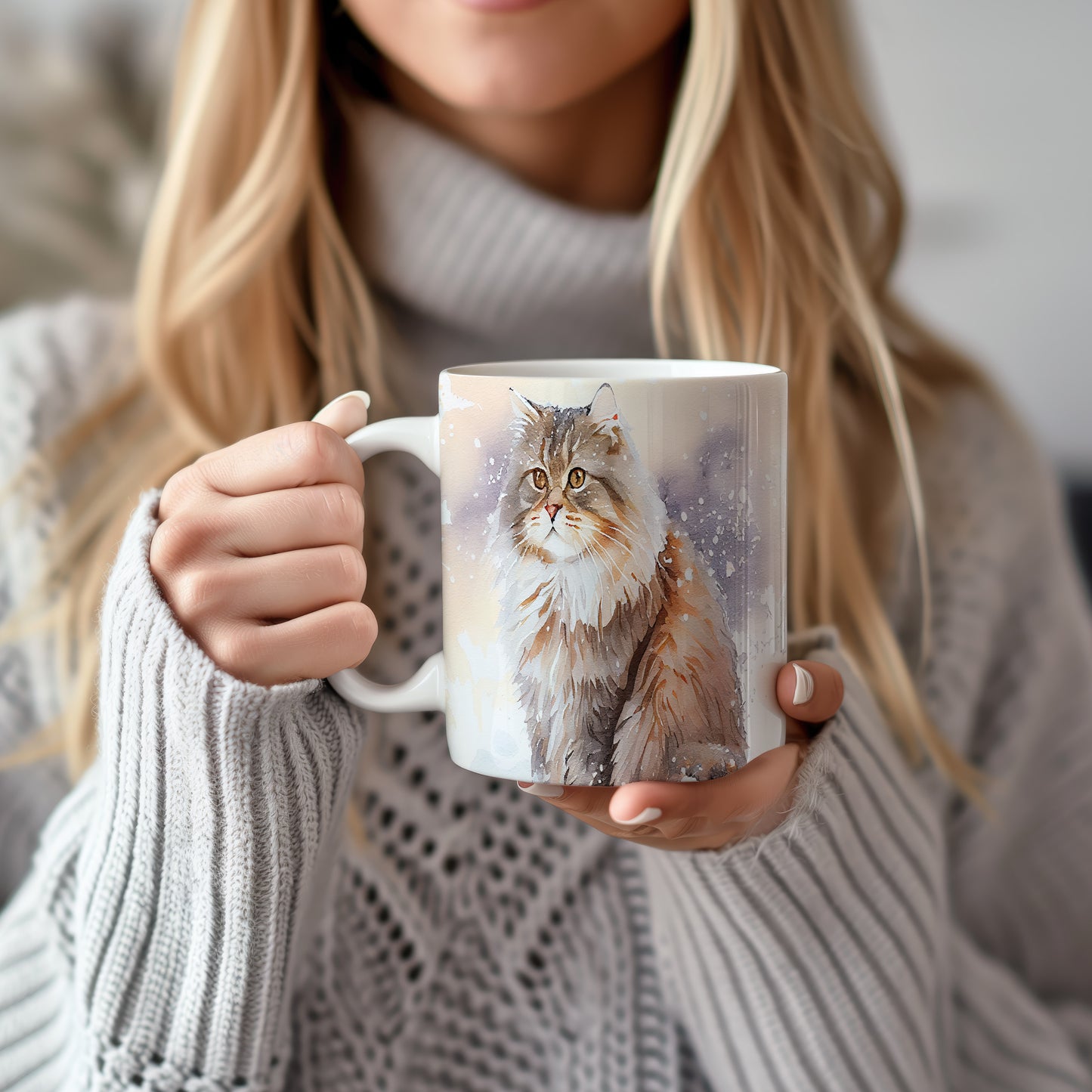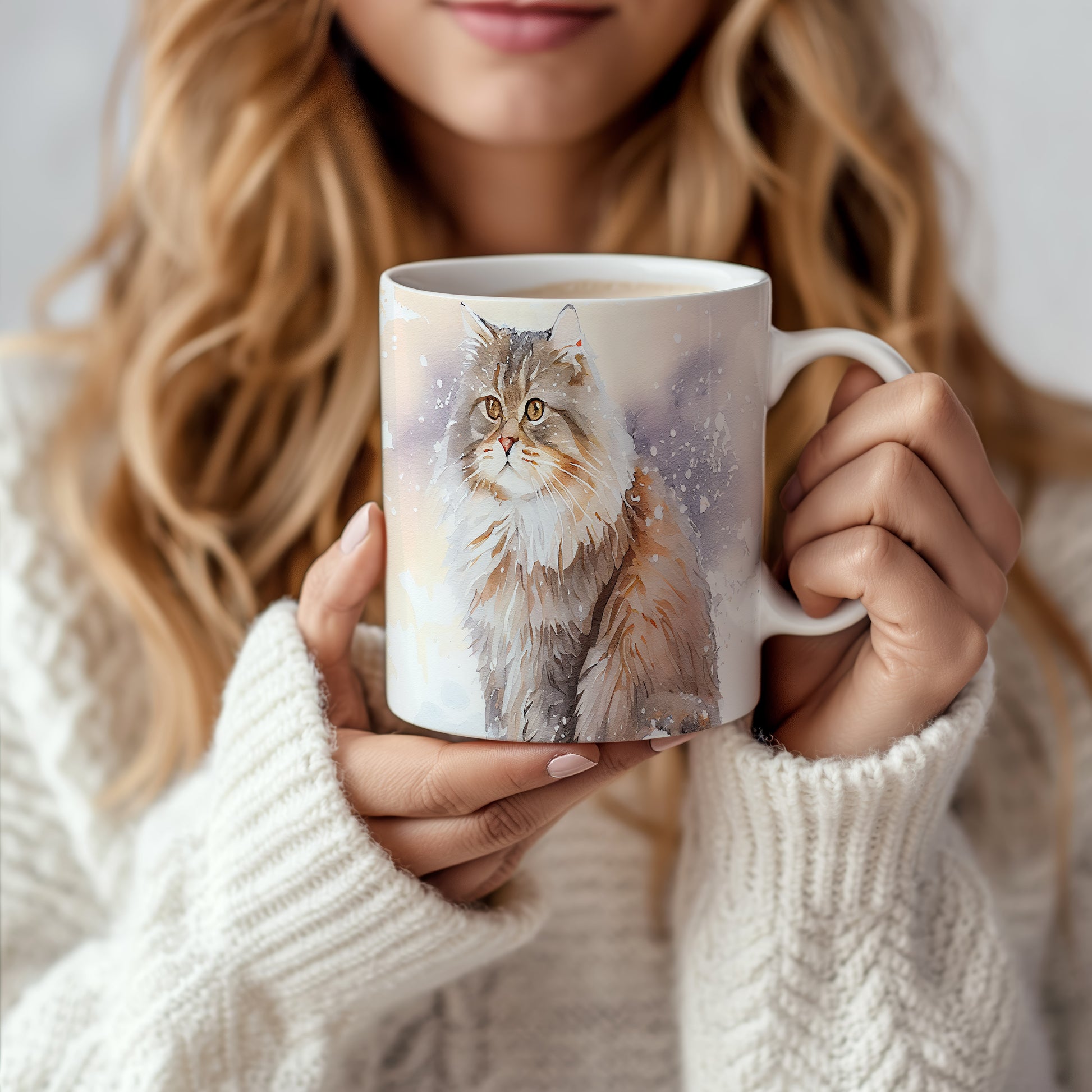 Hrnek s malovaným kocourem v zimní scenérii je skvělým kouskem pro všechny milovníky koček a zimních motivů. Tento hrnek je ideální jako dárek pro přátele nebo rodinu, kteří si rádi vychutnávají teplé nápoje. Materiál: keramika. Objem: 330 ml. Vhodné do myčky i mikrovlnky. Díky svému designu přináší do každého dne radost a útulnost.