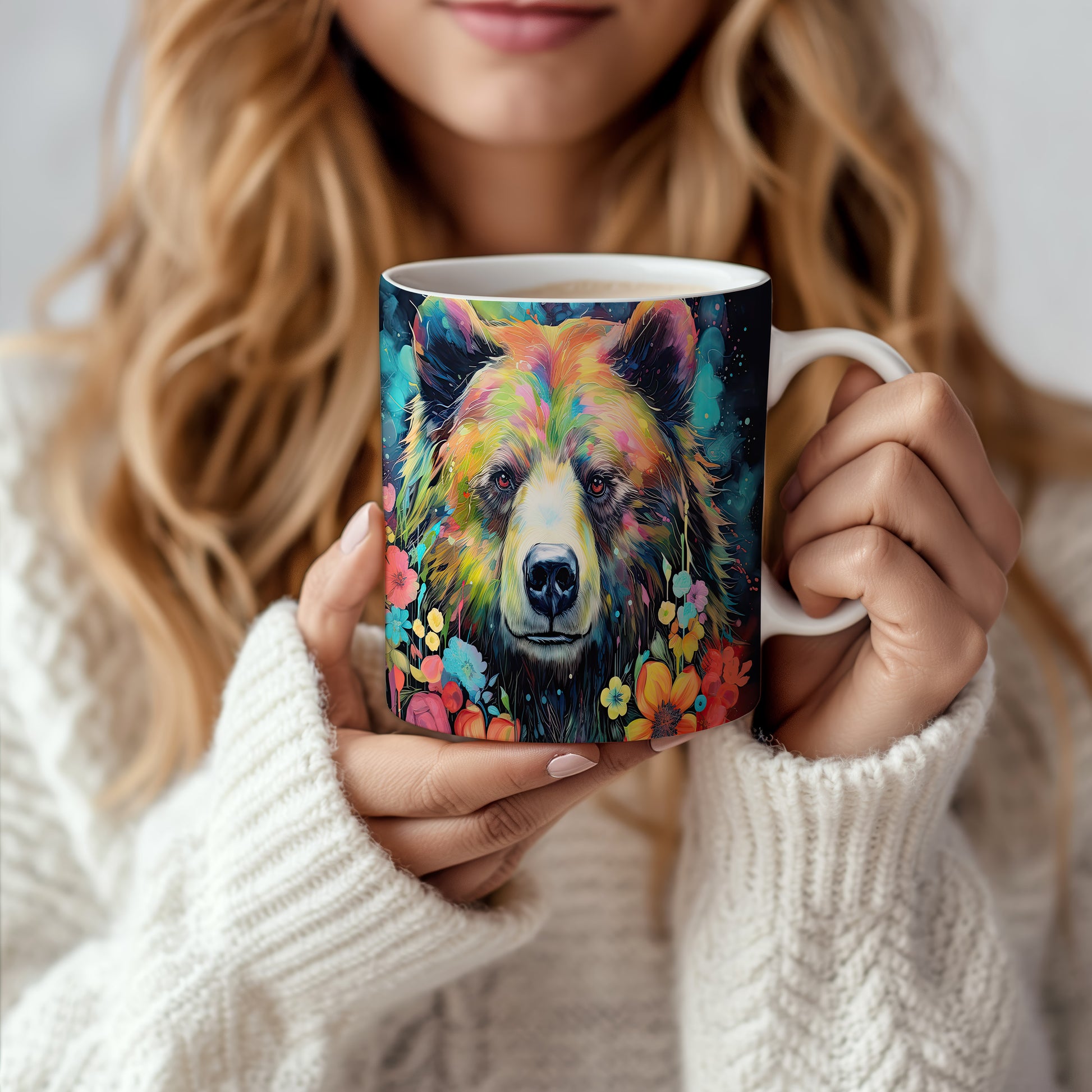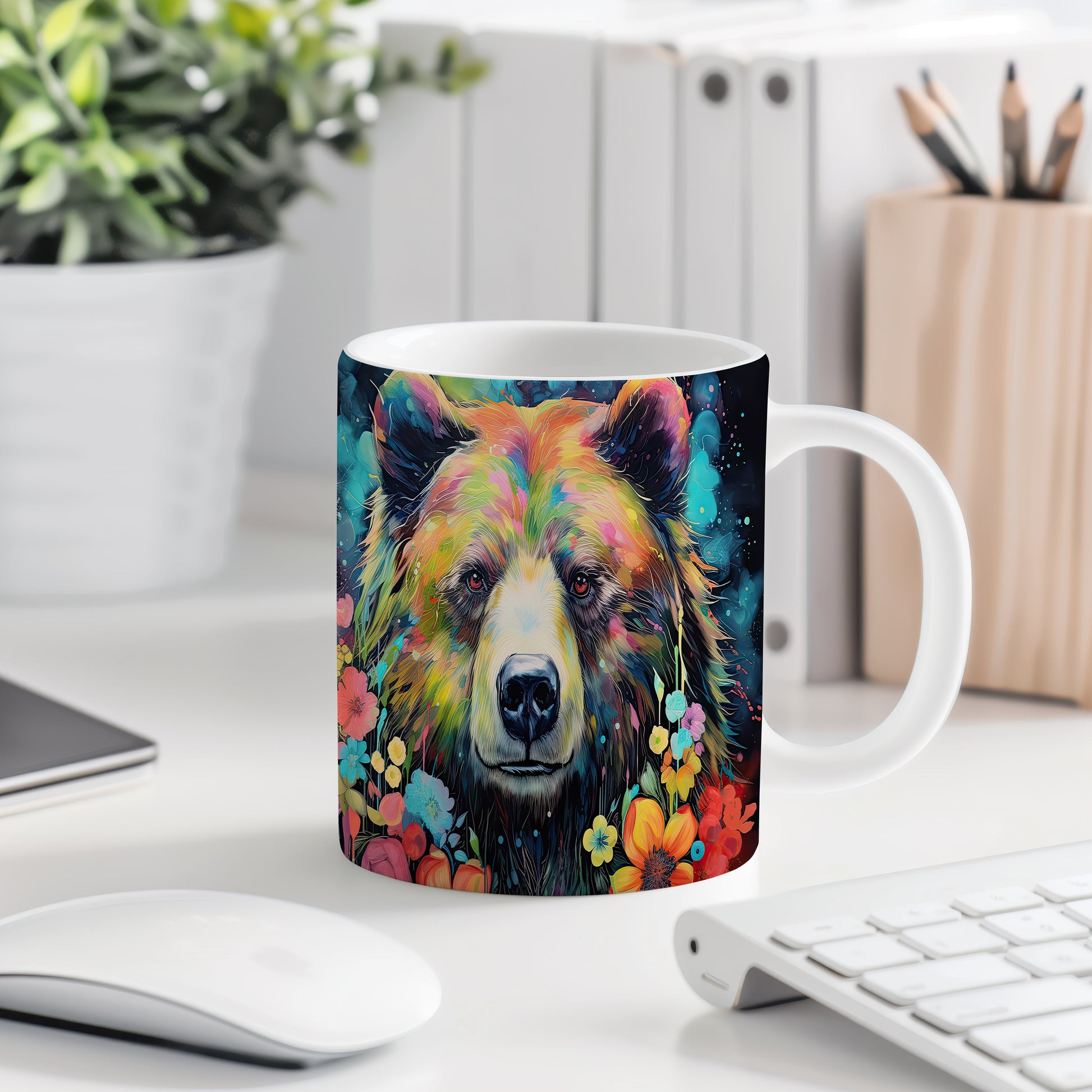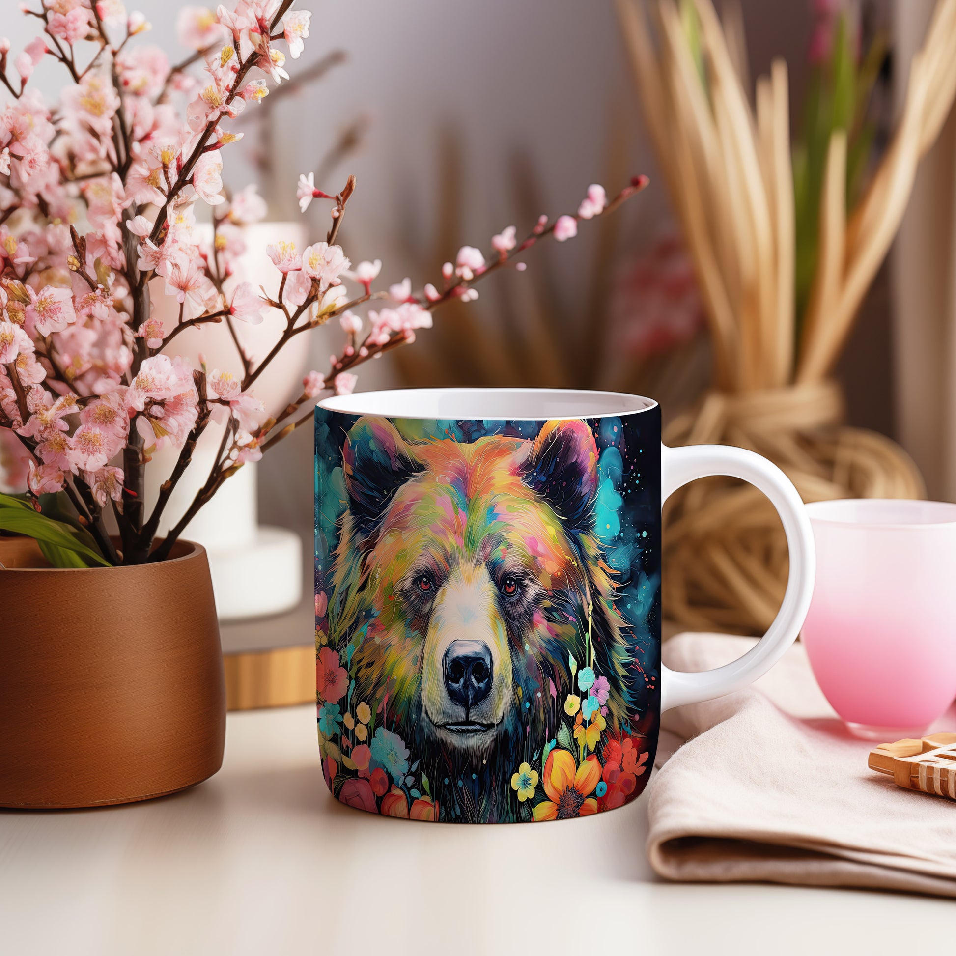 Keramický hrnek s realistickým motivem medvěda zdobeného barevnými květinami. Tento hrnek je ideální pro milovníky přírody a zvířat, skvělý tip na dárek pro přátele nebo rodinu. Materiál: keramika. Objem: 330 ml. Vhodné do myčky i mikrovlnky. Používání tohoto hrnku přináší radost z každého doušku oblíbeného nápoje.