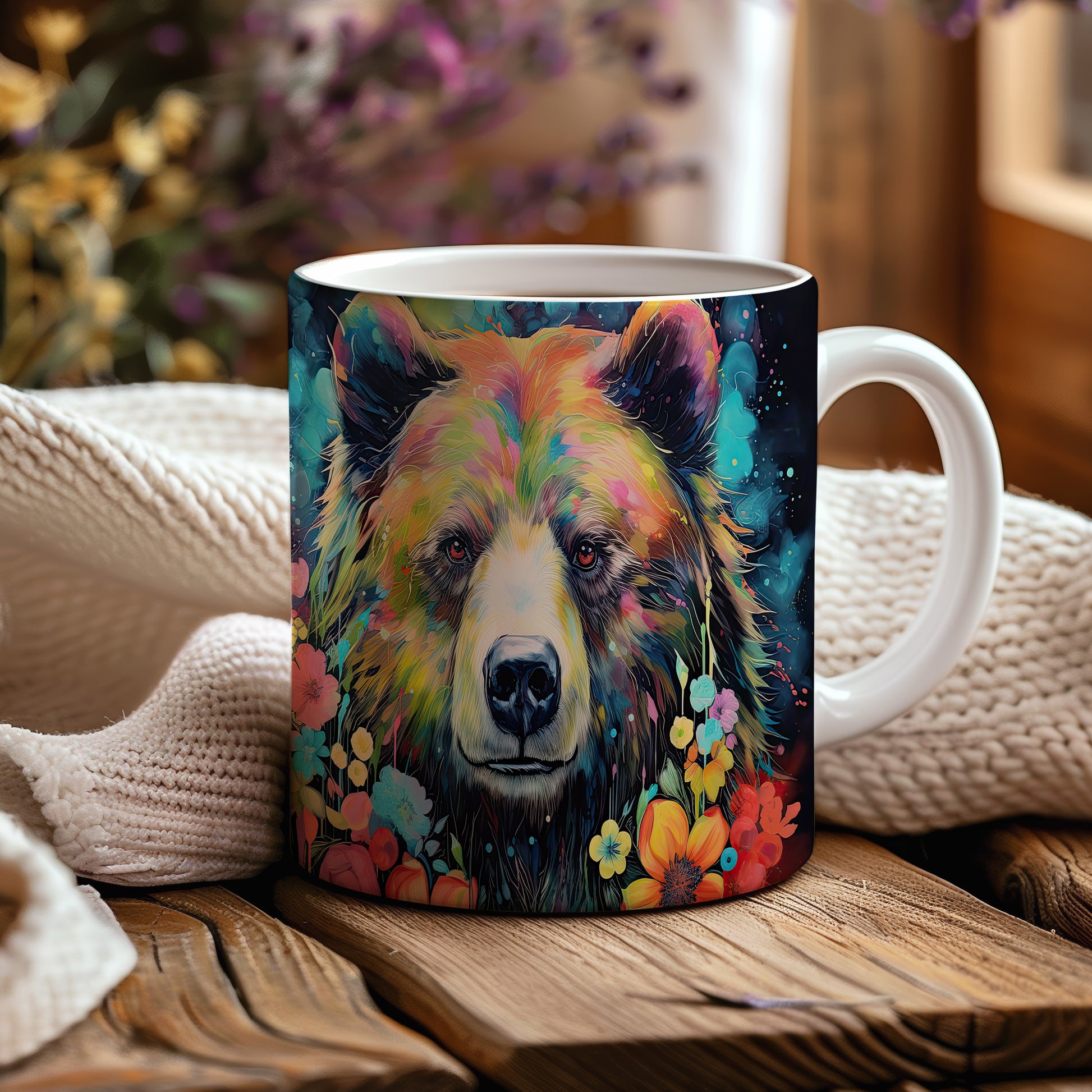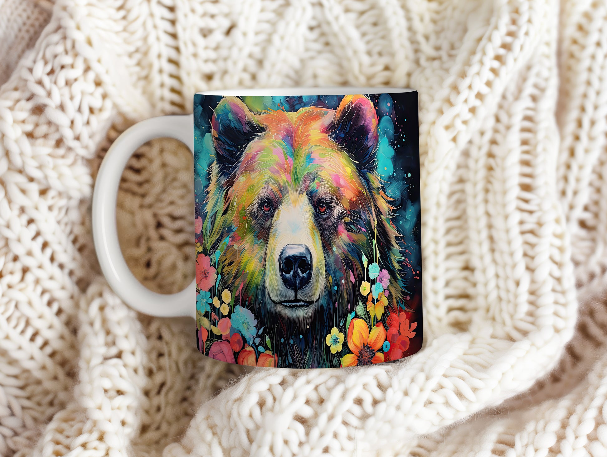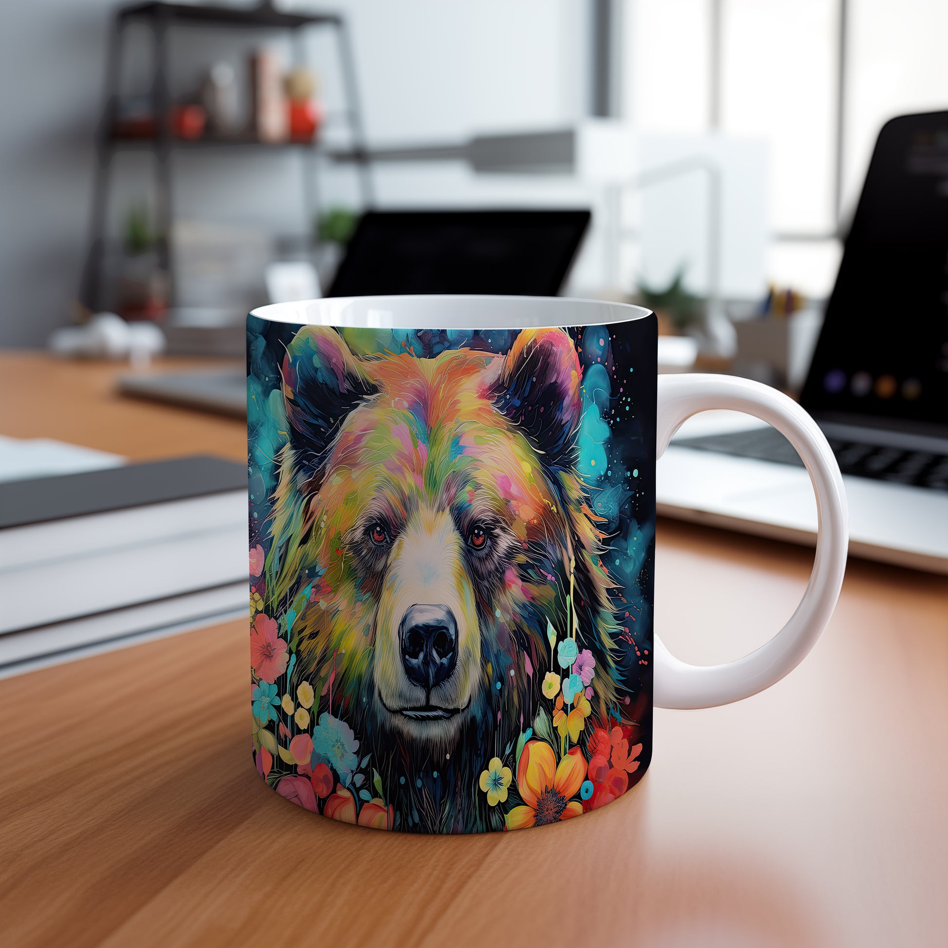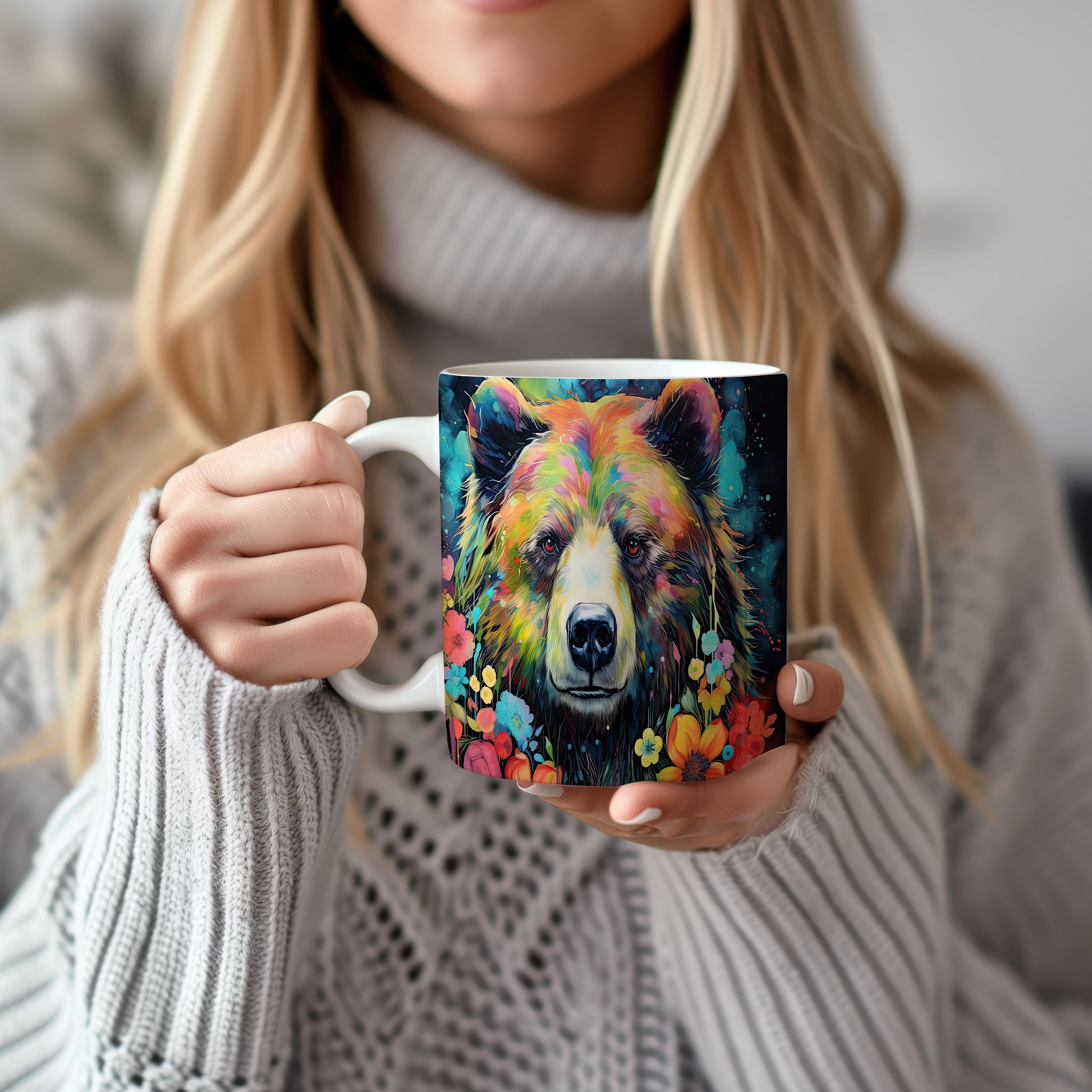 Keramický hrnek s realistickým motivem medvěda zdobeného barevnými květinami. Tento hrnek je ideální pro milovníky přírody a zvířat, skvělý tip na dárek pro přátele nebo rodinu. Materiál: keramika. Objem: 330 ml. Vhodné do myčky i mikrovlnky. Používání tohoto hrnku přináší radost z každého doušku oblíbeného nápoje.