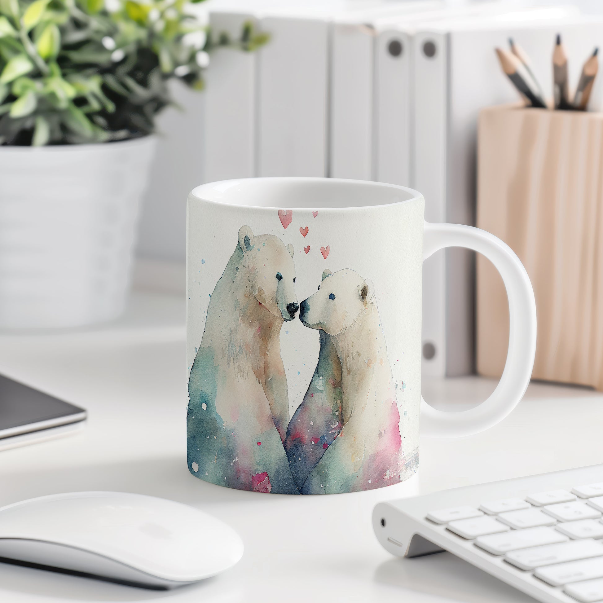 Tento originální hrnek s akvarelovým motivem medvěda a srdíček přináší romantickou atmosféru. Je ideálním dárkem pro zamilované nebo jako milý dárek pro přátele. Materiál: keramika. Objem: 330 ml. Vhodné do myčky i mikrovlnky. Používáním tohoto hrnku si užijete nejen krásný design, ale i praktické vlastnosti.