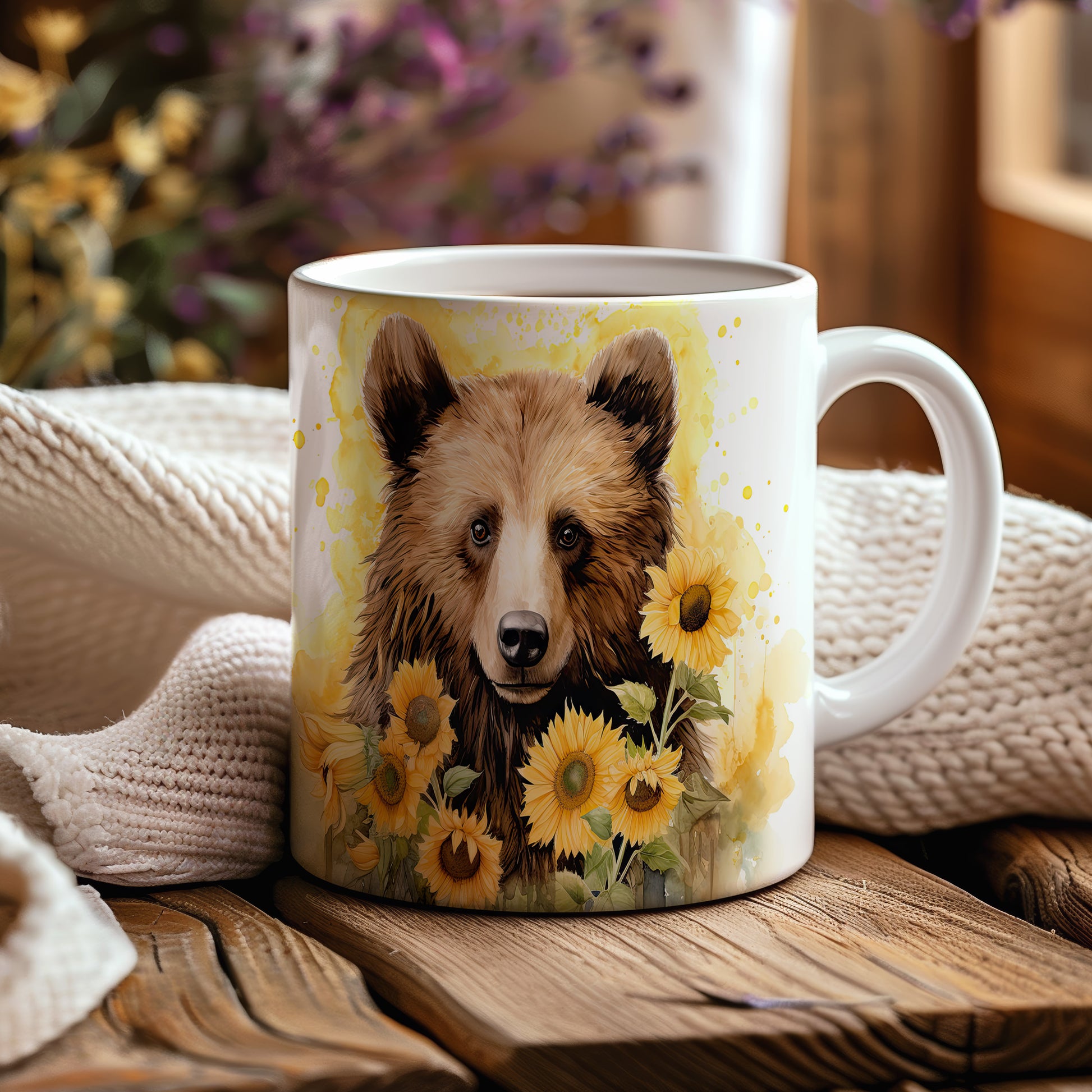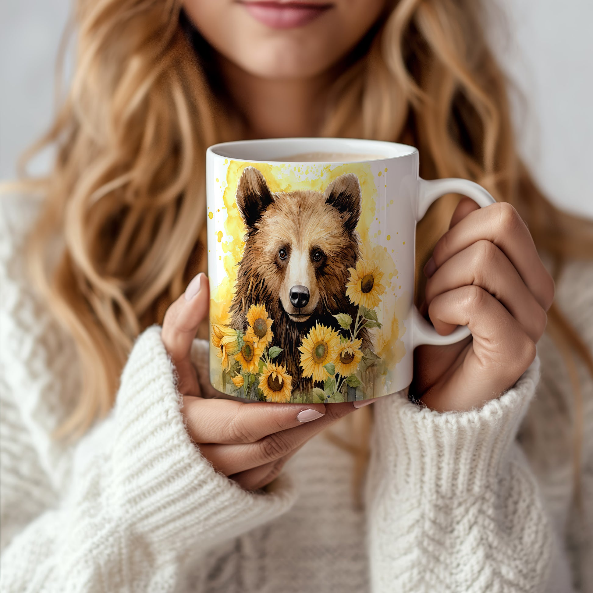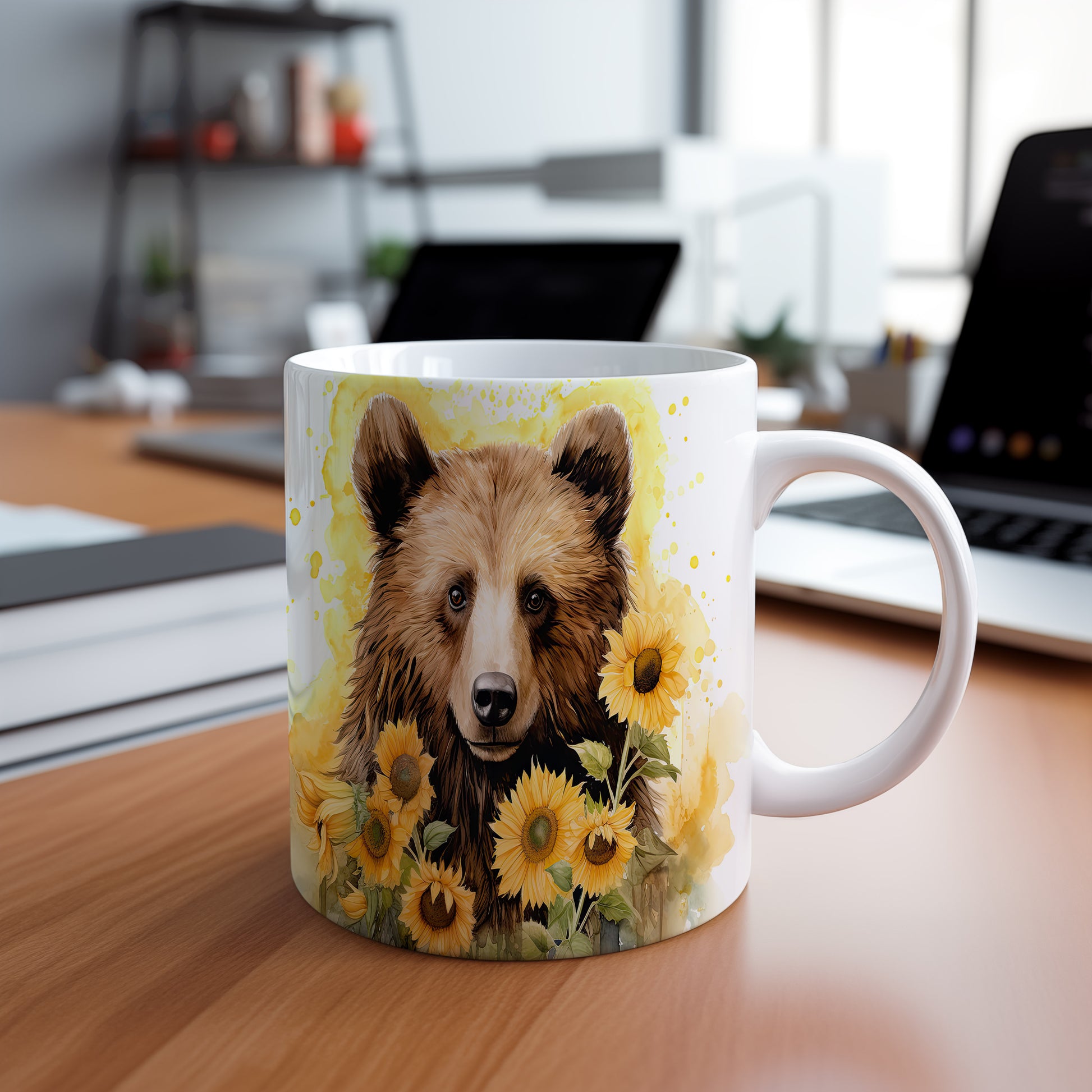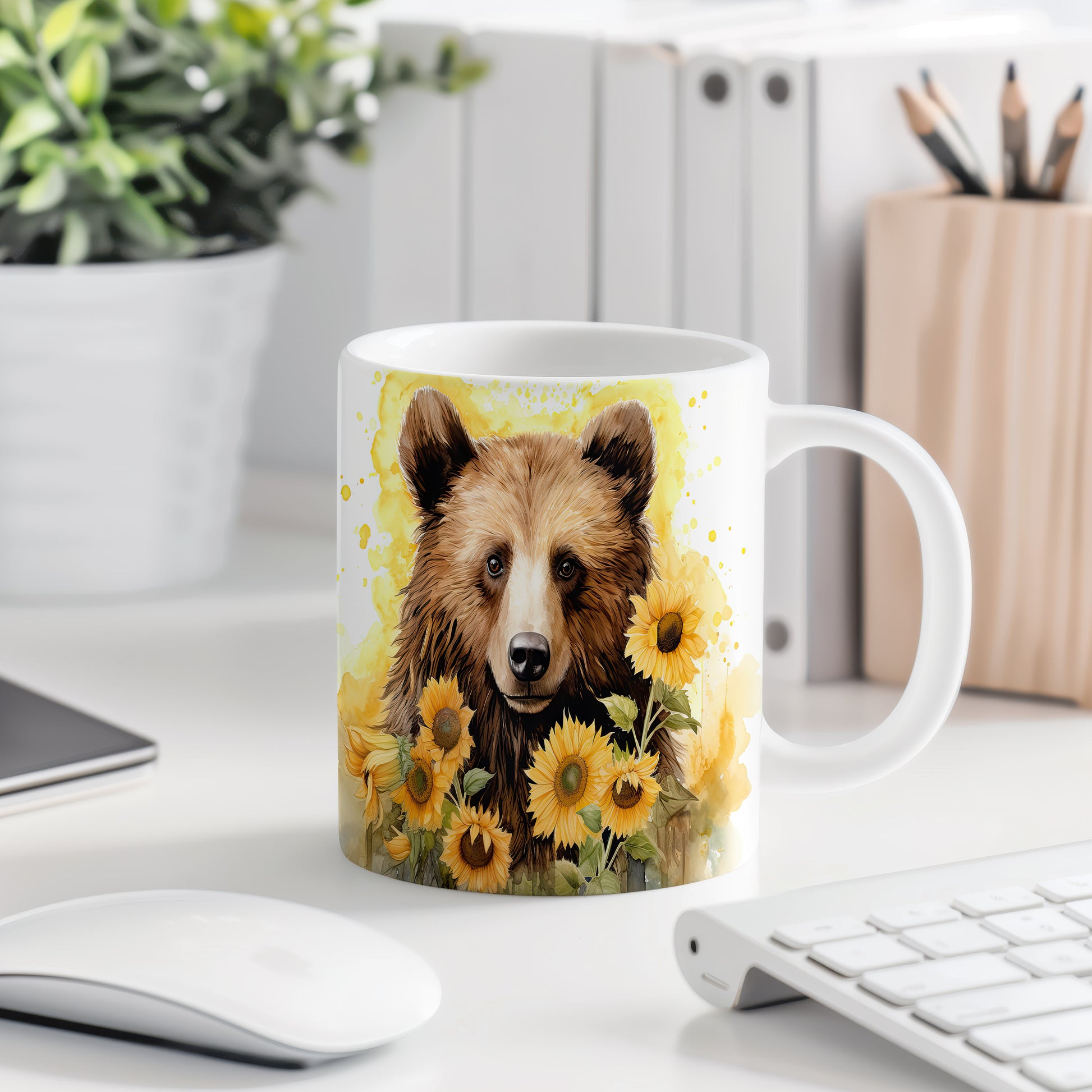 Keramický hrnek s motivem hnědého medvěda mezi slunečnicemi. Tento hrnek je ideální pro milovníky přírody a skvělým dárkem pro každého, kdo ocení jedinečný styl. Materiál: keramika. Objem: 330 ml. Vhodné do myčky i mikrovlnky. Používání tohoto hrnku přináší radost z každého doušku.