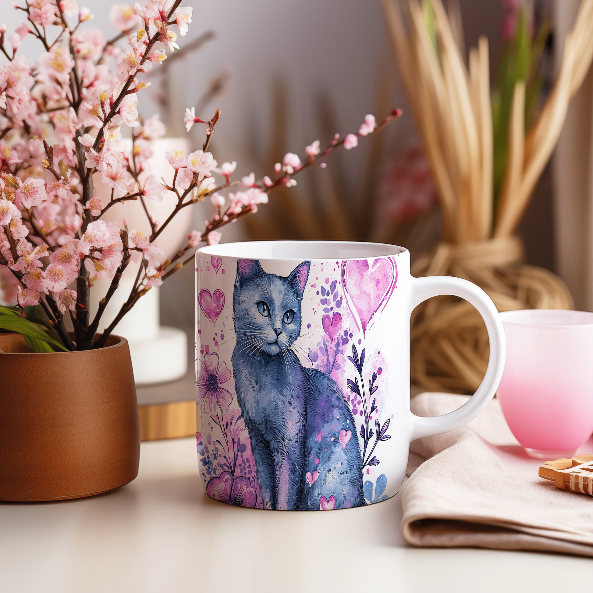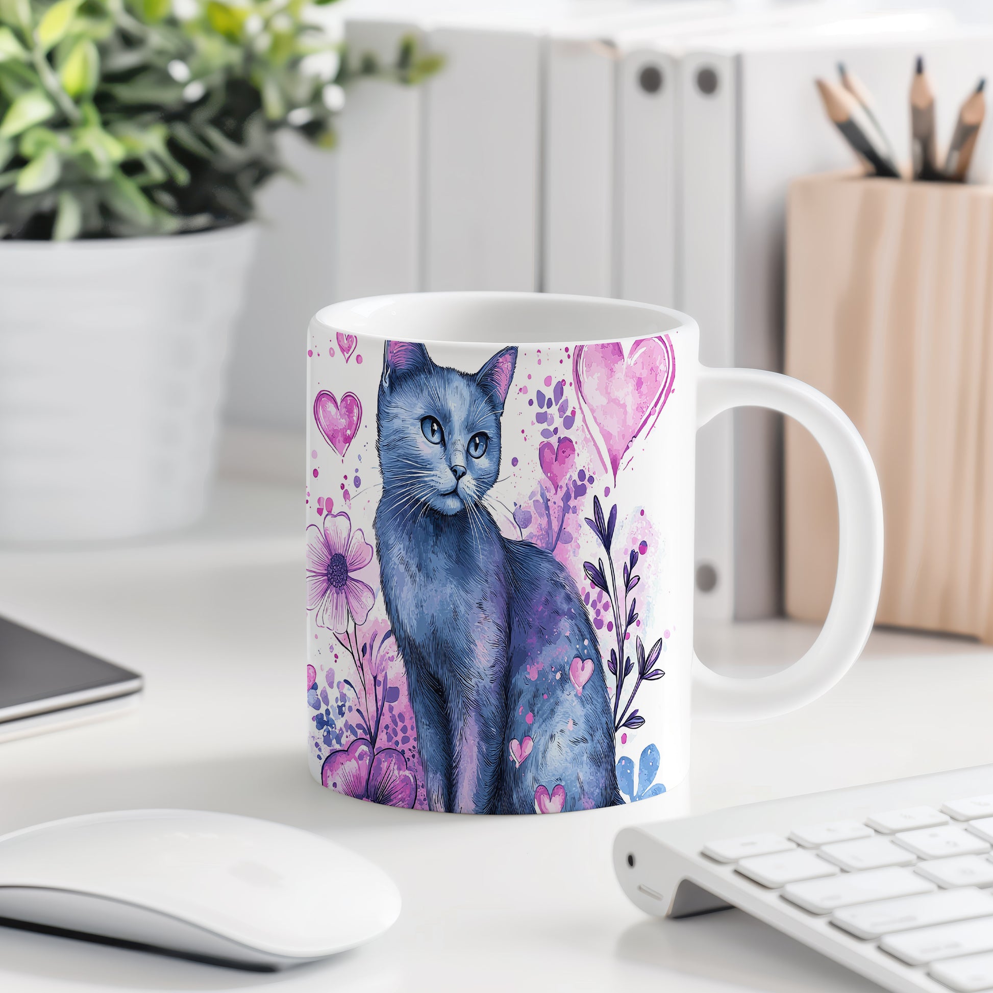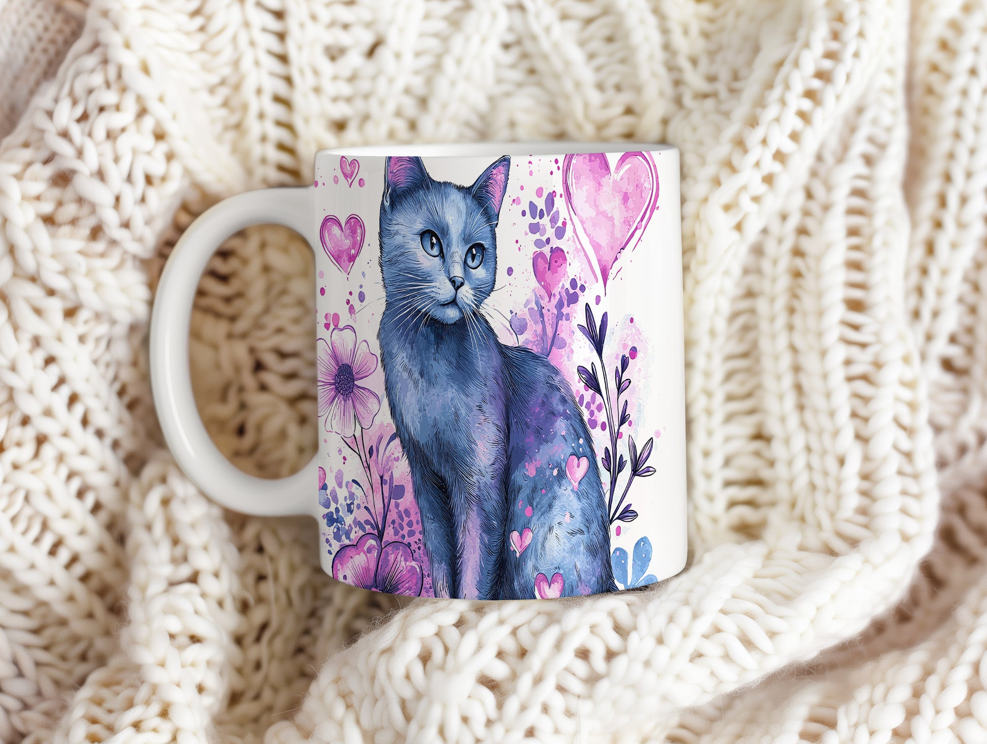 Tento hrnek zobrazuje modrou kočku v květinovém stylu. Je ideální pro milovníky koček a skvělým dárkem pro každého, kdo má rád originální design. Materiál: keramika. Objem: 330 ml. Vhodné do myčky i mikrovlnky. Používání tohoto hrnku přináší radost a oživí každodenní chvíle.