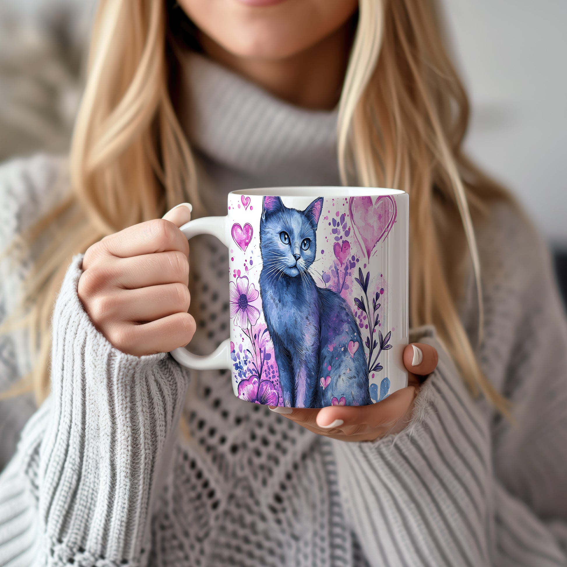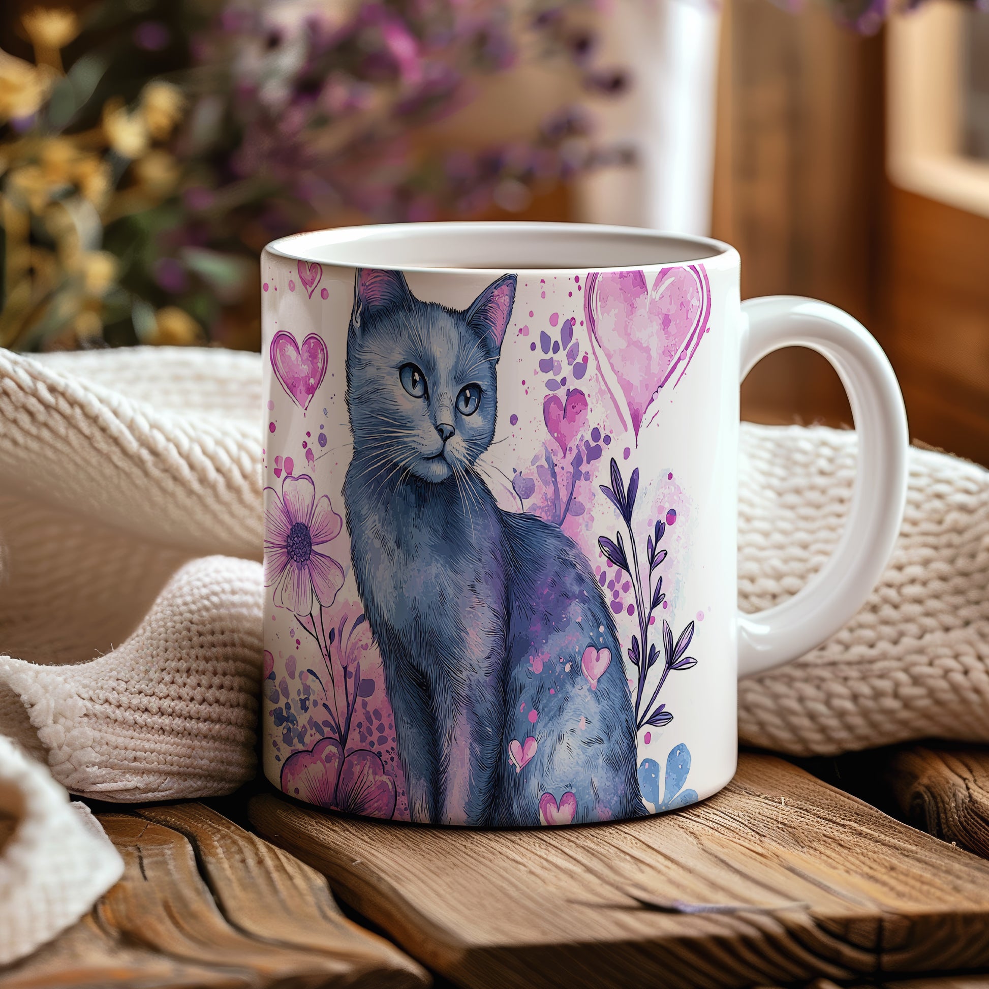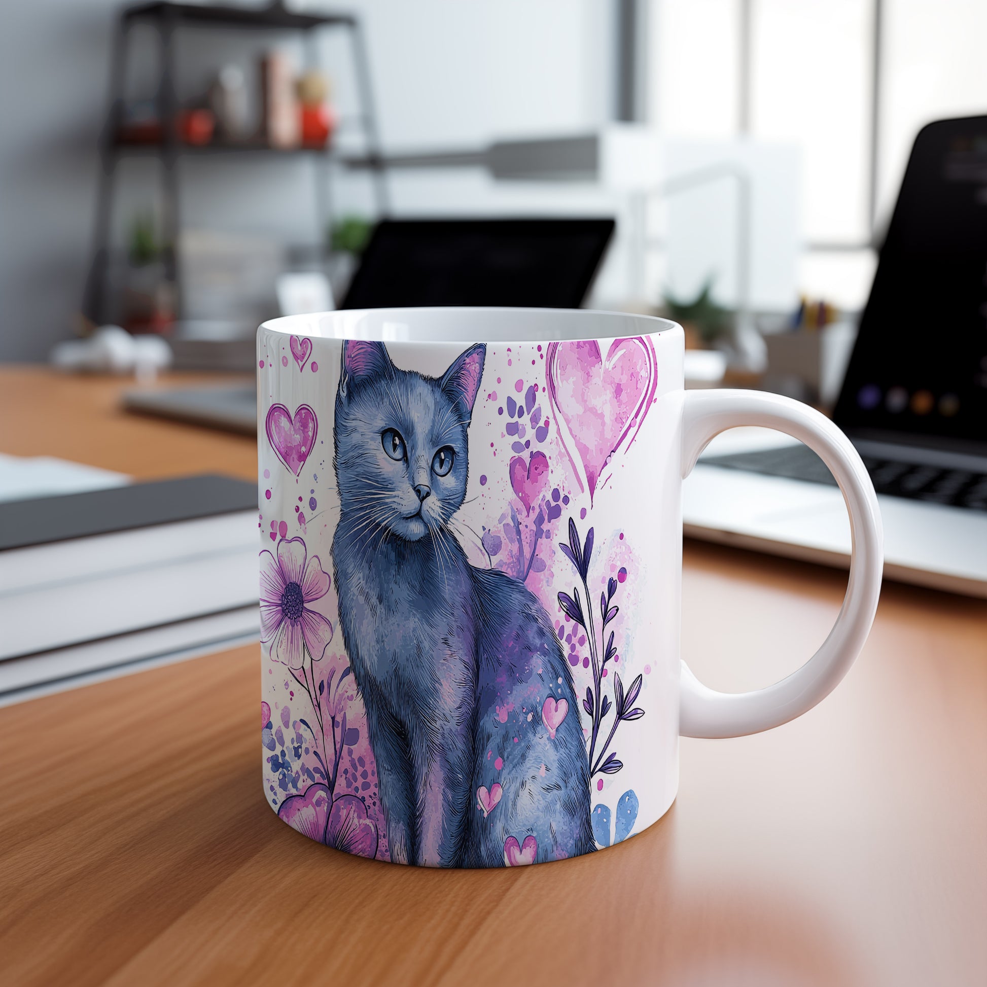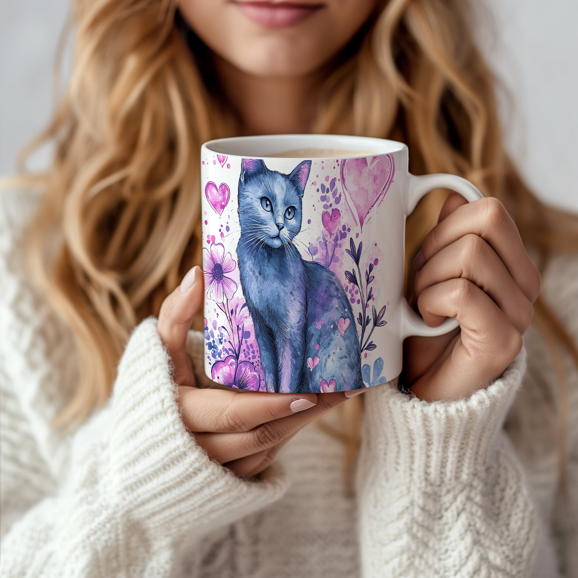 Tento hrnek zobrazuje modrou kočku v květinovém stylu. Je ideální pro milovníky koček a skvělým dárkem pro každého, kdo má rád originální design. Materiál: keramika. Objem: 330 ml. Vhodné do myčky i mikrovlnky. Používání tohoto hrnku přináší radost a oživí každodenní chvíle.