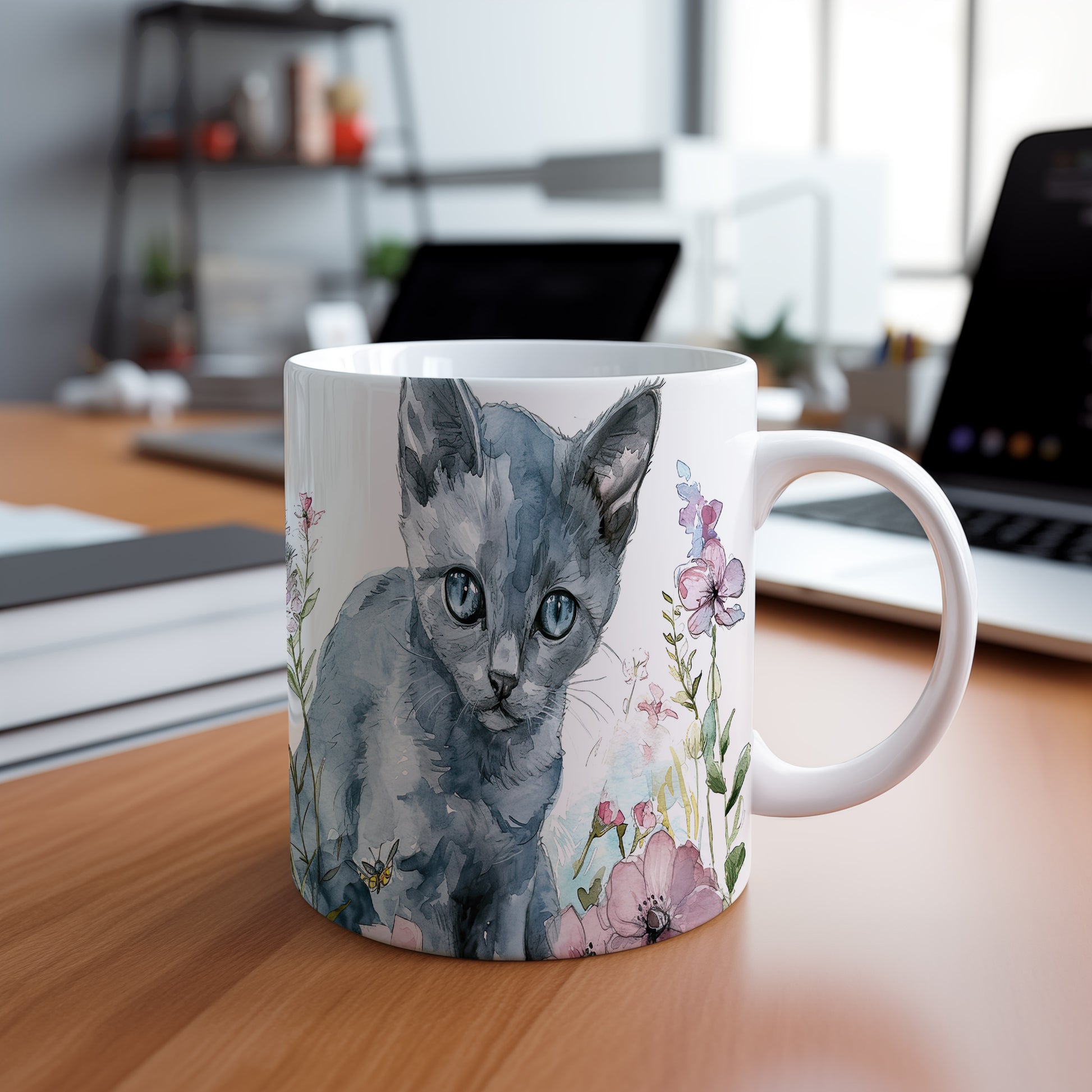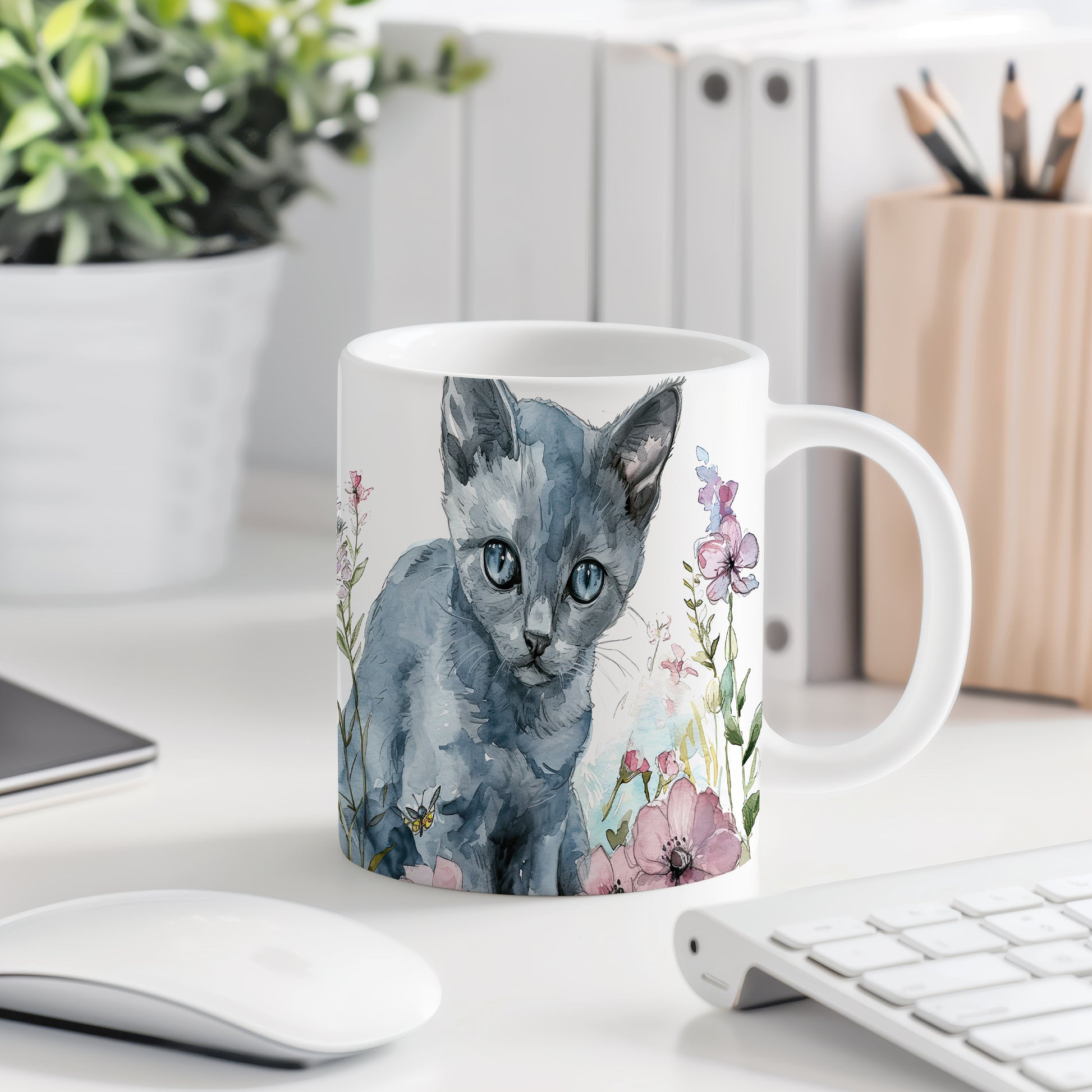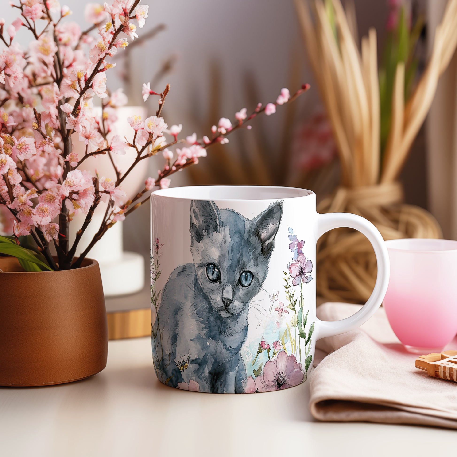 Hrnek s motivem modré kočky a květin je skvělým doplňkem pro milovníky zvířat a přírody. Tento hrnek potěší každého, kdo hledá originální dárek pro své blízké. Materiál: keramika. Objem: 330 ml. Vhodné do myčky i mikrovlnky. Díky svému designu přináší radost při každém doušku oblíbeného nápoje.