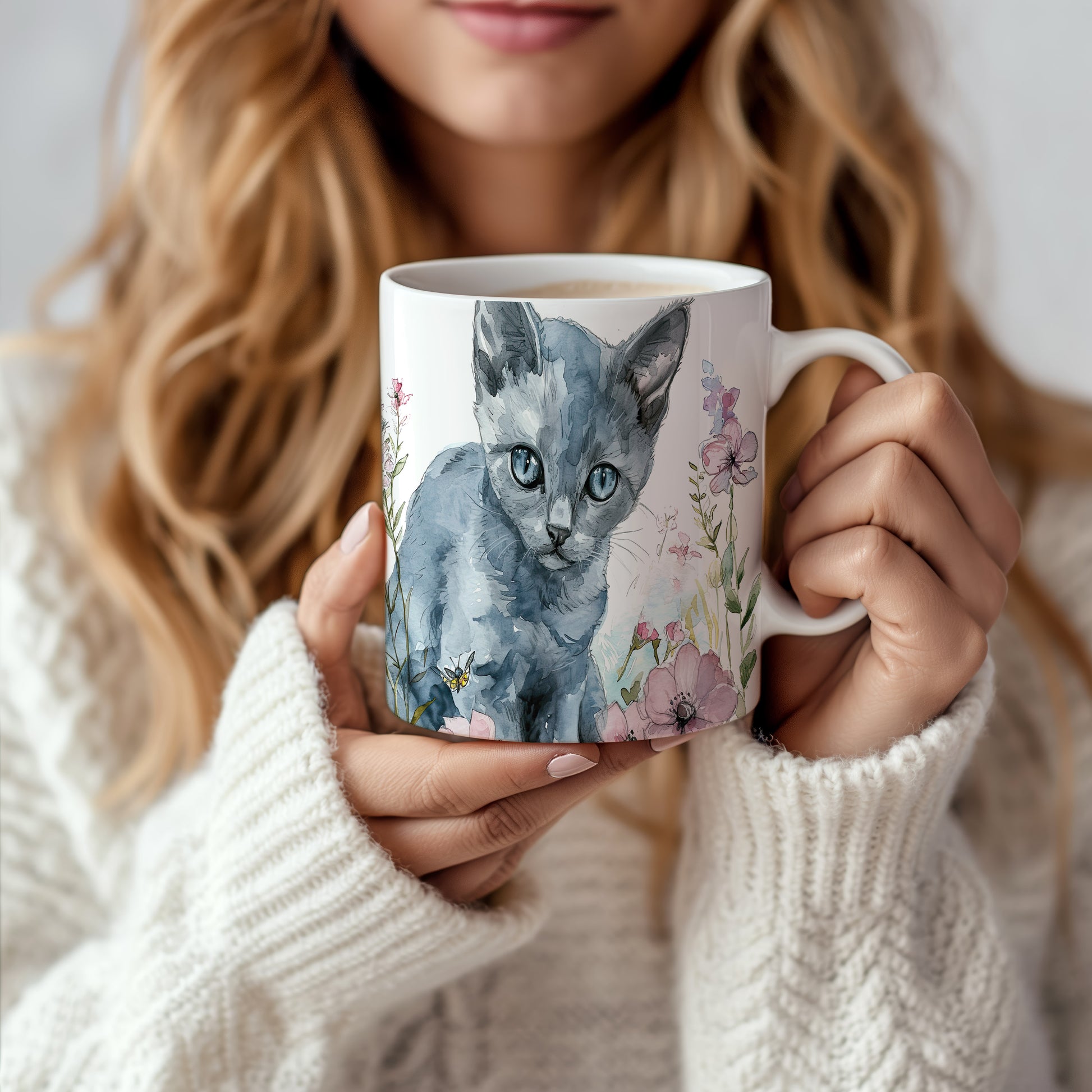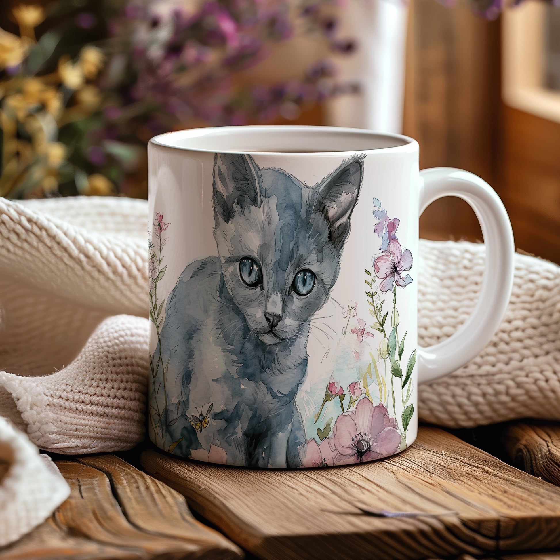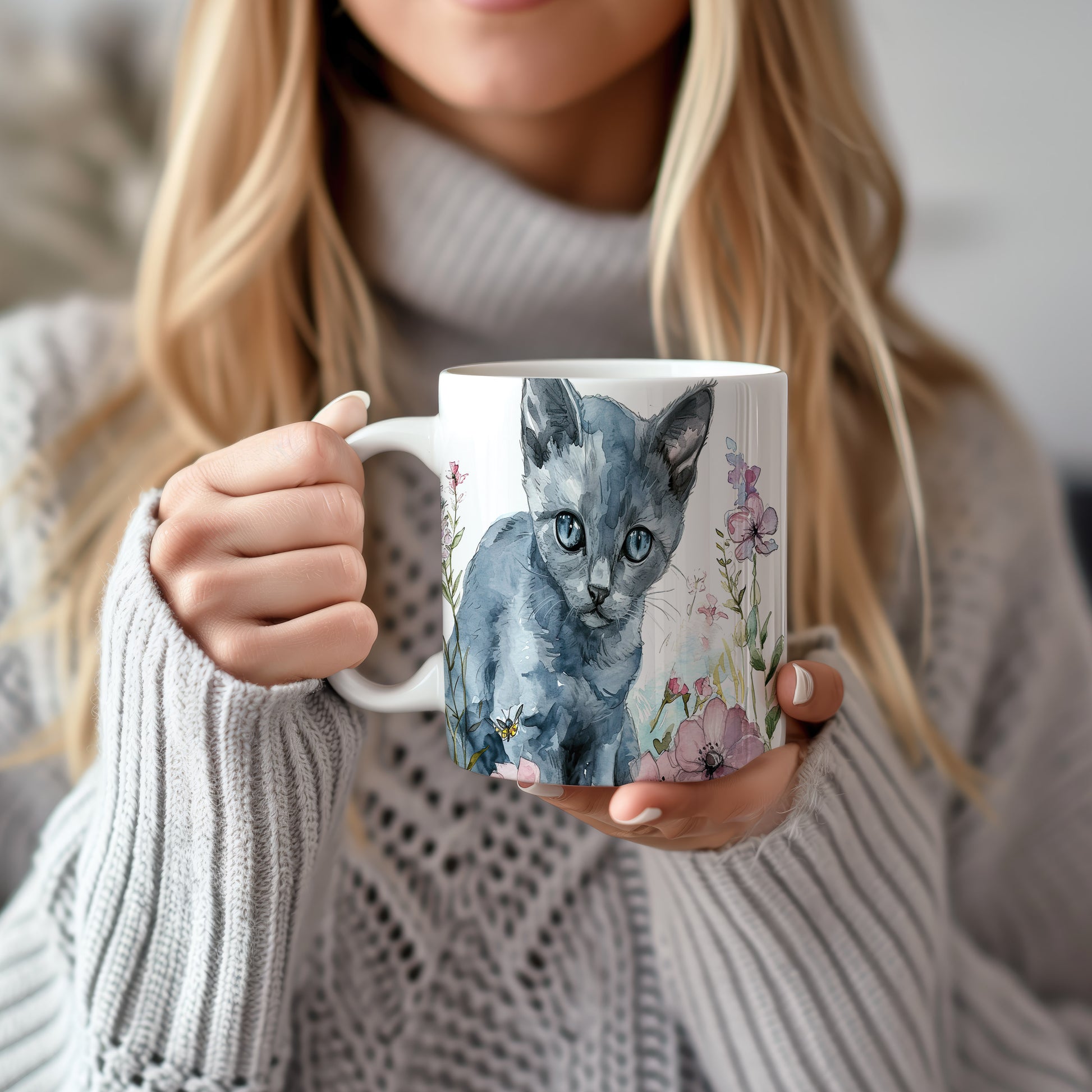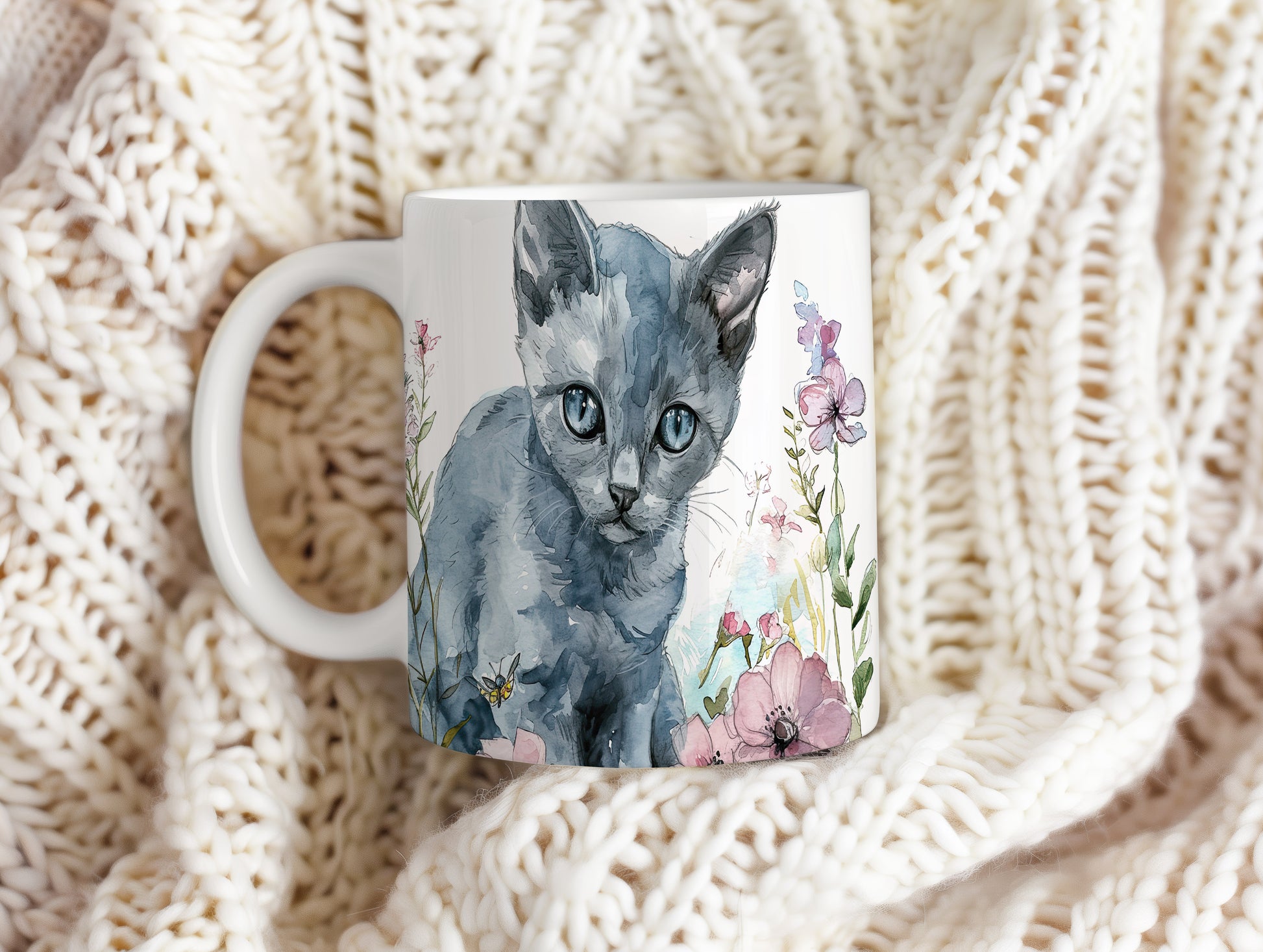 Hrnek s motivem modré kočky a květin je skvělým doplňkem pro milovníky zvířat a přírody. Tento hrnek potěší každého, kdo hledá originální dárek pro své blízké. Materiál: keramika. Objem: 330 ml. Vhodné do myčky i mikrovlnky. Díky svému designu přináší radost při každém doušku oblíbeného nápoje.