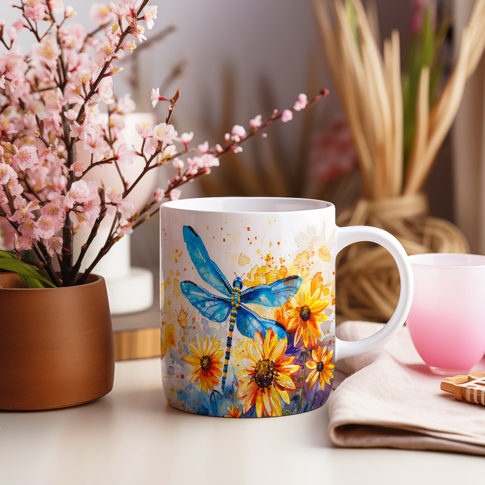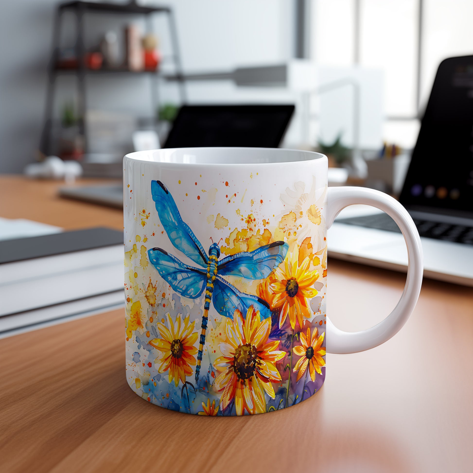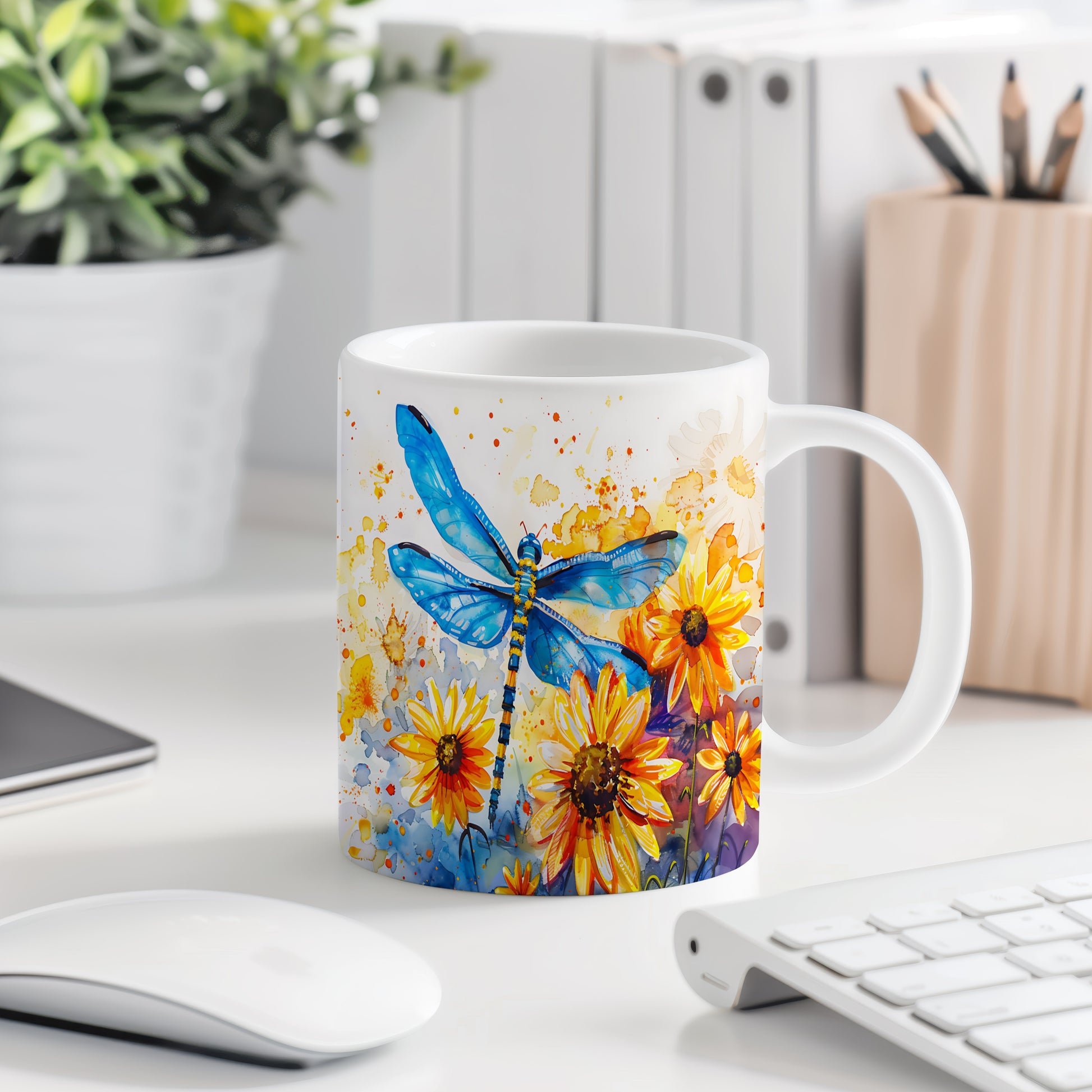 Tento hrnek s motivem modré vážky a slunečnic je skvělým kouskem pro milovníky přírody. Ideální dárek pro přátele nebo rodinu, kteří ocení krásu a originalitu. Materiál: keramika. Objem: 330 ml. Vhodné do myčky i mikrovlnky. Používáním tohoto hrnku si zpříjemníte každé ráno a dodáte svému pití osobitý styl.