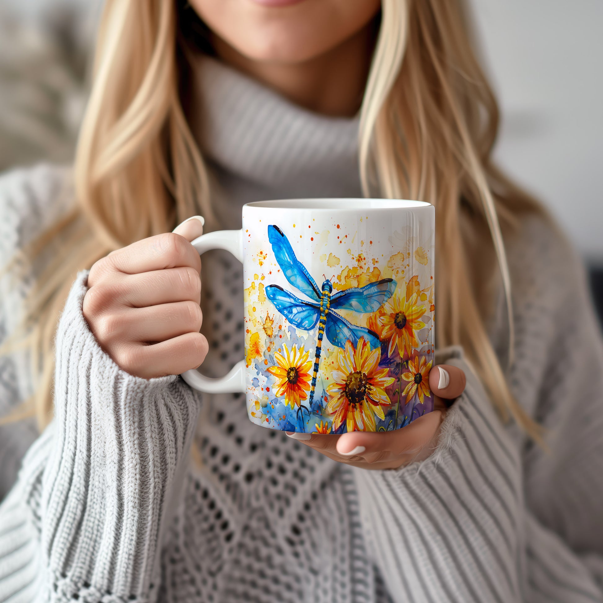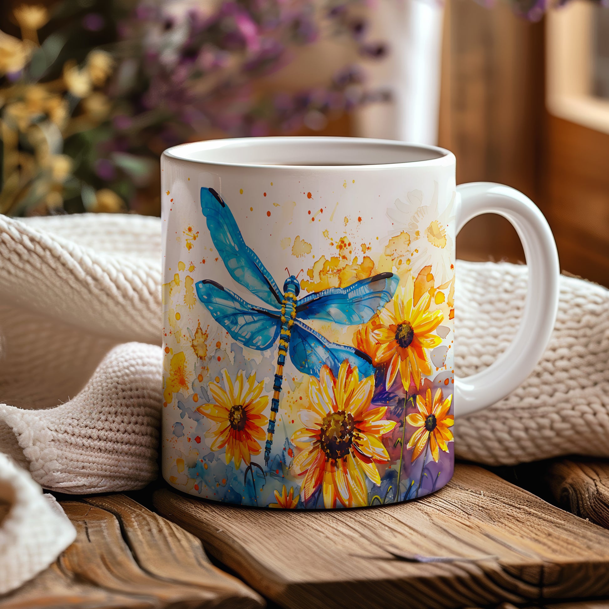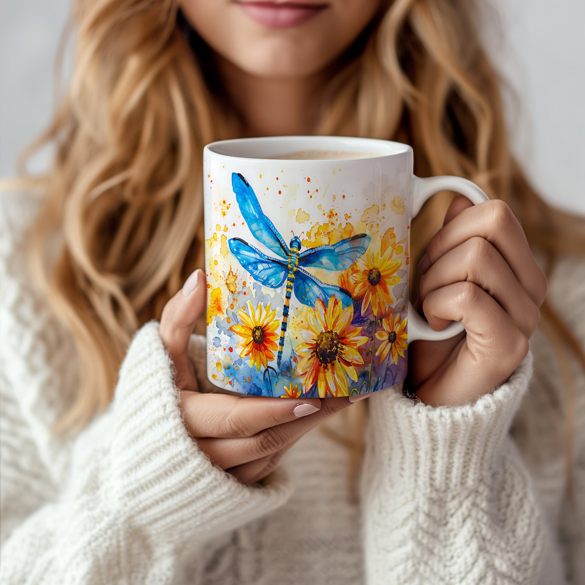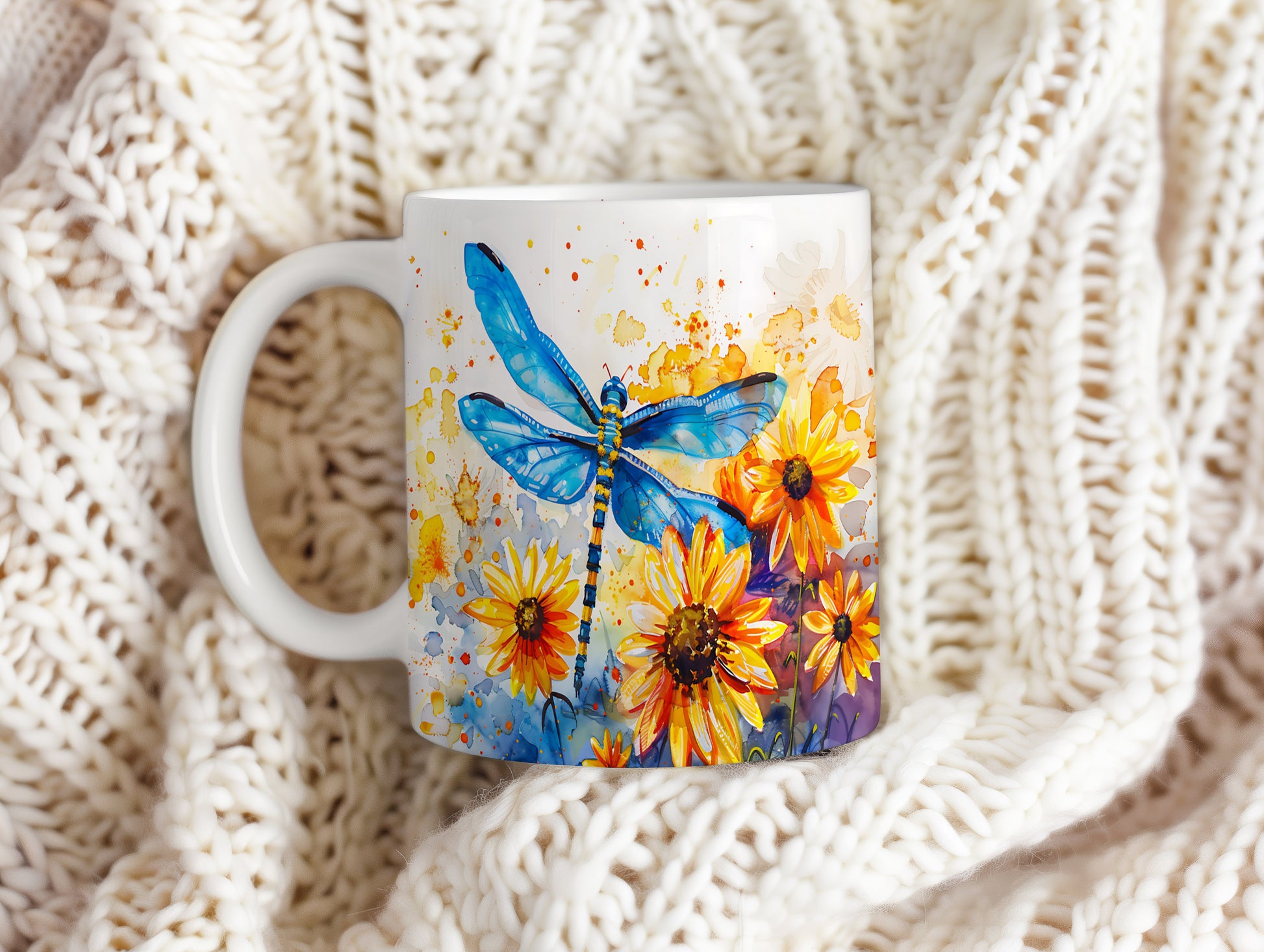 Tento hrnek s motivem modré vážky a slunečnic je skvělým kouskem pro milovníky přírody. Ideální dárek pro přátele nebo rodinu, kteří ocení krásu a originalitu. Materiál: keramika. Objem: 330 ml. Vhodné do myčky i mikrovlnky. Používáním tohoto hrnku si zpříjemníte každé ráno a dodáte svému pití osobitý styl.