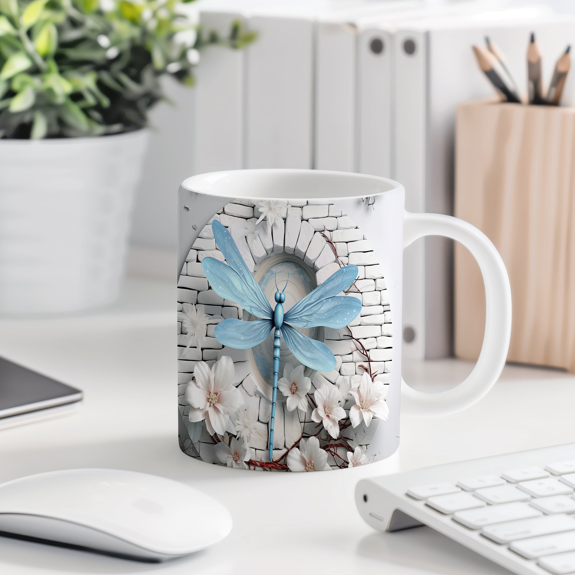 Hrnek s modrou vážkou a květinovým motivem přináší do vašeho každodenního pití šarm a eleganci. Je ideální pro milovníky přírody a skvělým dárkem pro přátele či rodinu. Materiál: keramika. Objem: 330 ml. Vhodné do myčky i mikrovlnky. Tento hrnek vám zpříjemní každé ráno a dodá vám energii na celý den.