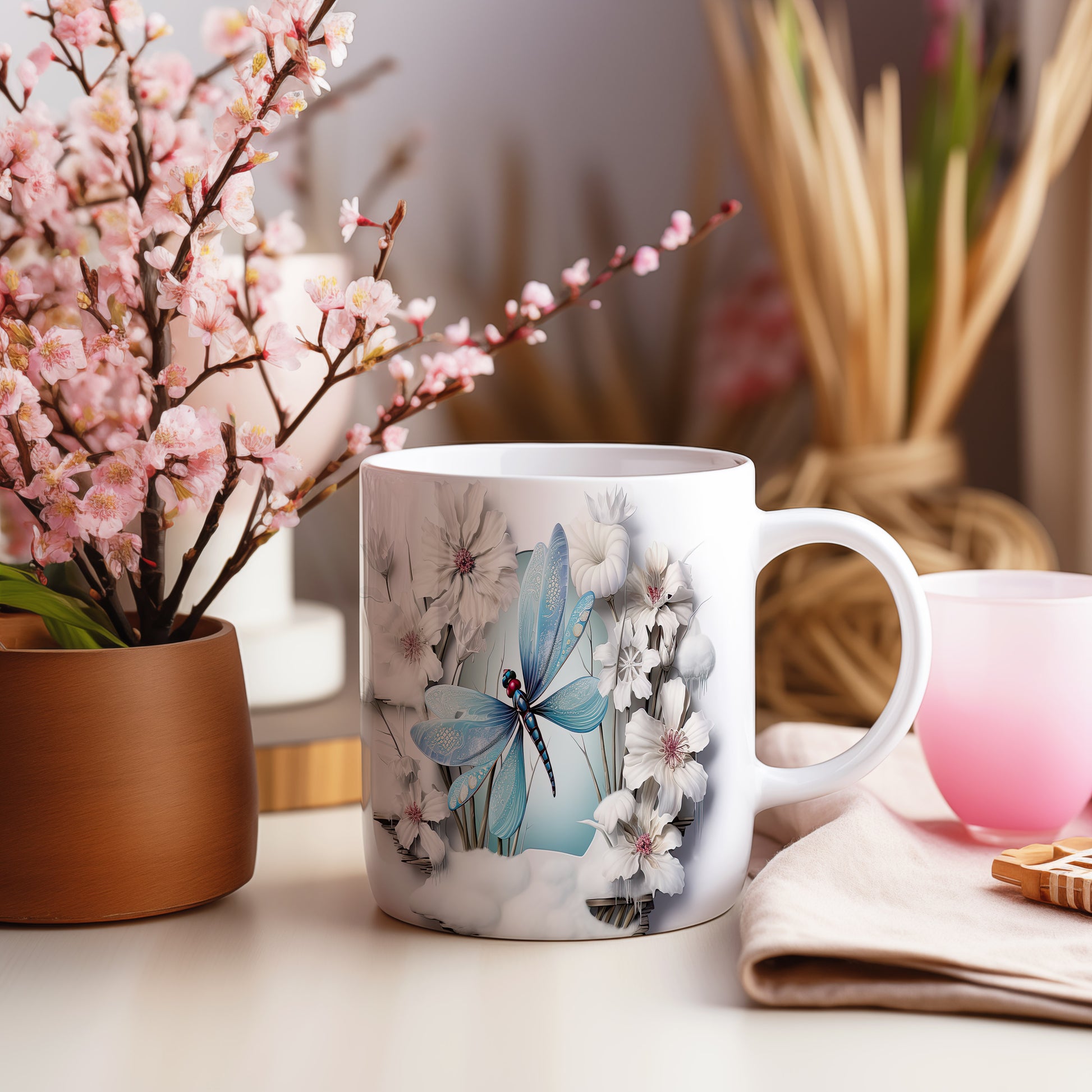 Hrnek s modrou vážkou – roztomilým motivem