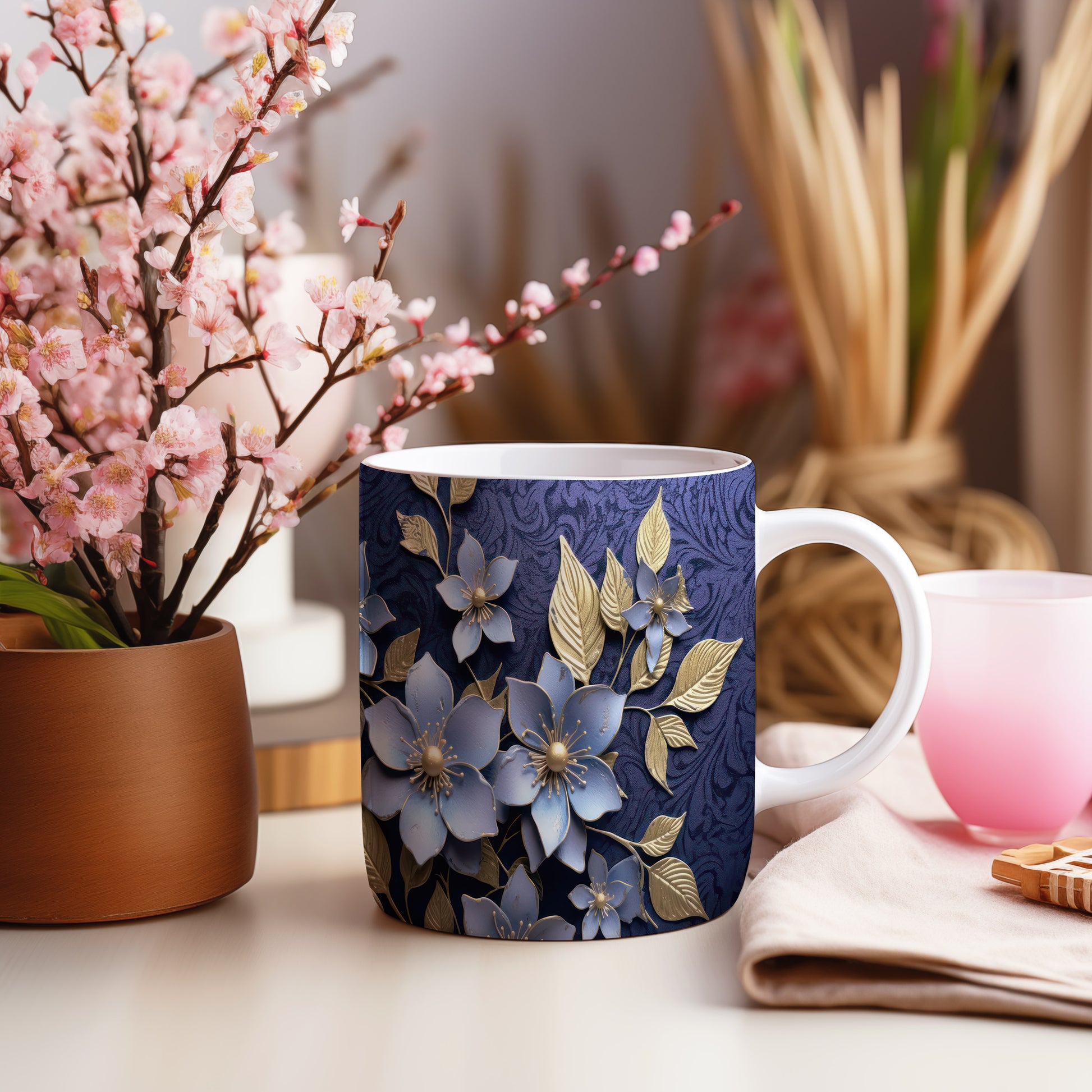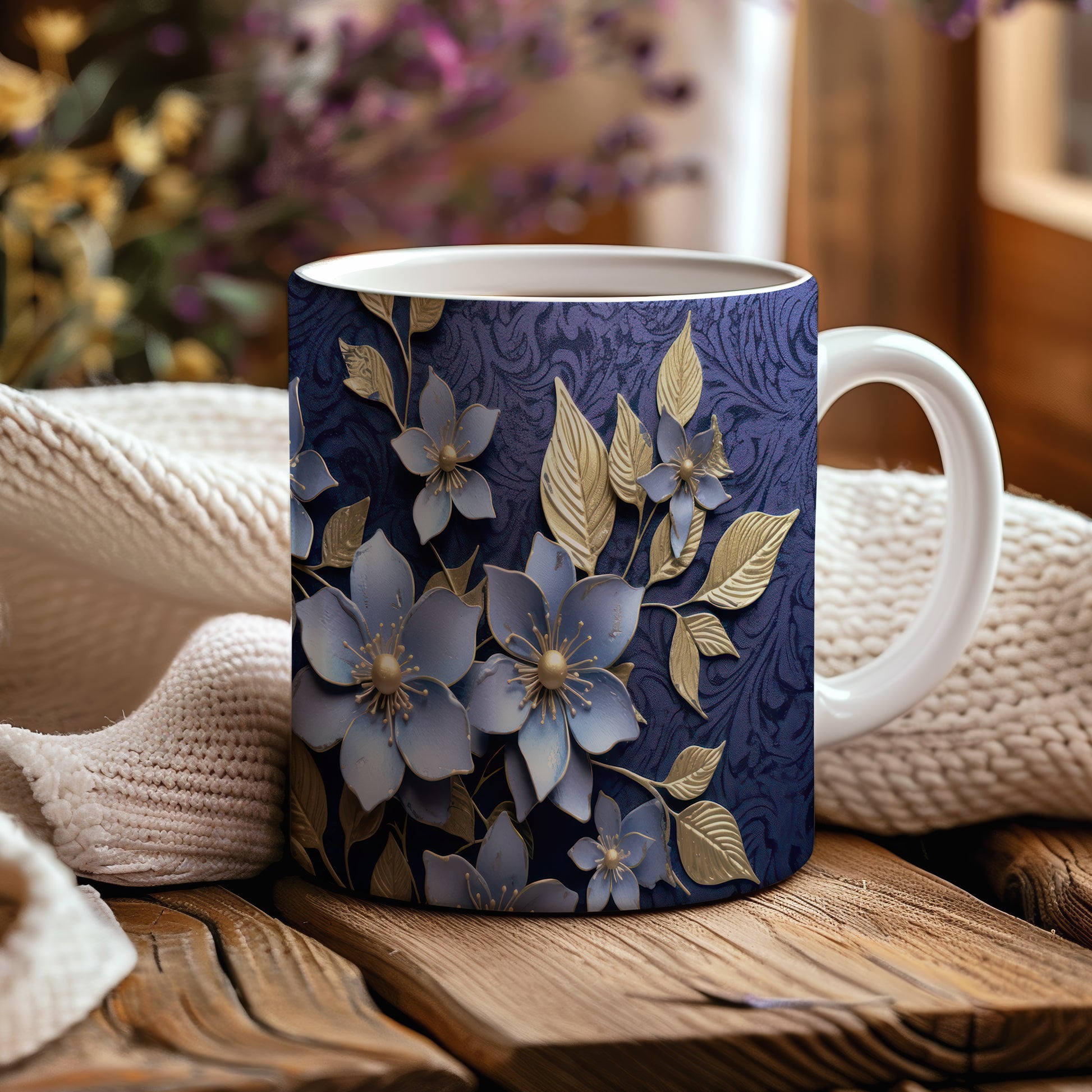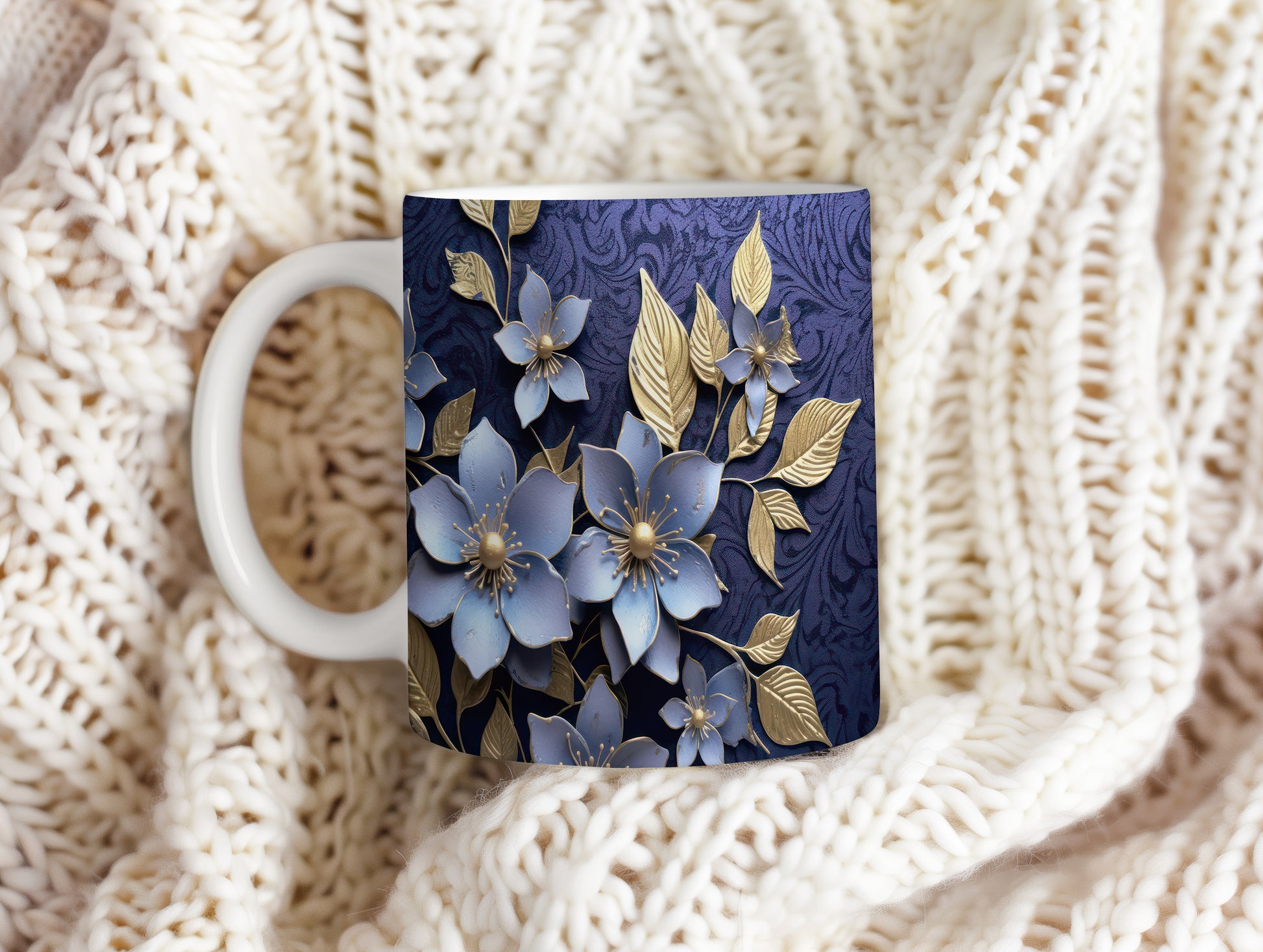 Tento keramický hrnek s motivem modrých květin a zlatých listů je skvělým doplňkem pro každého milovníka přírody. Je ideální jako dárek pro přátele nebo rodinu, kteří ocení elegantní design. Materiál: keramika. Objem: 330 ml. Vhodné do myčky i mikrovlnky. Používání tohoto hrnku přináší radost z každého doušku.