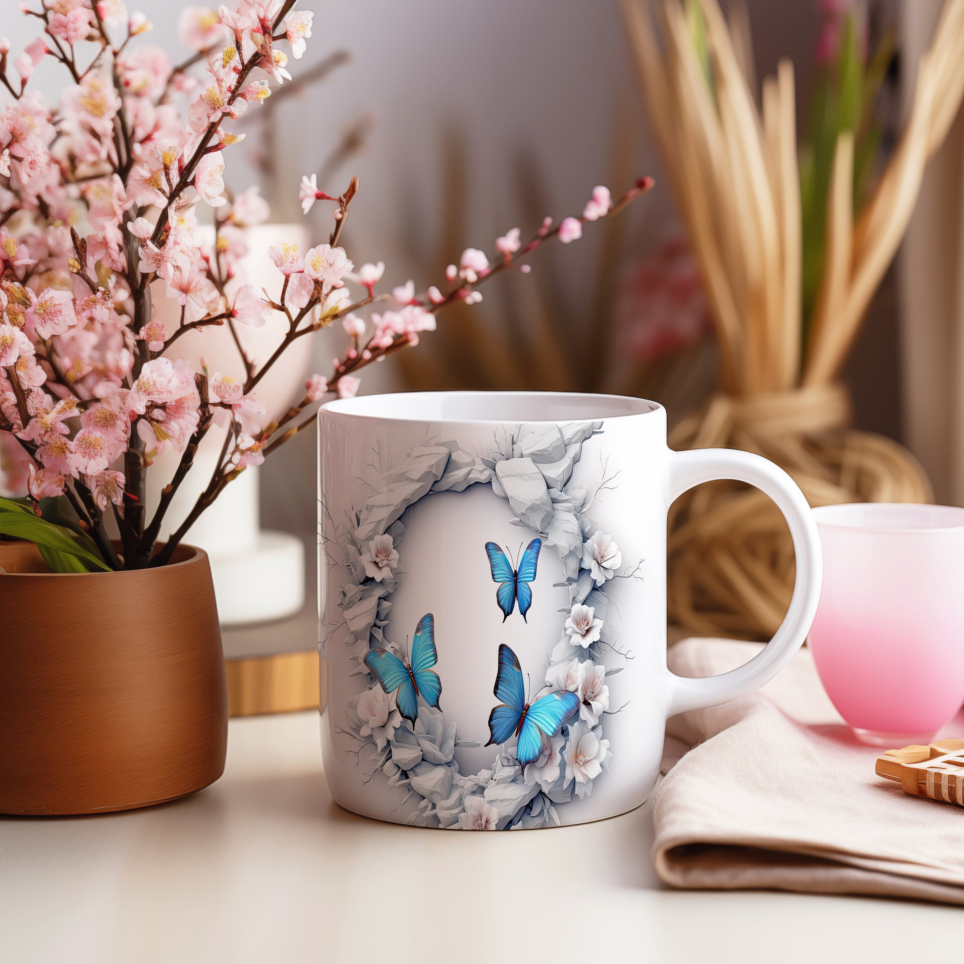 Tento elegantní hrnek s motivem modrých motýlů přináší do vašeho dne krásu a svěžest. Je ideální pro milovníky přírody a skvělým dárkem pro přátele nebo rodinu. Materiál: keramika. Objem: 330 ml. Vhodné do myčky i mikrovlnky. Používání tohoto hrnku vám zpříjemní každé ráno a dodá vám inspiraci.