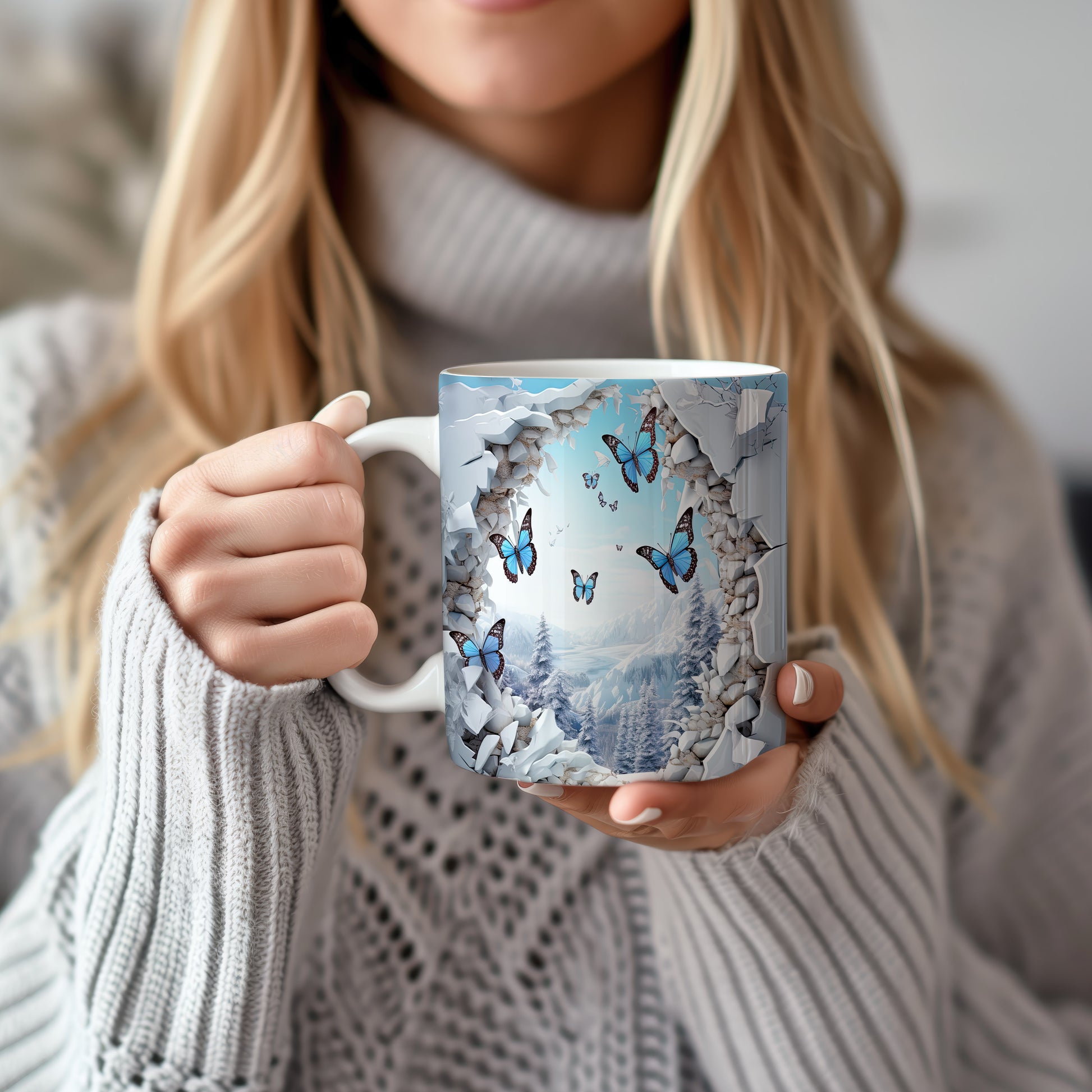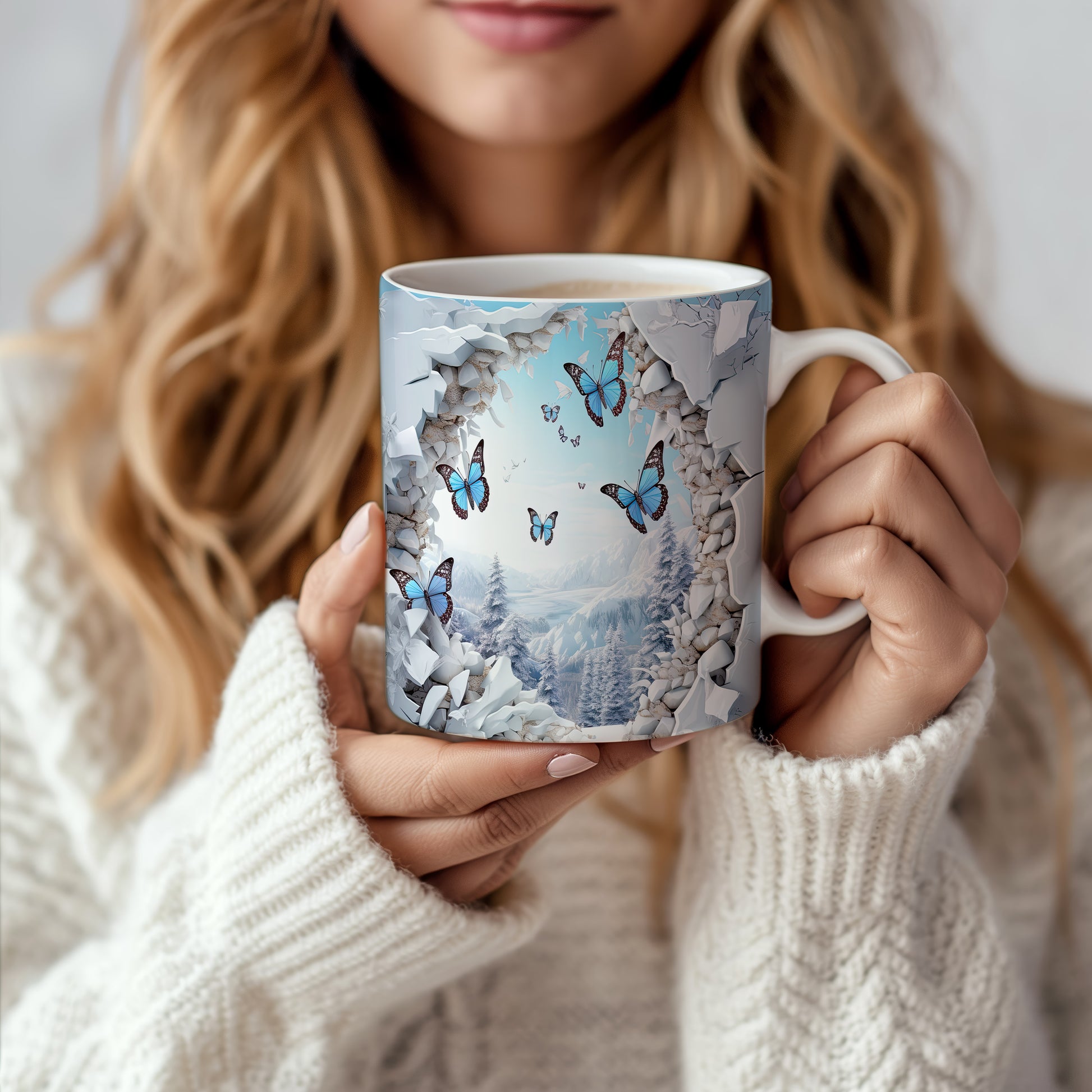 Tento keramický hrnek s modrými motýly přináší do vašeho dne kousek přírody a elegance. Je ideální pro milovníky přírody a skvělým dárkem pro přátele nebo rodinu. Materiál: keramika. Objem: 330 ml. Vhodné do myčky i mikrovlnky. Díky svému designu přináší radost při každém doušku.