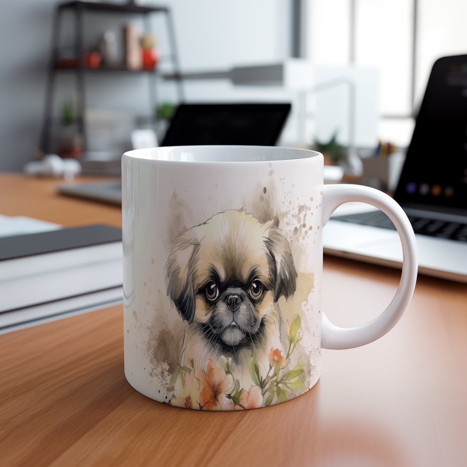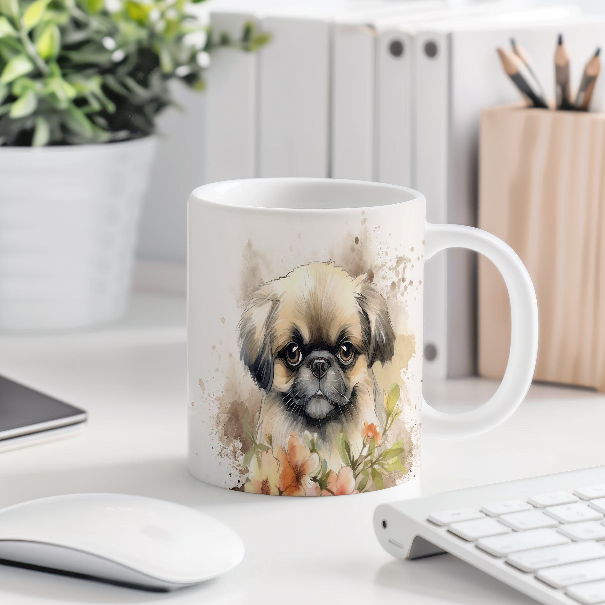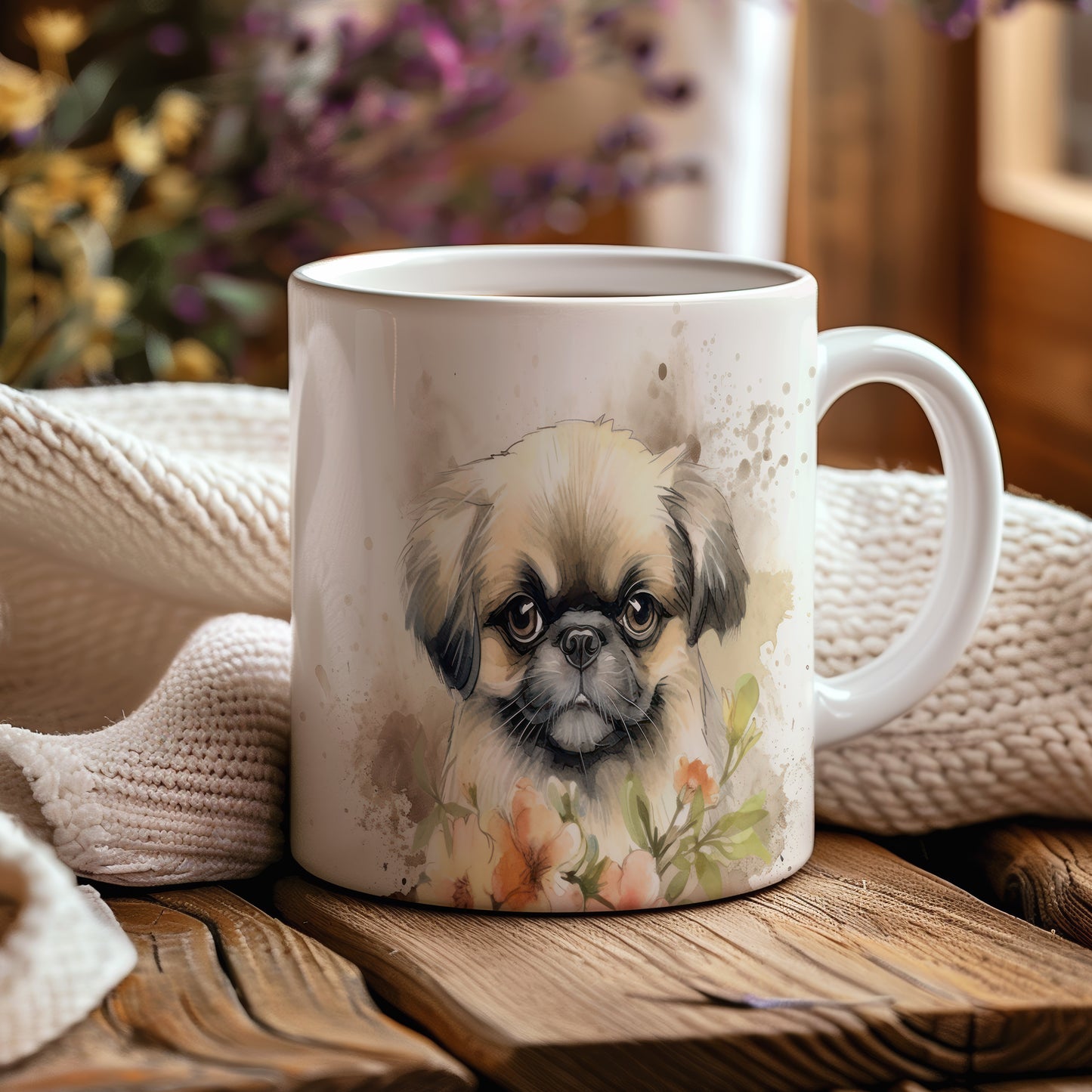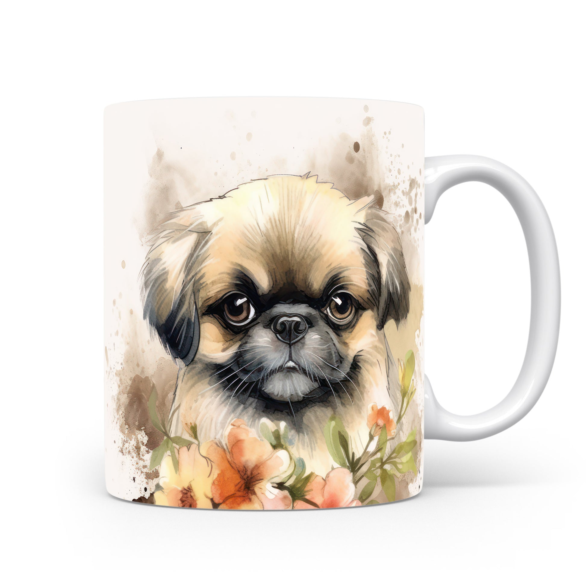 Na hrnku je zobrazen roztomilý pejsek v obklopení květin. Tento hrnek je skvělým dárkem pro milovníky zvířat a přírody. Materiál: keramika. Objem: 330 ml. Vhodné do myčky i mikrovlnky. Užívejte si svůj oblíbený nápoj s tímto veselým motivem.
