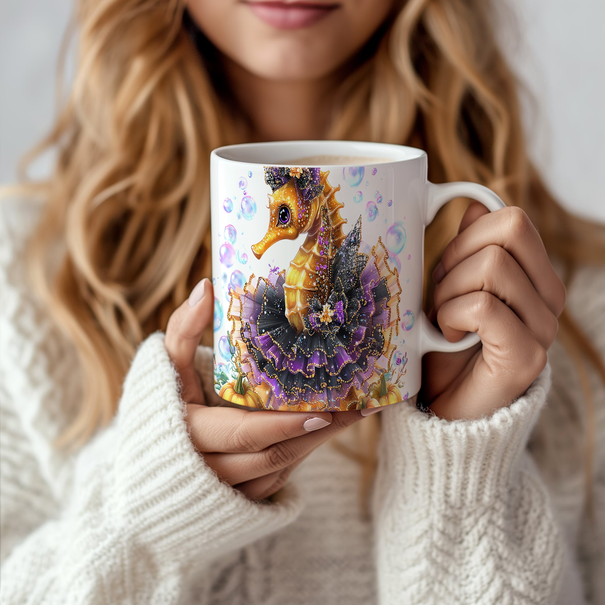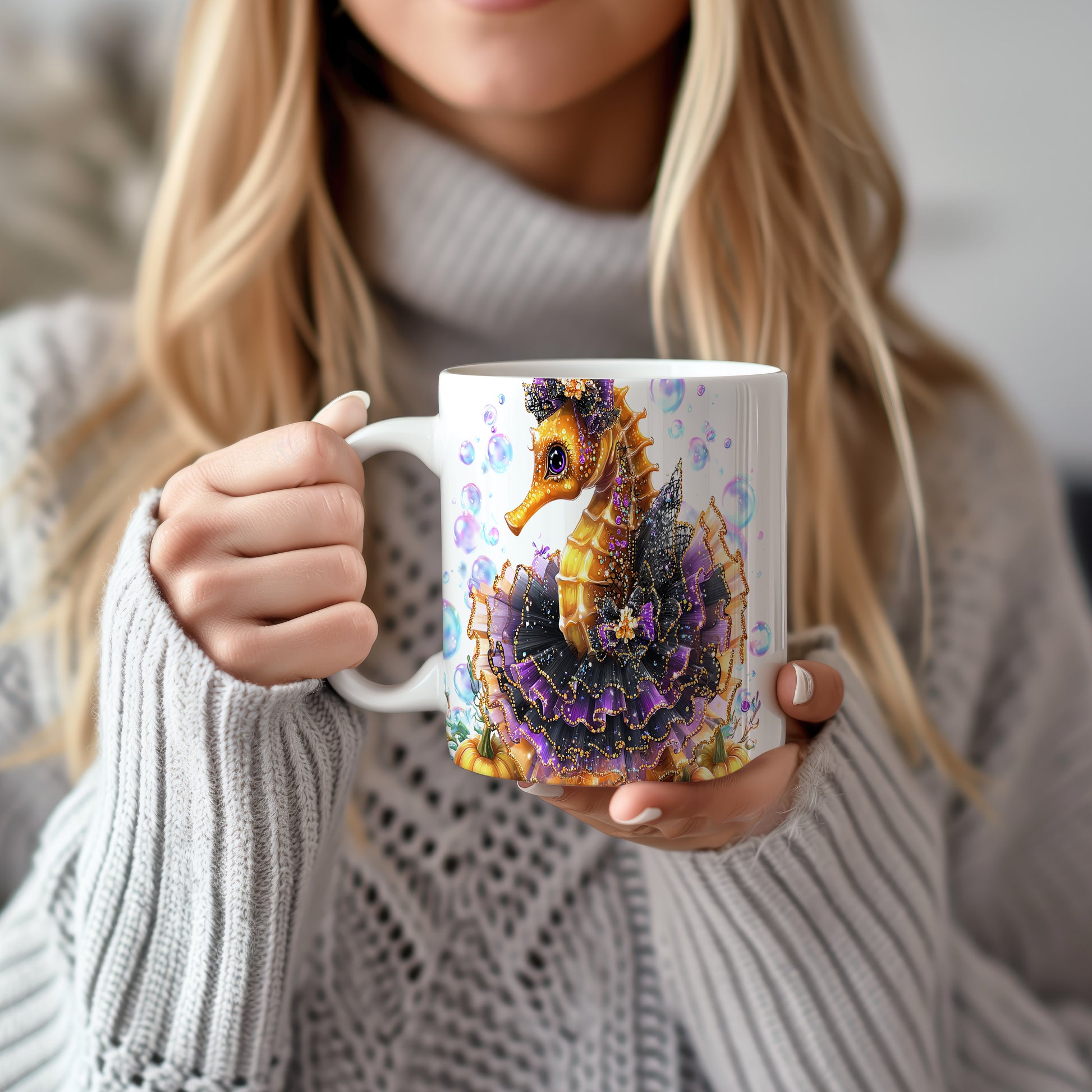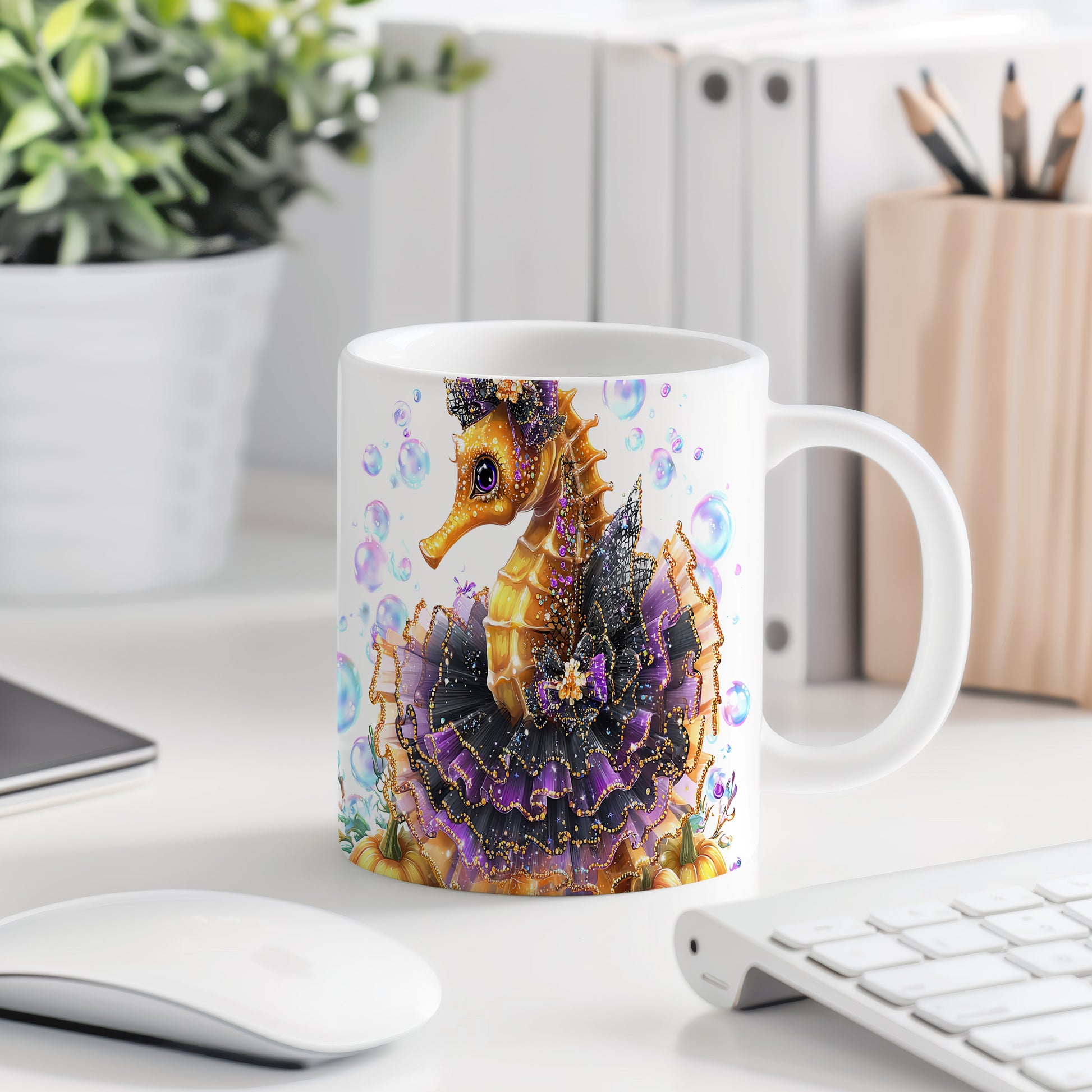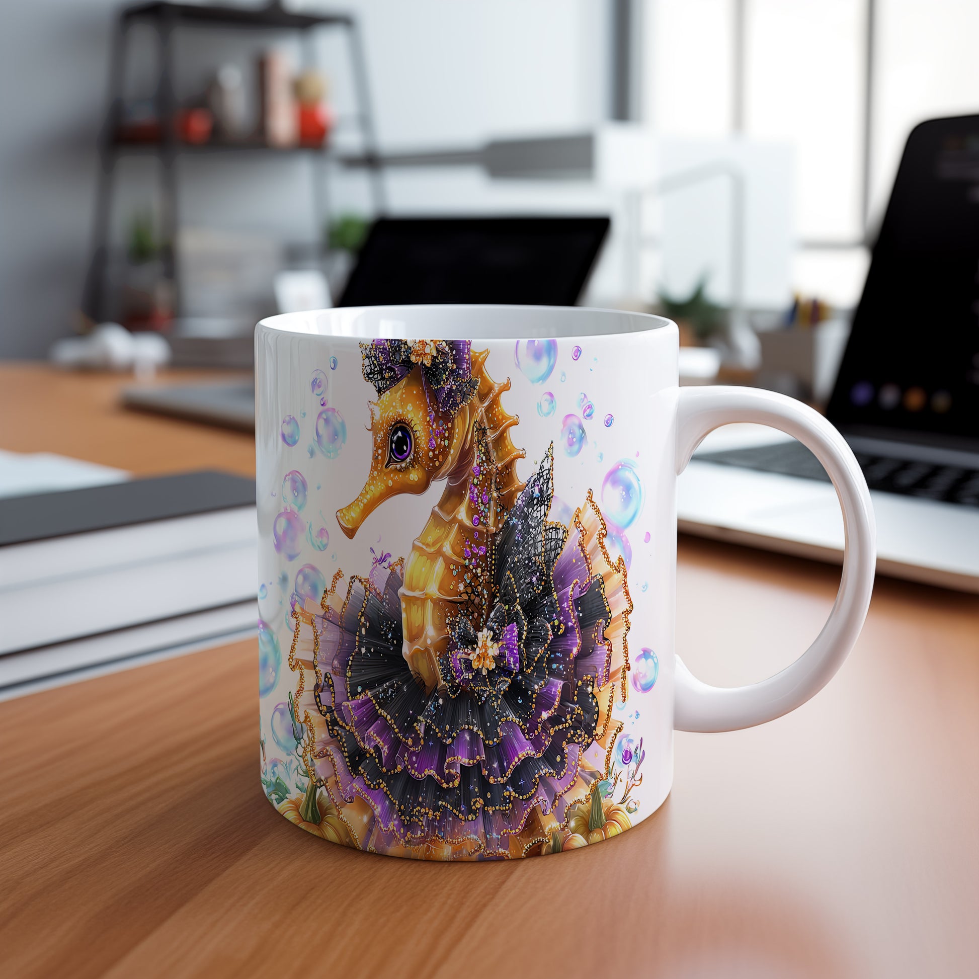 Hrnek s motivem mořského koníka v tutu sukni je roztomilý a elegantní. Tento hrnek je ideální pro milovníky mořských bytostí a skvělým dárkem pro každého, kdo ocení originální design. Materiál: keramika. Objem: 330 ml. Vhodné do myčky i mikrovlnky. Díky svému jedinečnému vzhledu přinese do vaší domácnosti radost a oživí každé pití.