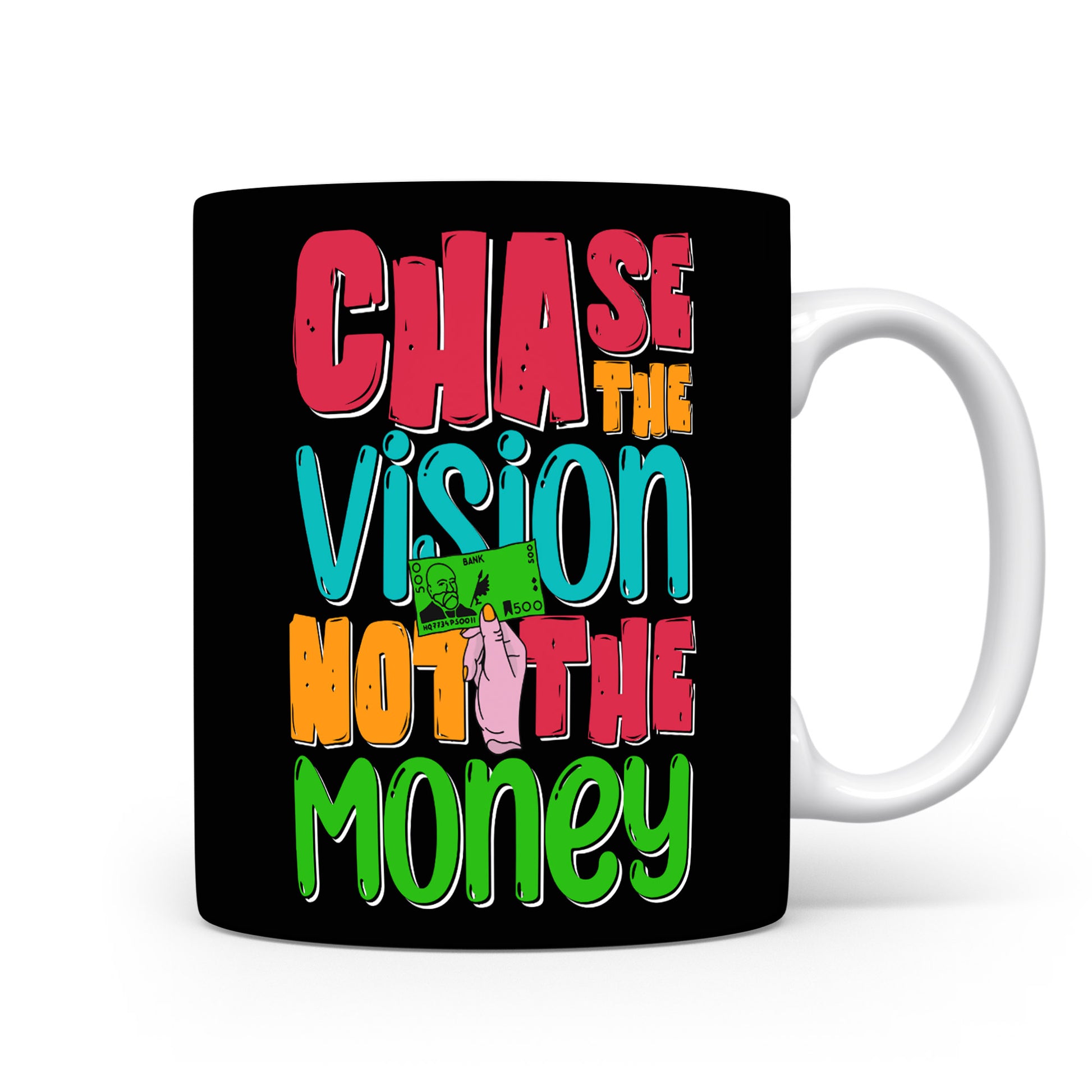 Tento hrnek s inspirativním nápisem "Chase the vision, not the money" je ideální pro ty, kteří hledají motivaci a směr.