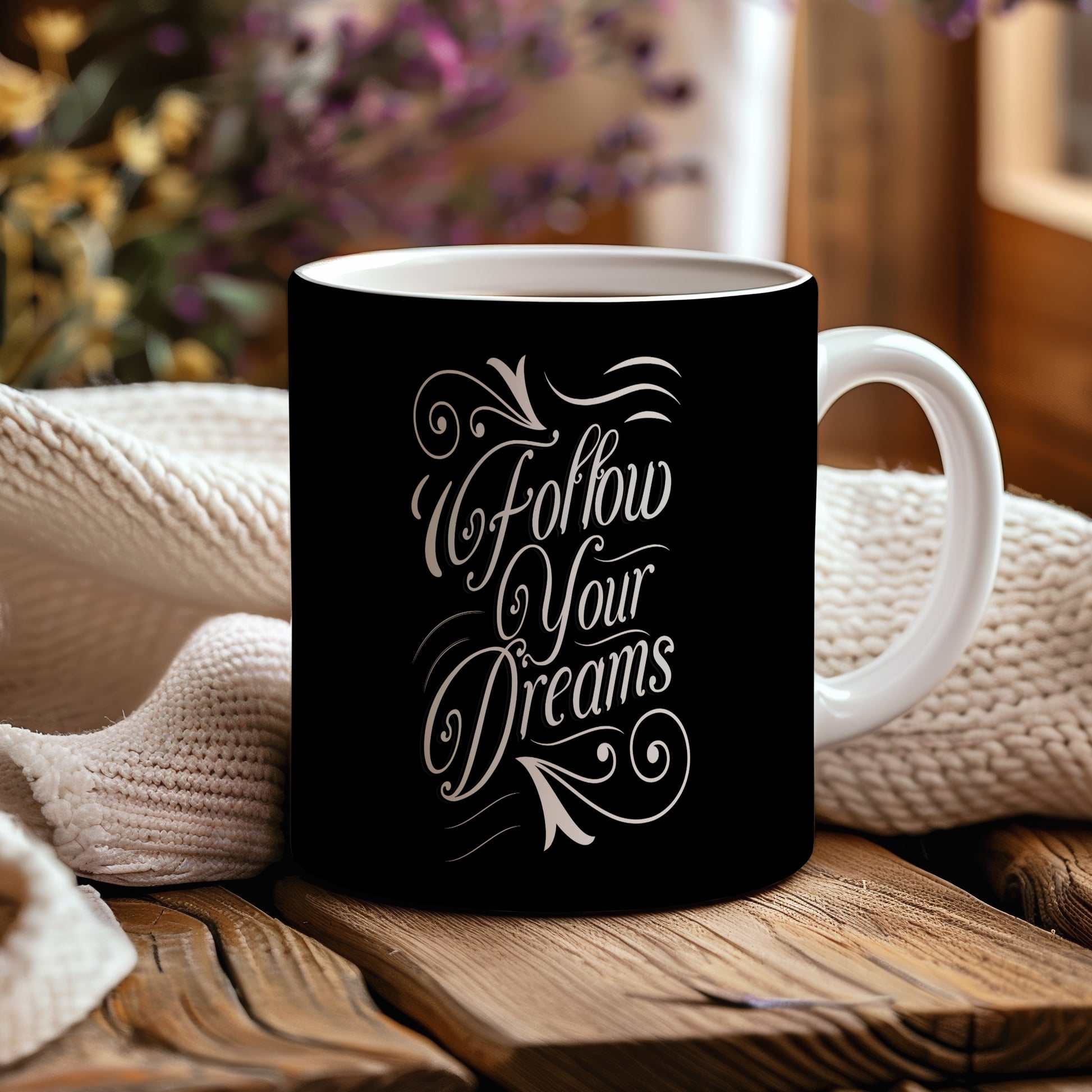 Tento stylový hrnek s nápisem "Follow Your Dreams" vám dodá inspiraci každé ráno. Ideální pro ty, kteří chtějí následovat své sny.