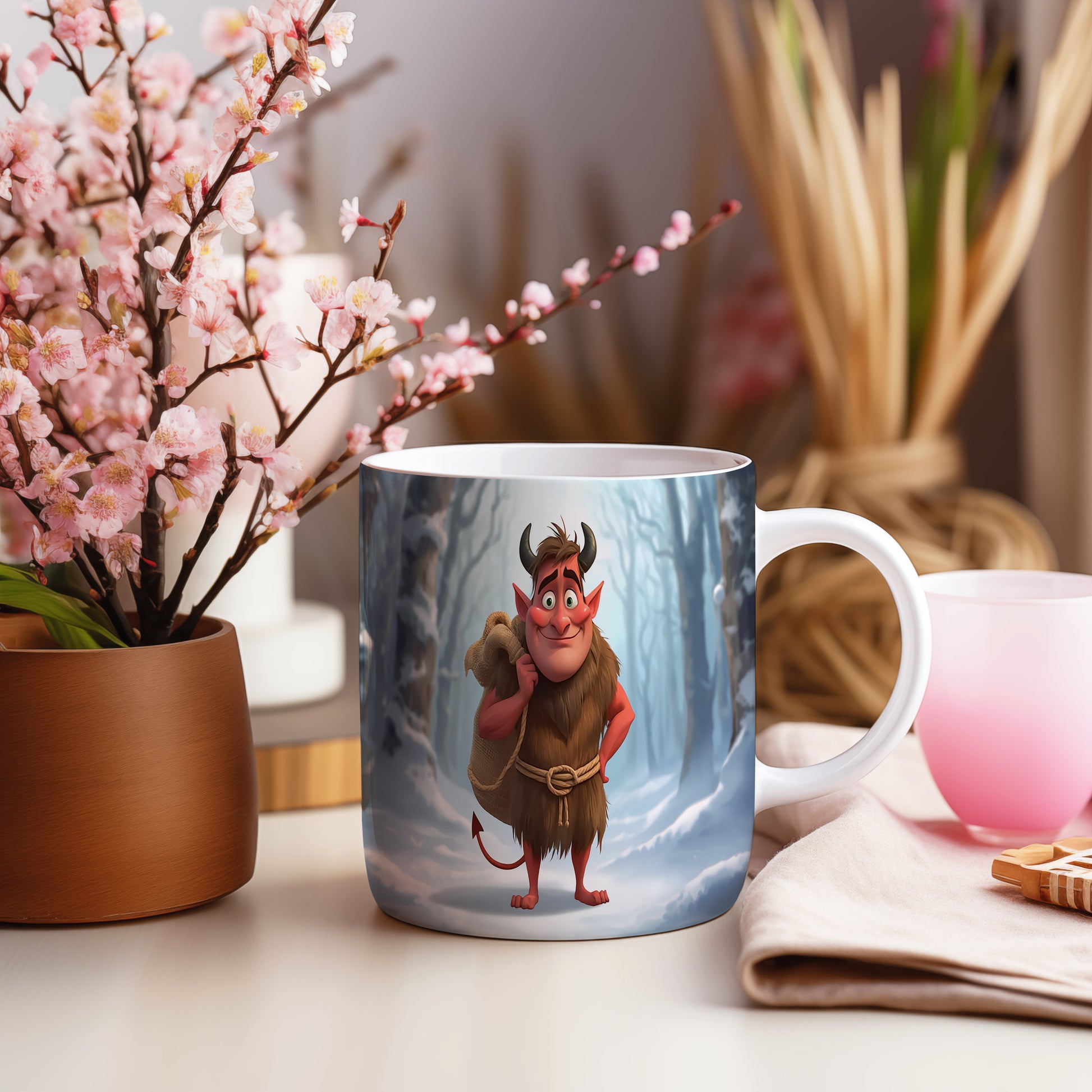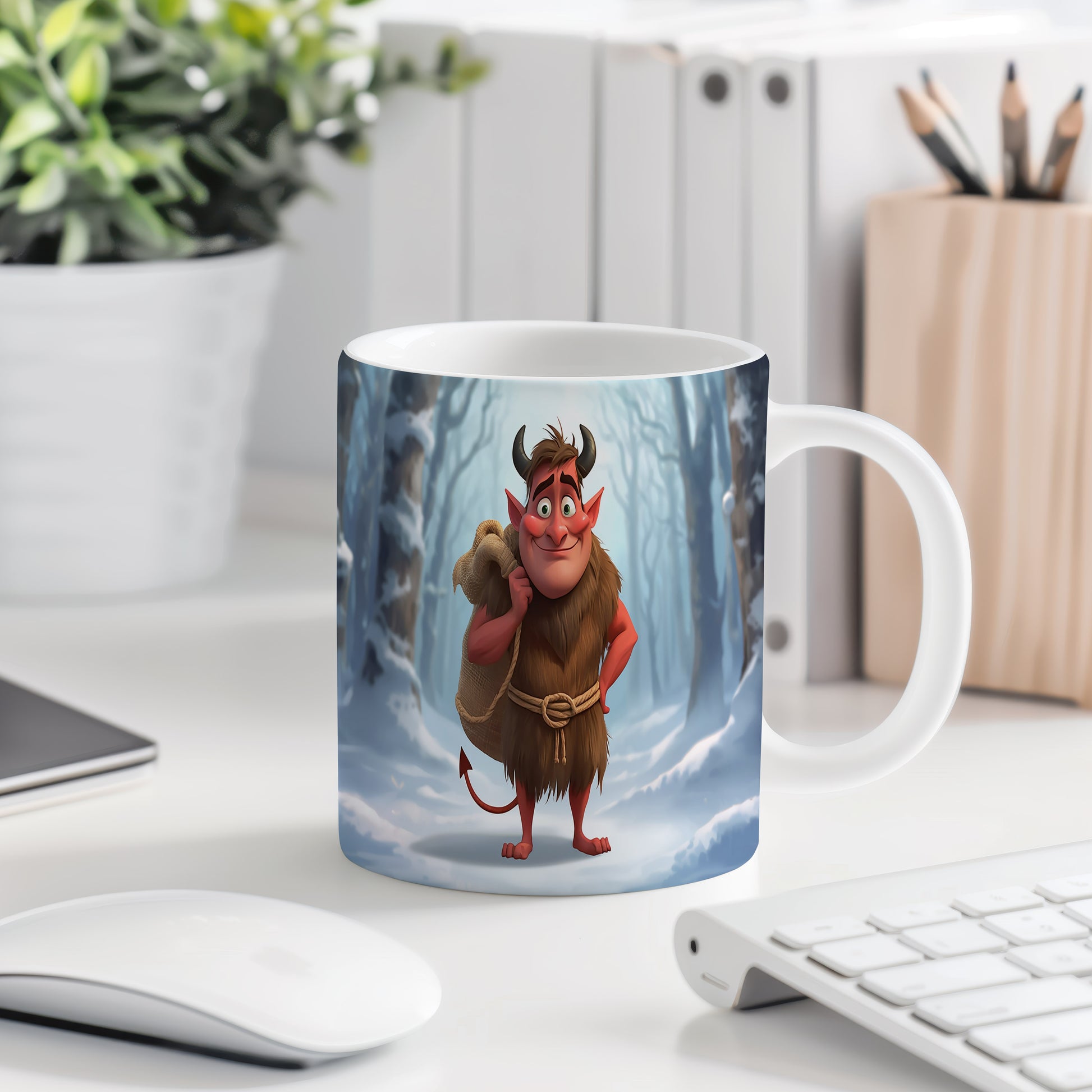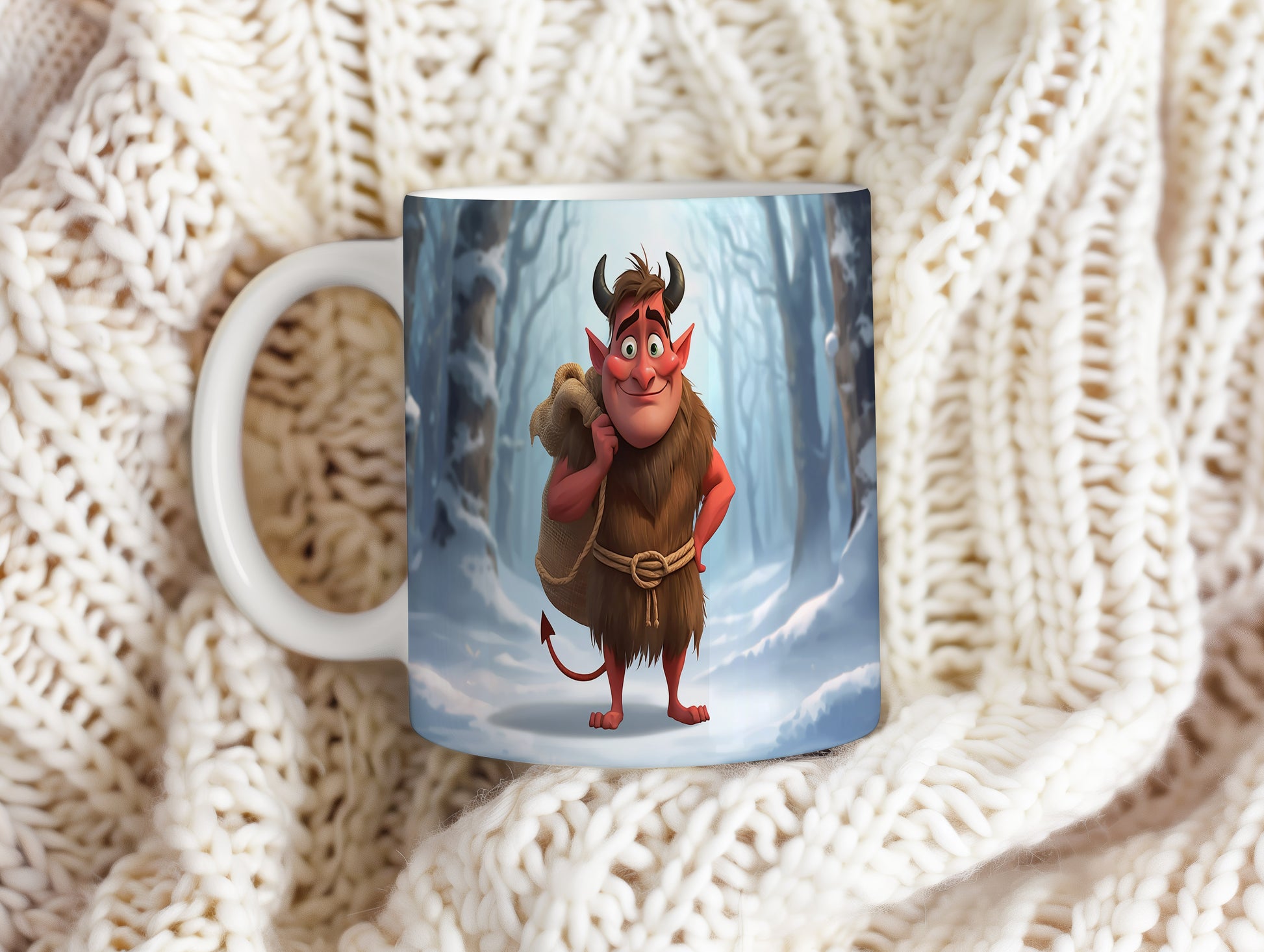 Hrnek s motivem čerta – zimní les