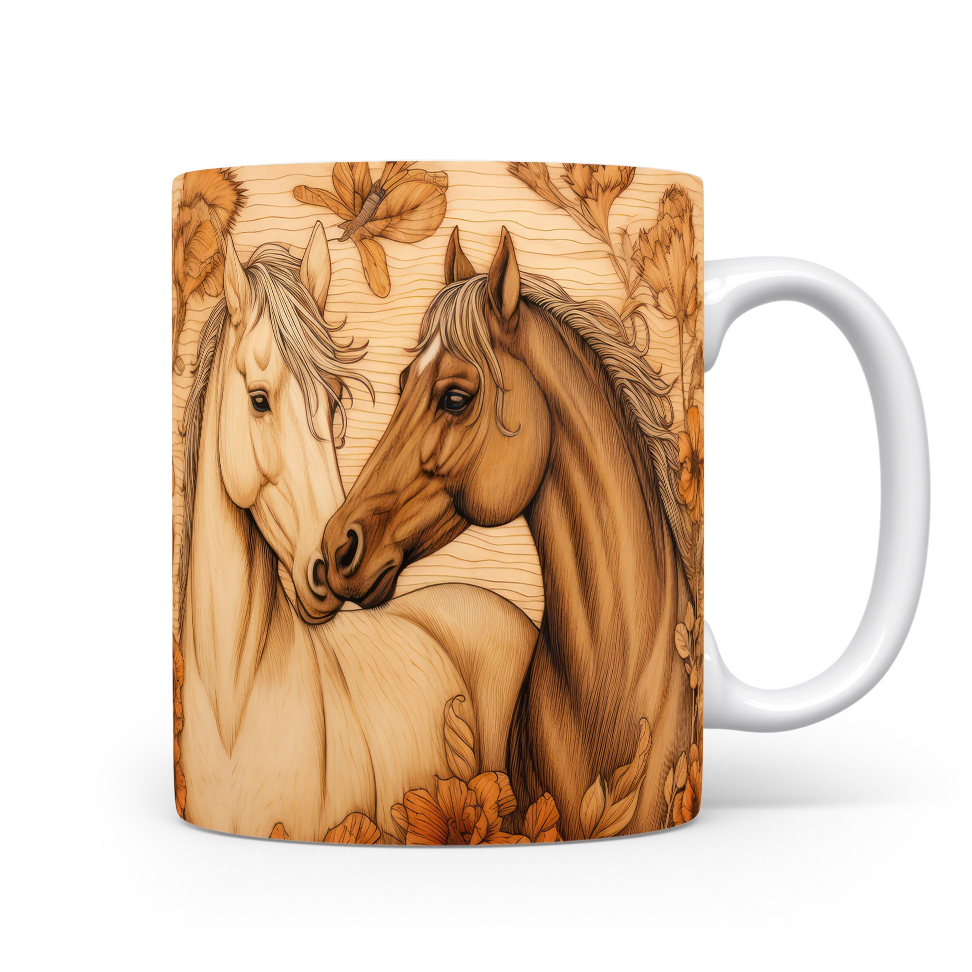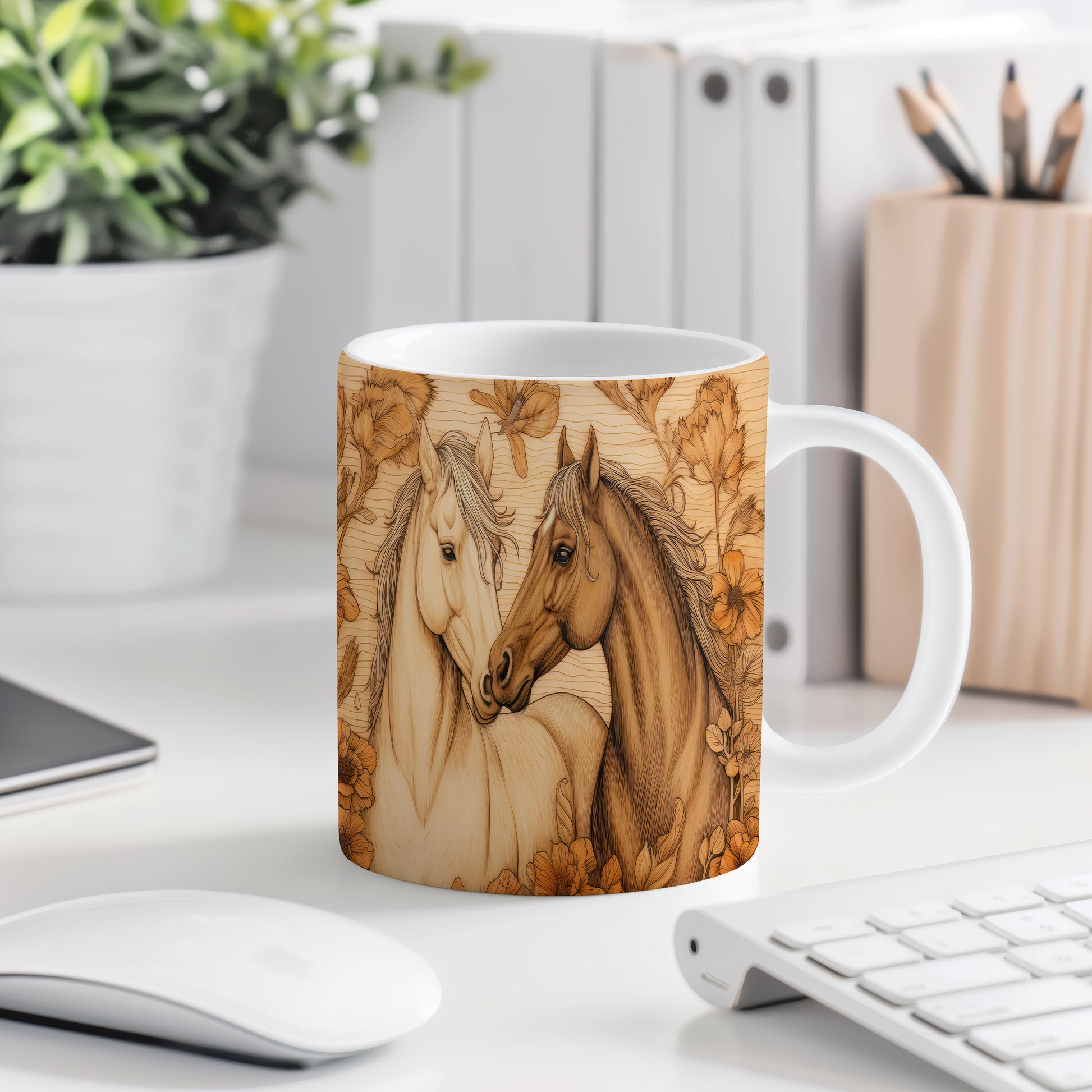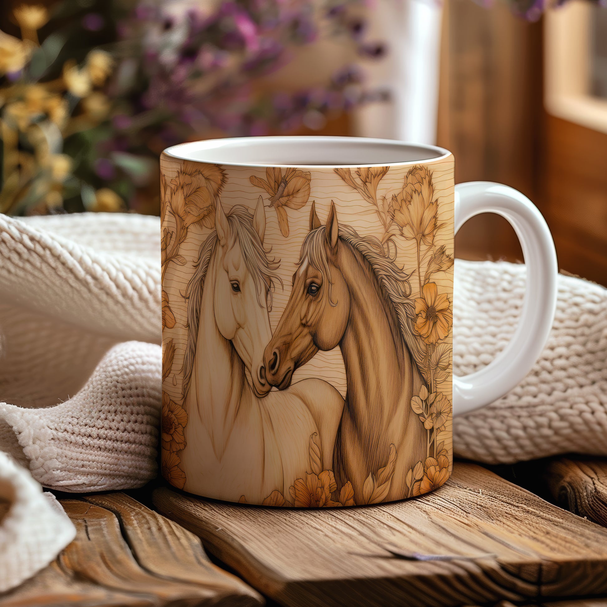 Tento elegantní hrnek zobrazuje detailní portréty dvou koní, obklopených květinami. Je ideální pro milovníky koní a přírody, skvělý tip na dárek pro každého, kdo ocení krásu zvířat. Materiál: keramika. Objem: 330 ml. Vhodné do myčky i mikrovlnky. Používání tohoto hrnku přináší radost z každého doušku.