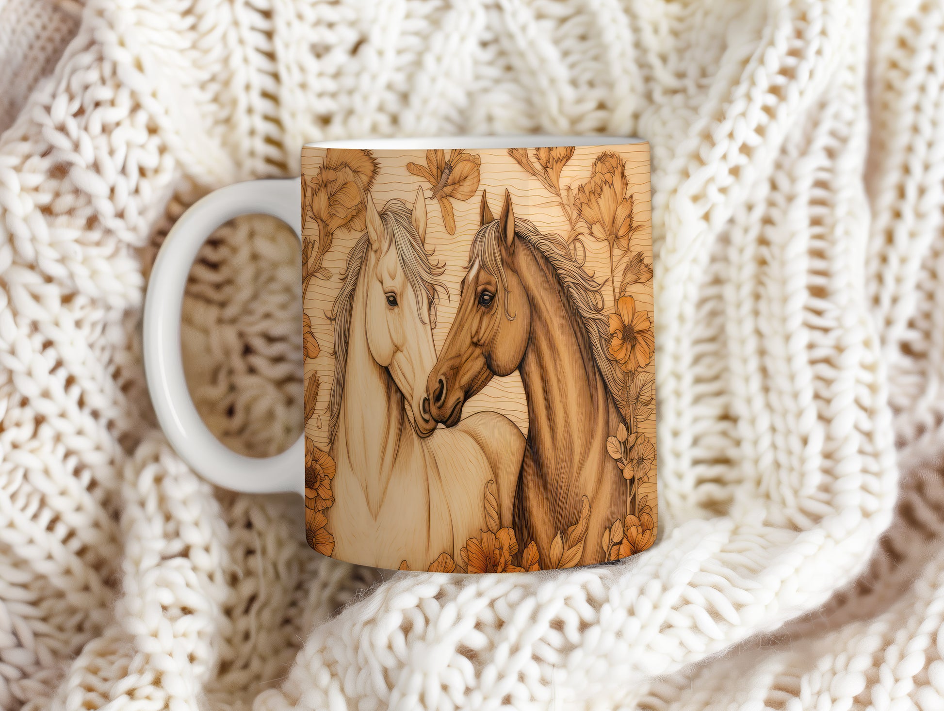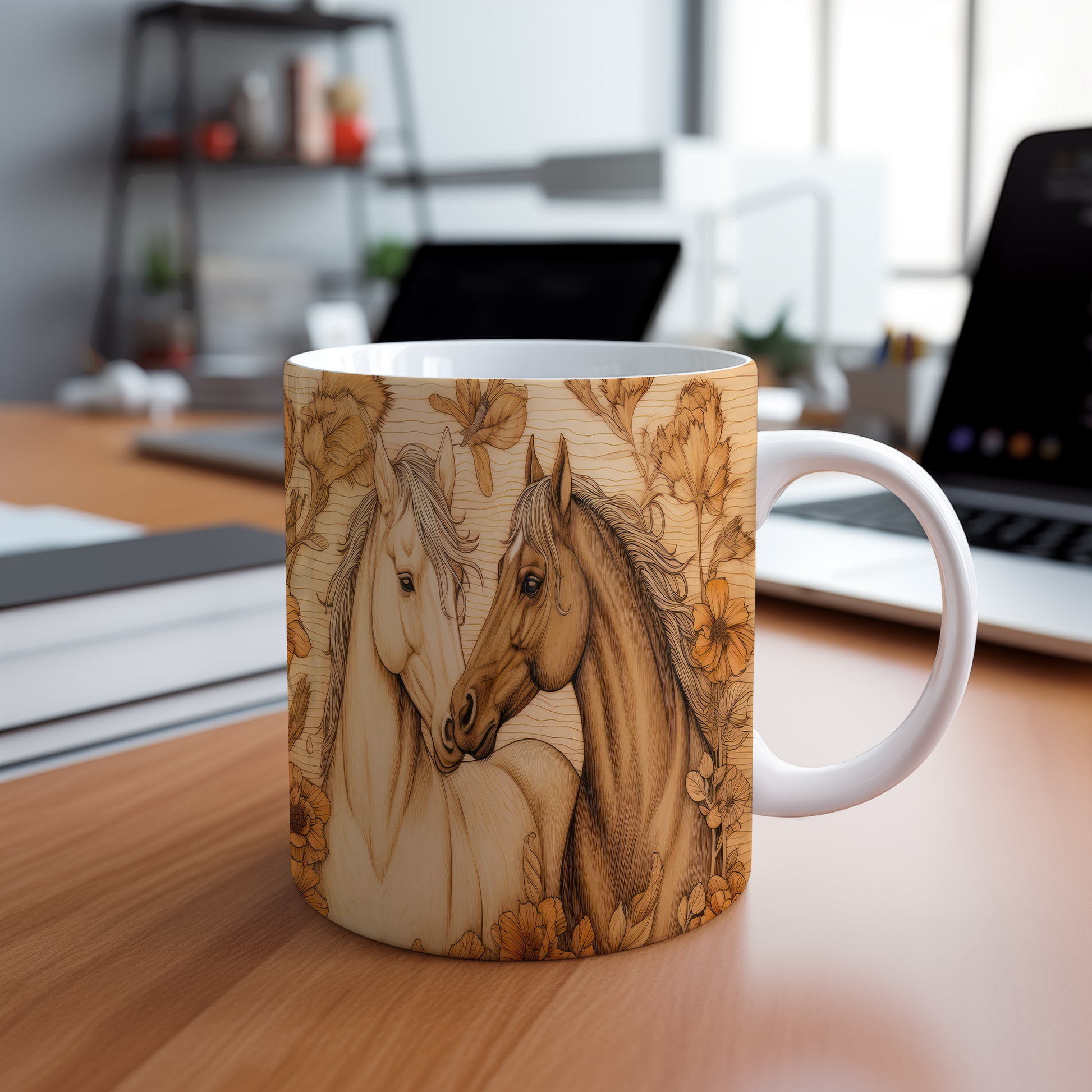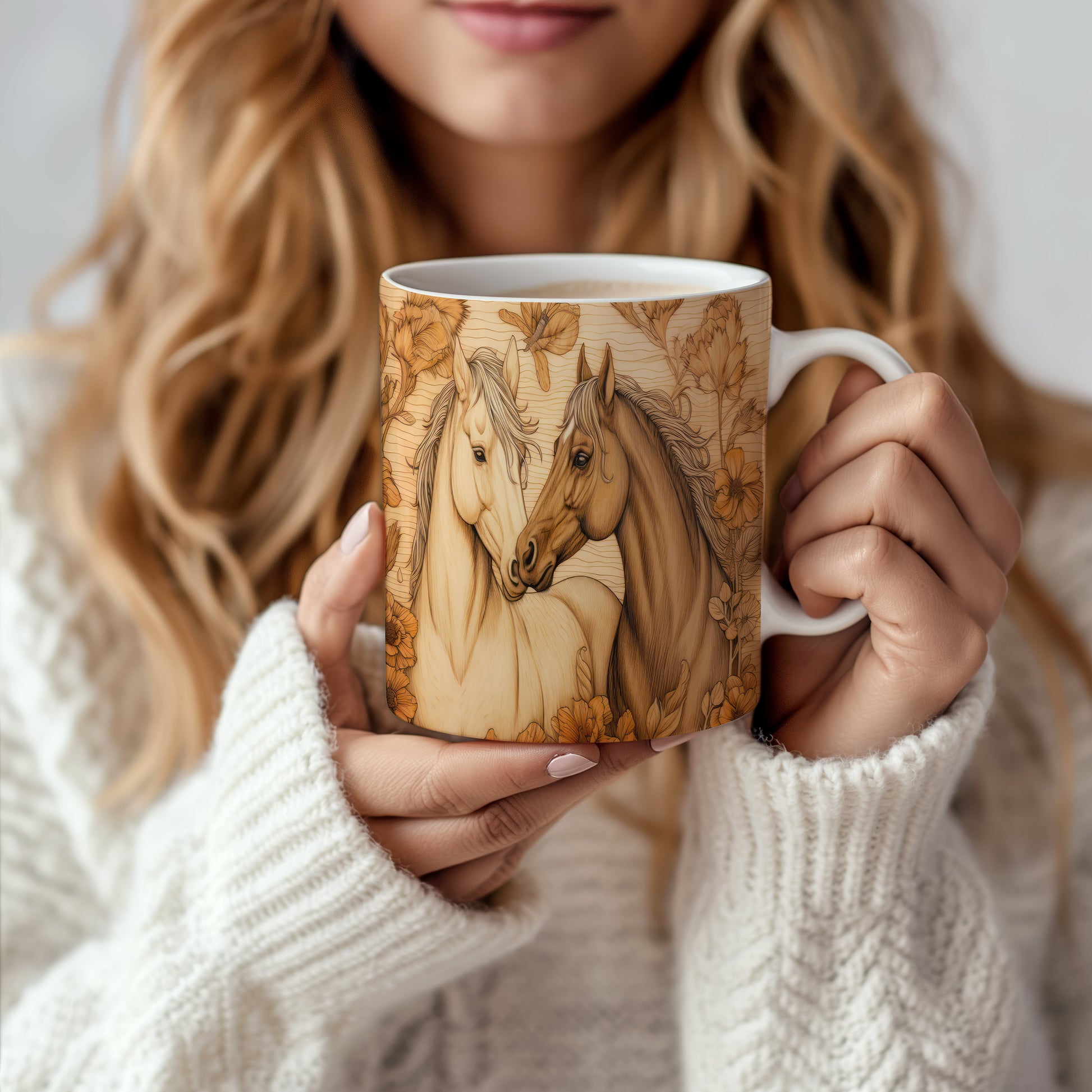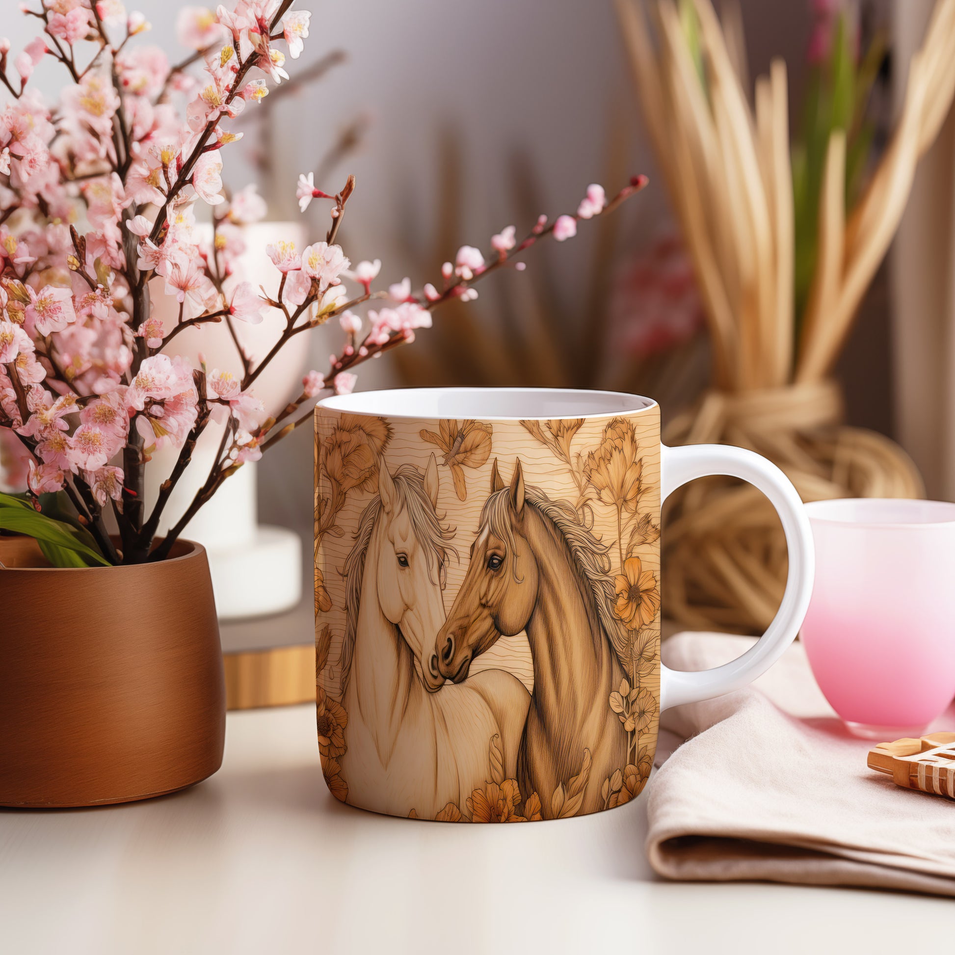 Tento elegantní hrnek zobrazuje detailní portréty dvou koní, obklopených květinami. Je ideální pro milovníky koní a přírody, skvělý tip na dárek pro každého, kdo ocení krásu zvířat. Materiál: keramika. Objem: 330 ml. Vhodné do myčky i mikrovlnky. Používání tohoto hrnku přináší radost z každého doušku.