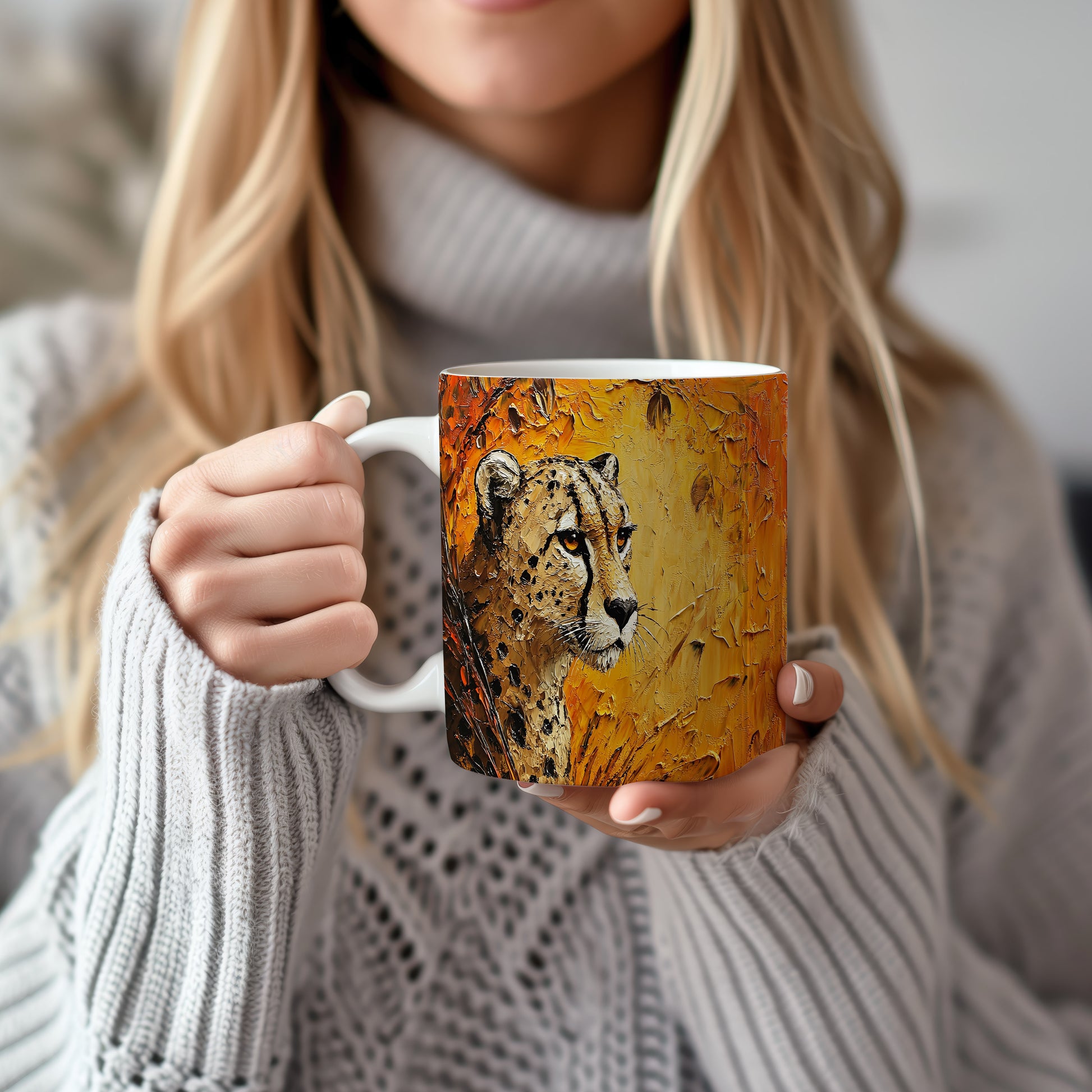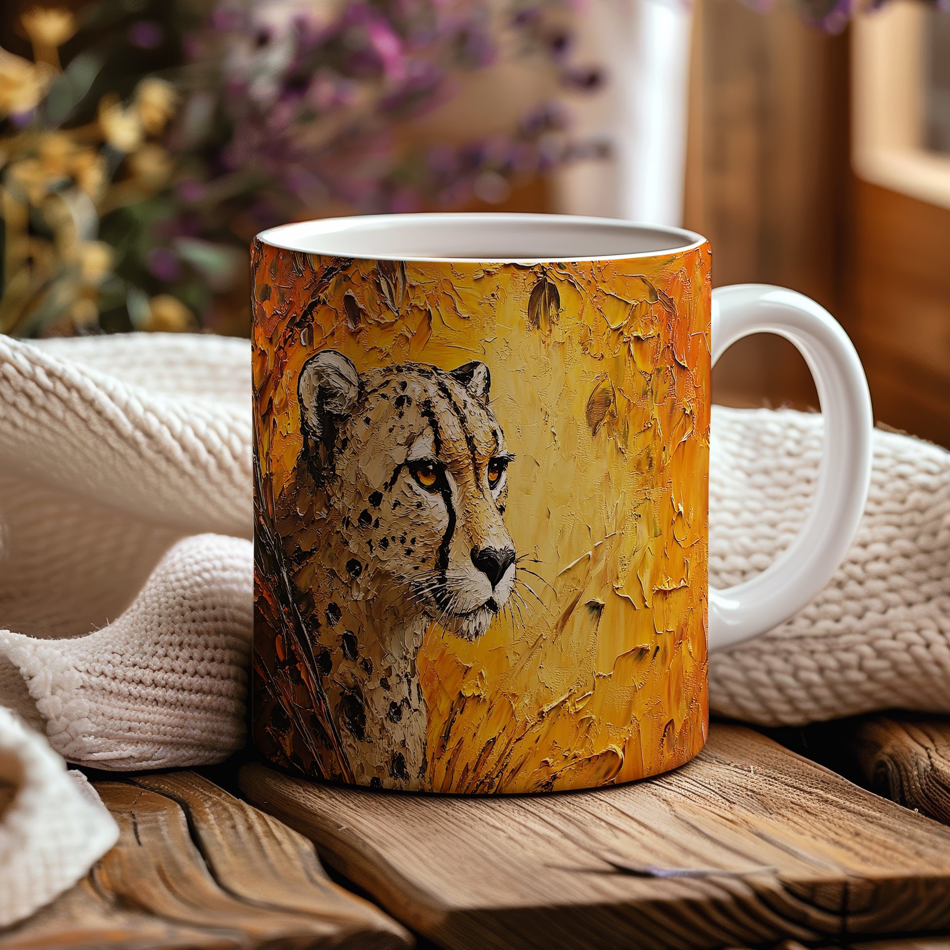 Hrnek s motivem geparda v přírodních barvách přináší do vašeho domova kousek přírody. Je ideální pro milovníky zvířat a přírody, skvělý tip na dárek pro přátele nebo rodinu. Materiál: keramika. Objem: 330 ml. Vhodné do myčky i mikrovlnky. Tento hrnek vám zpříjemní každé ráno a dodá vám energii na celý den.