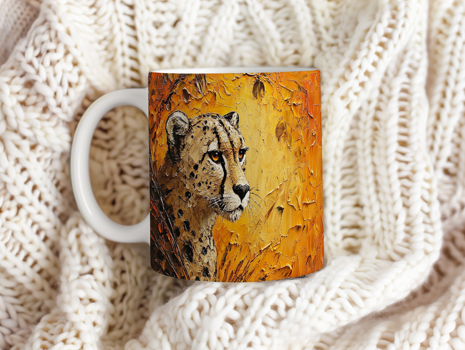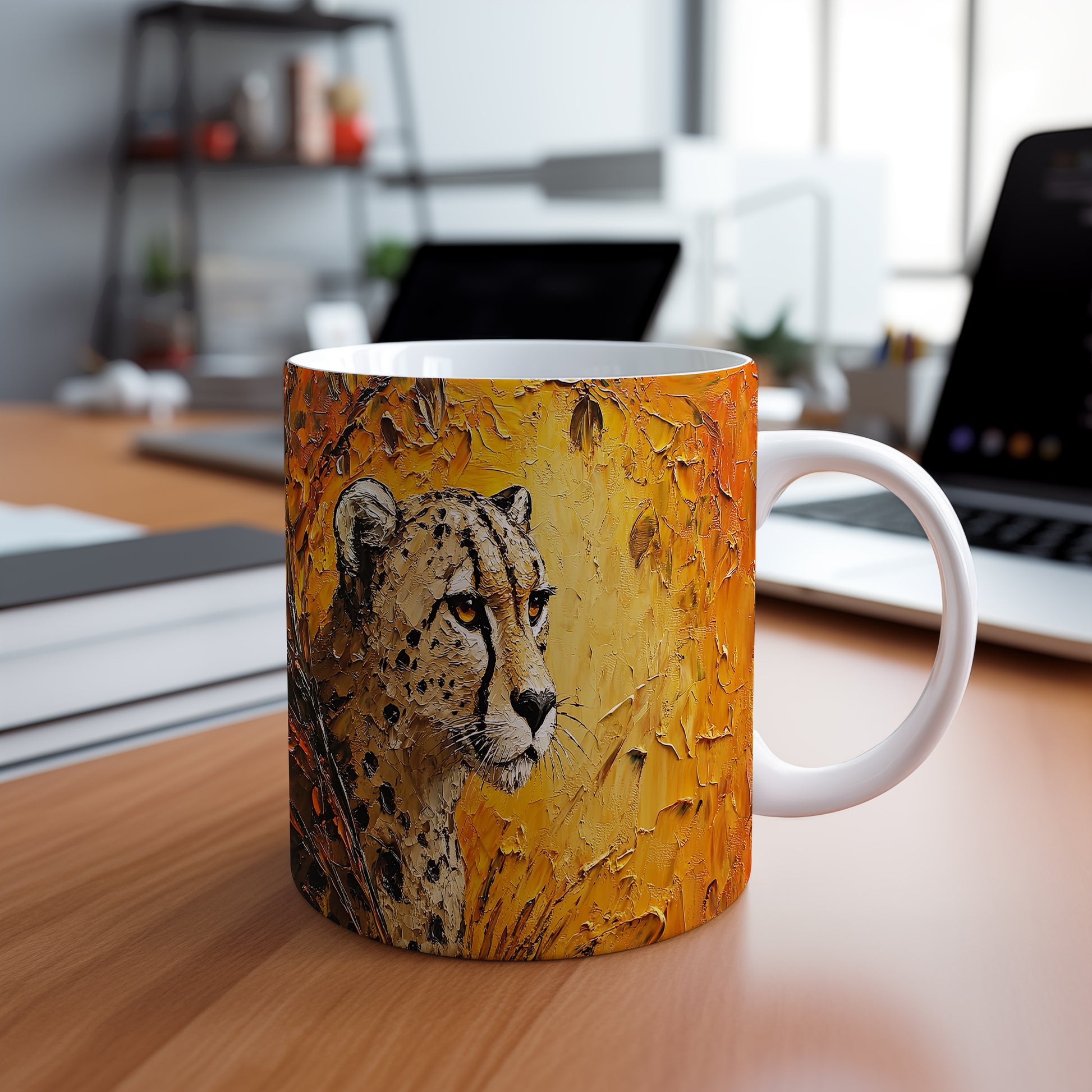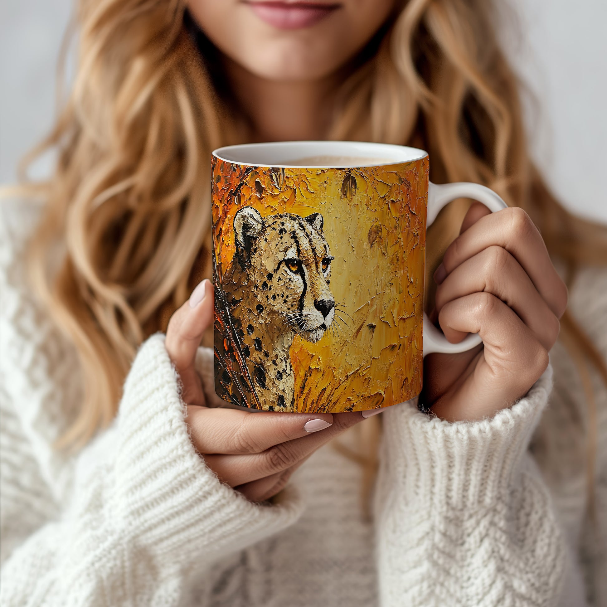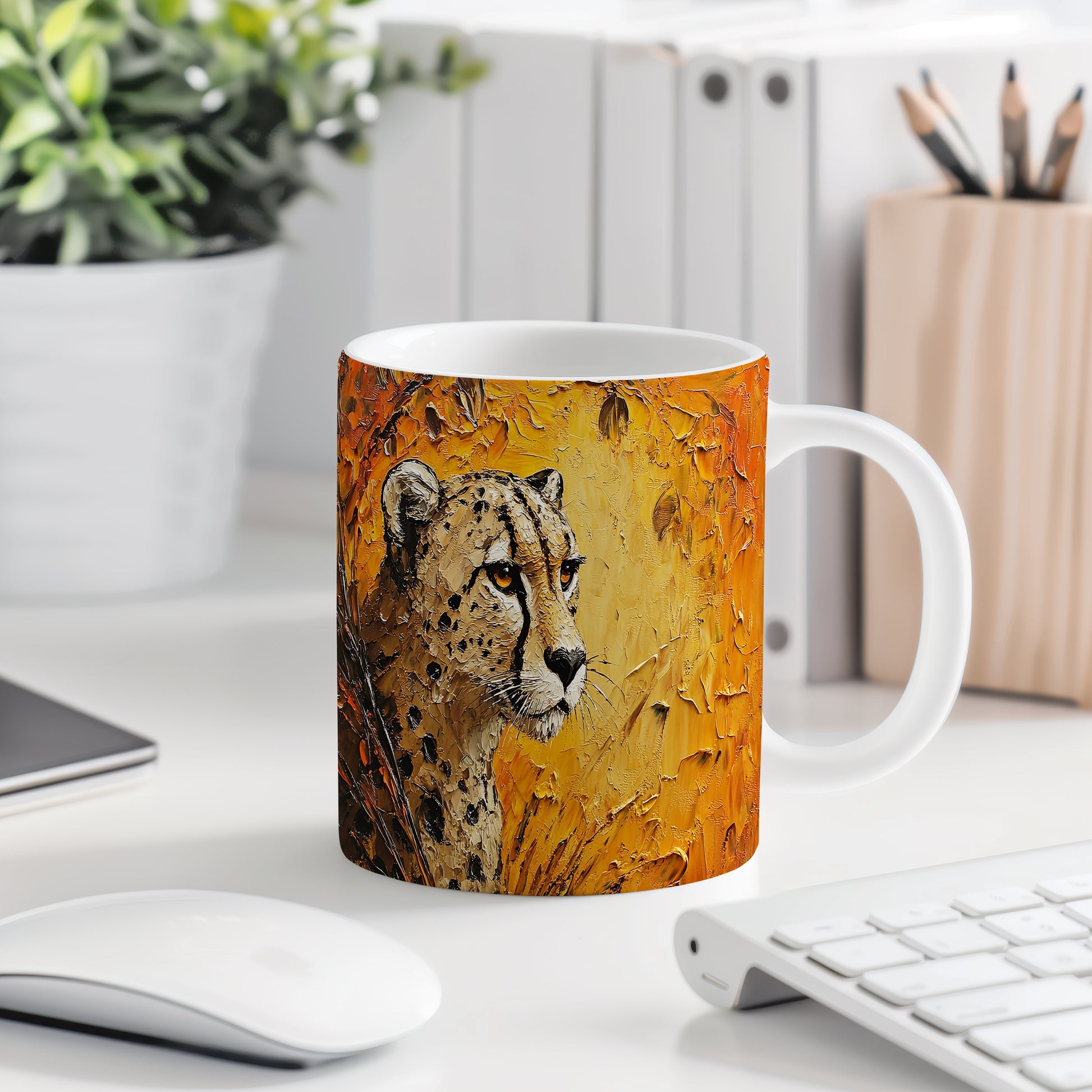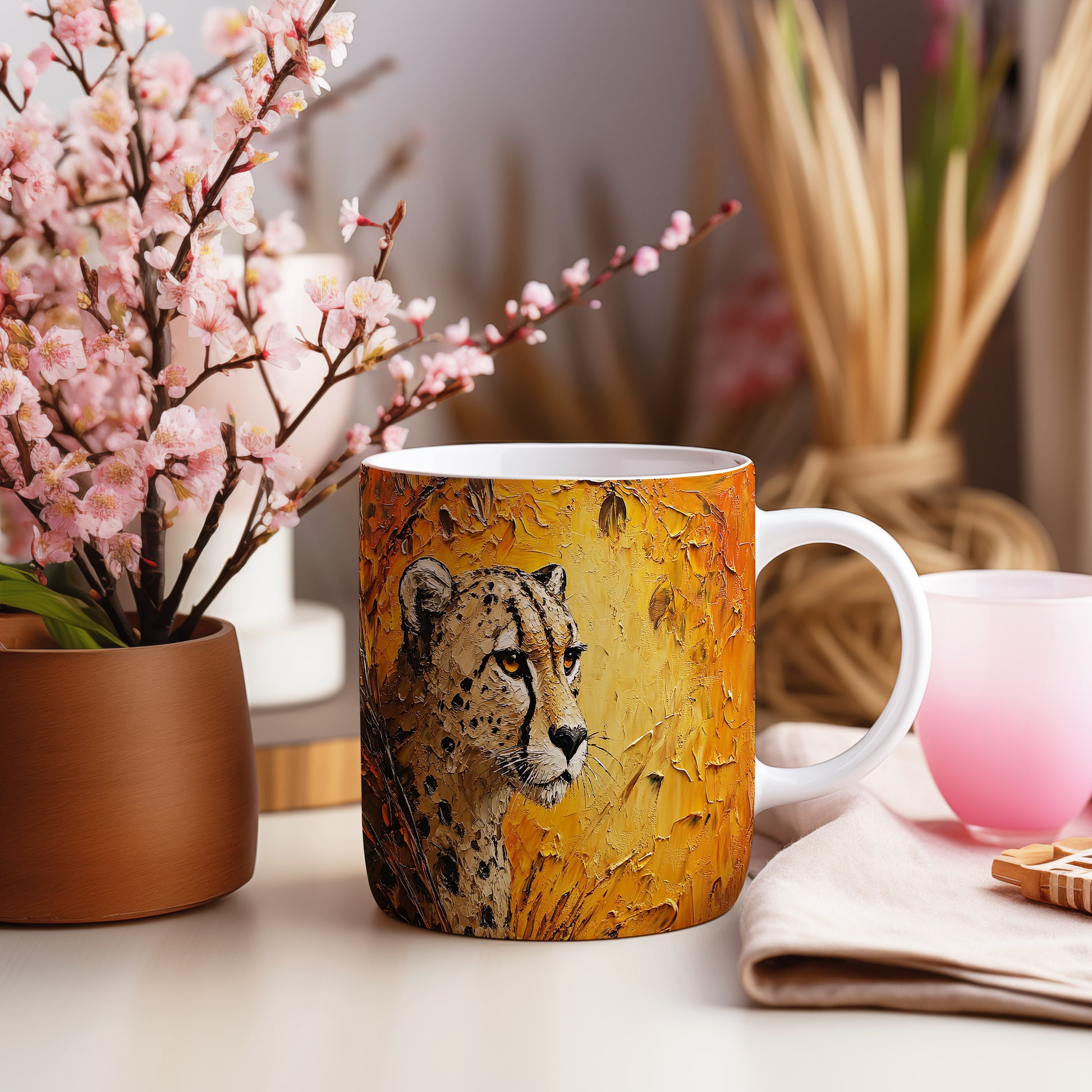 Hrnek s motivem geparda v přírodních barvách