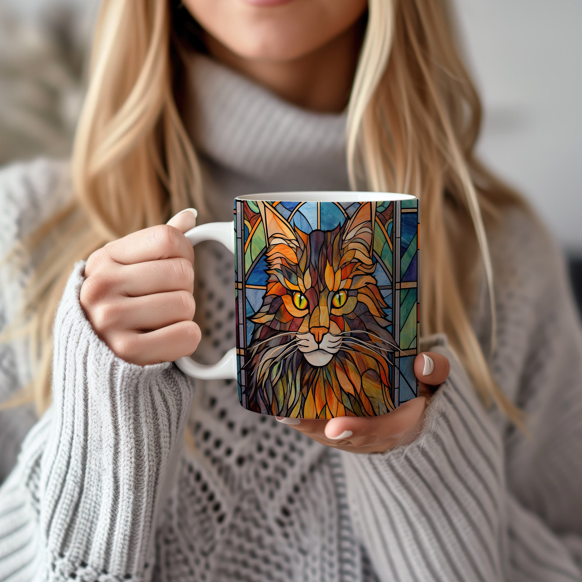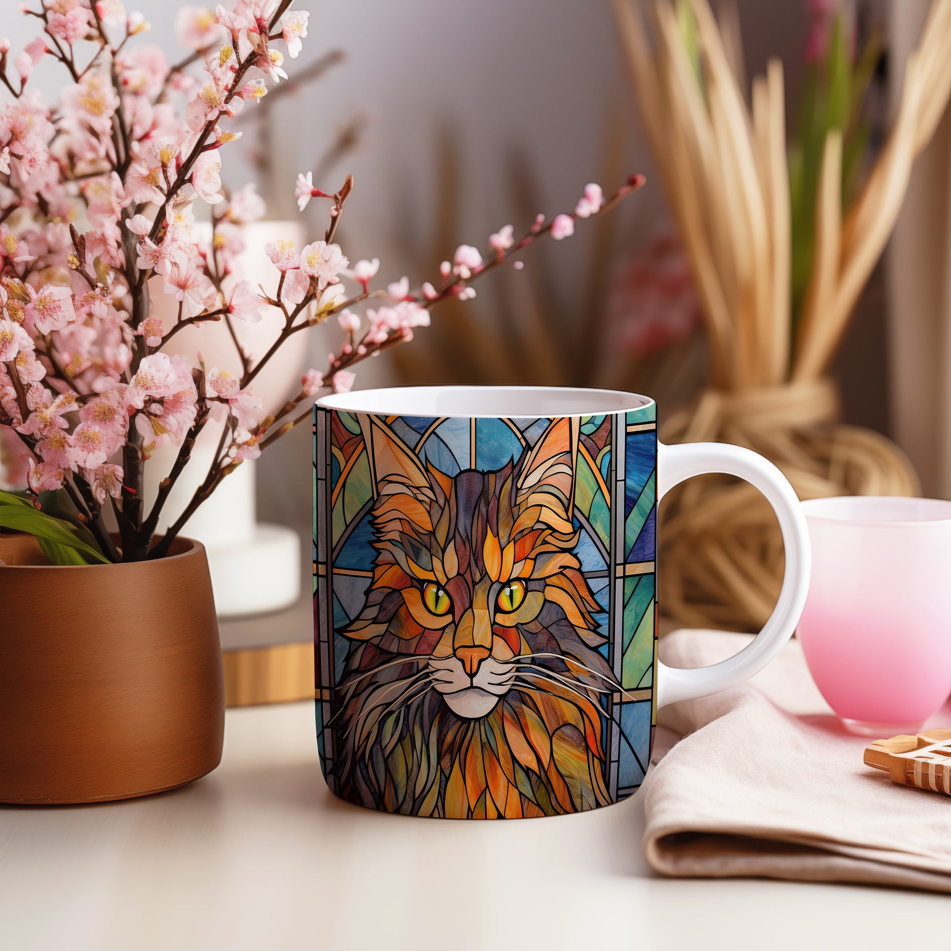 Hrnek s stylizovaným motivem kočky v podobě barevného vitrážového skla je skvělým doplňkem pro milovníky koček a originálního designu. Tento hrnek je ideální jako dárek pro přátele nebo rodinu, kteří ocení jedinečné kousky. Materiál: keramika. Objem: 330 ml. Vhodné do myčky i mikrovlnky. Používání tohoto hrnku přináší radost z každého doušku a oživí váš každodenní rituál pití.
