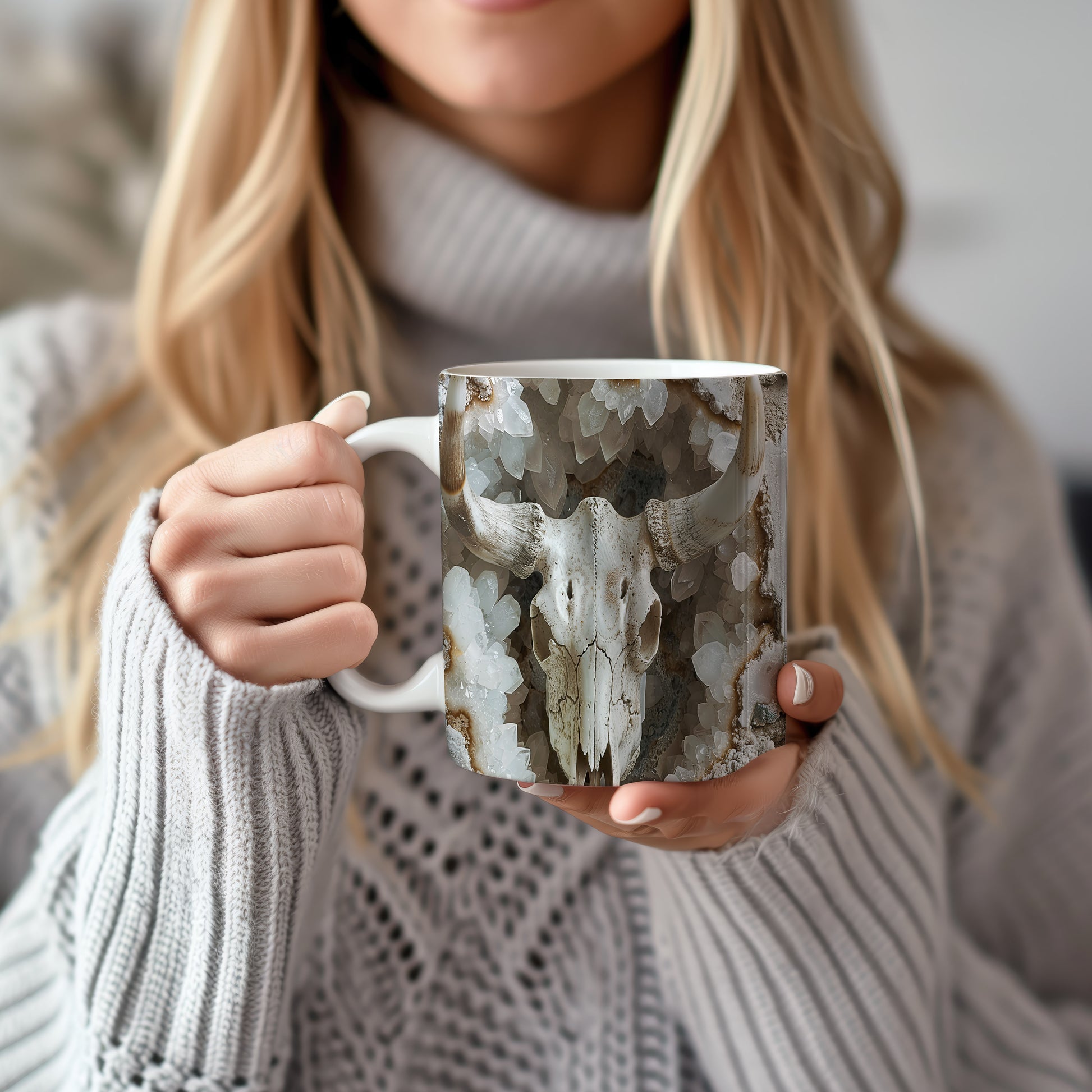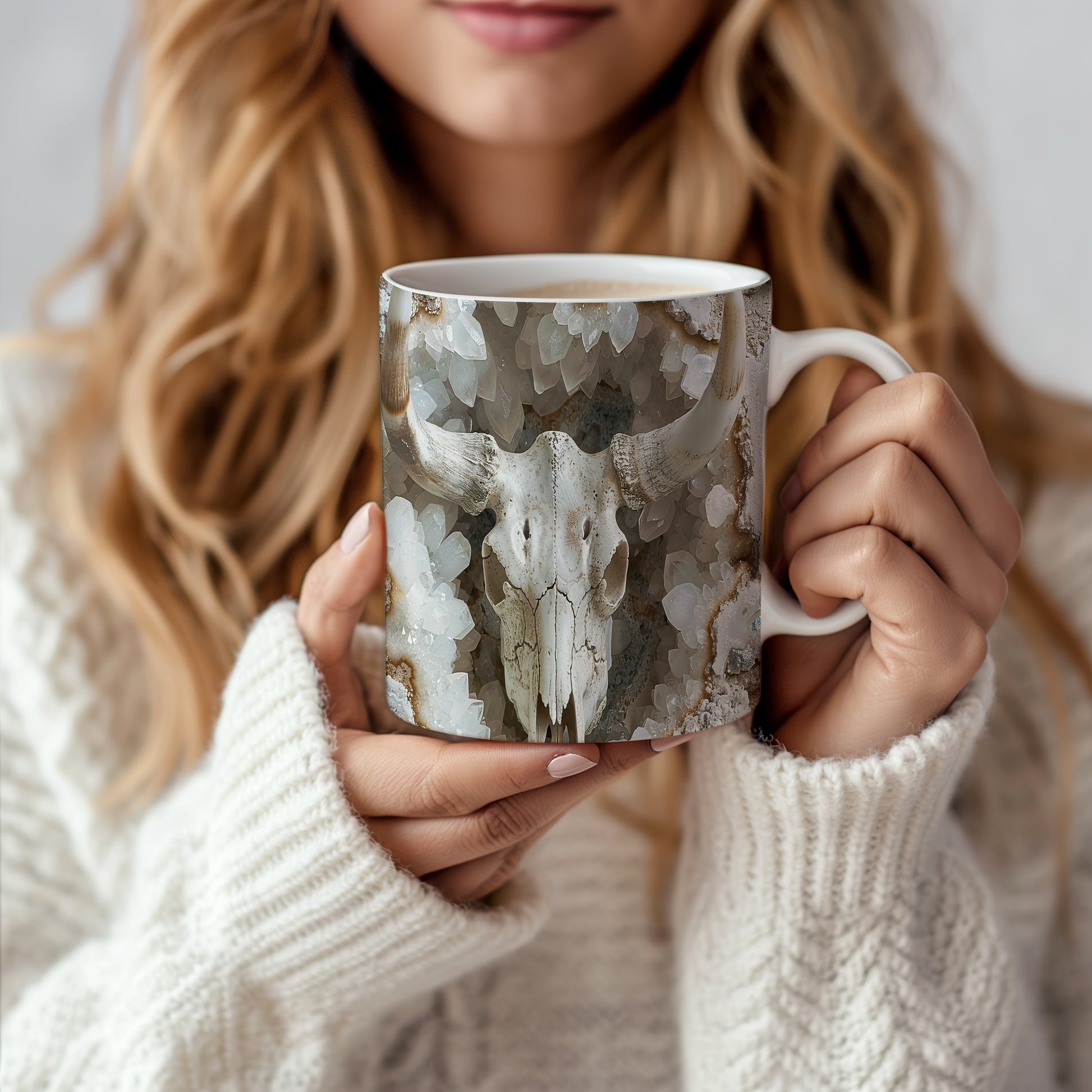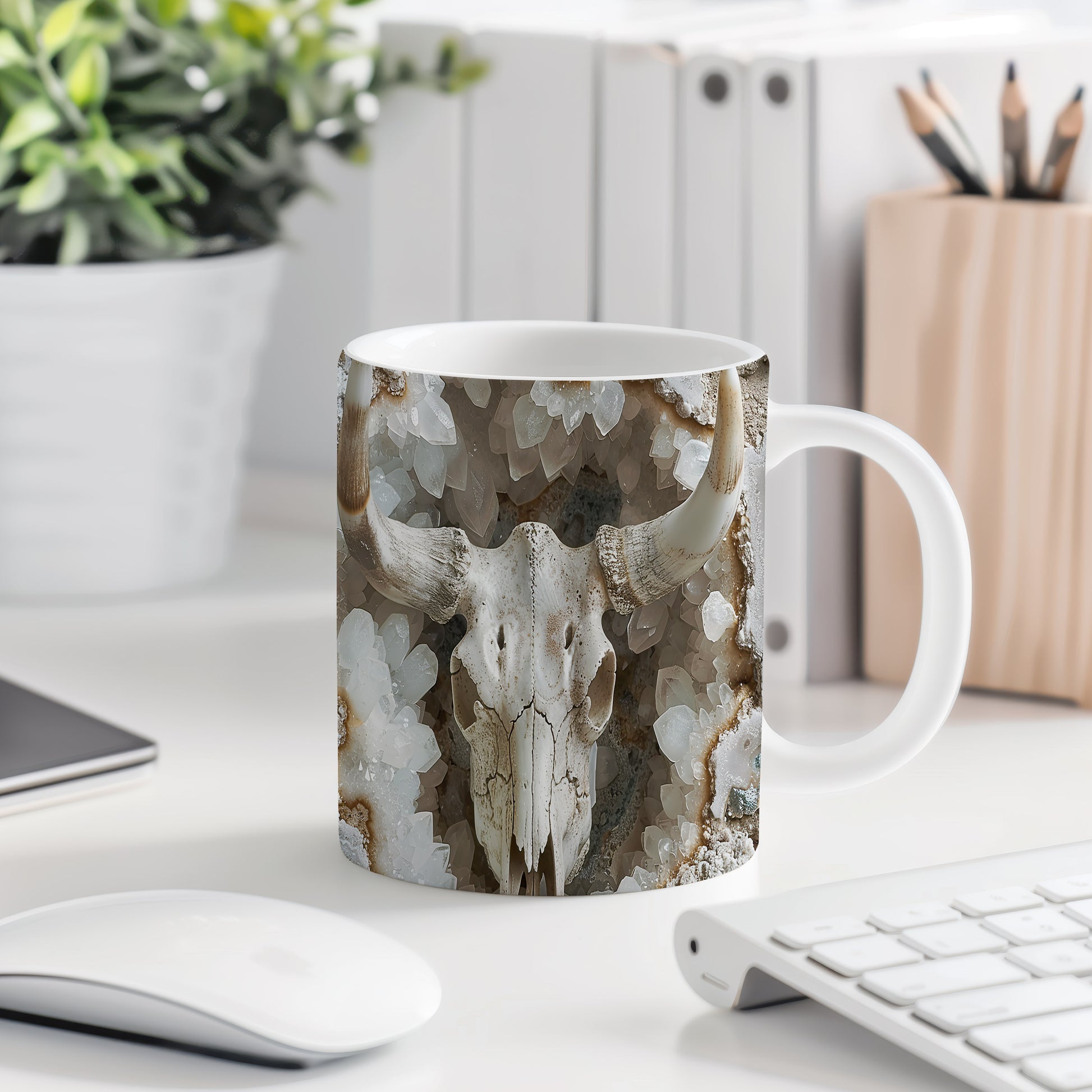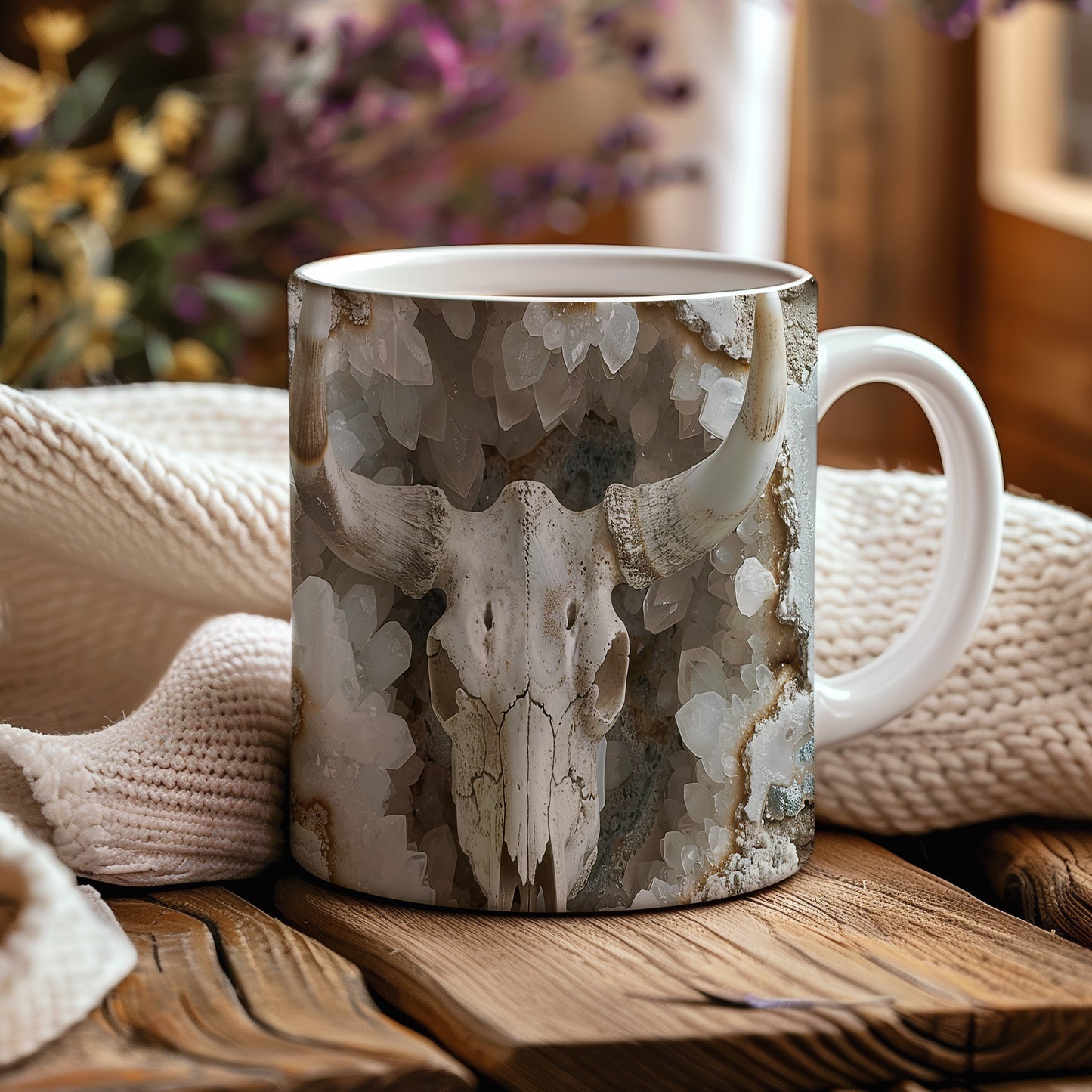 Tento hrnek s motivem kosti býka a krystalů je skvělým kouskem pro všechny milovníky přírody a originálních designů. Je ideální jako dárek pro přátele nebo rodinu, kteří ocení jedinečné a stylové předměty. Materiál: keramika. Objem: 330 ml. Vhodné do myčky i mikrovlnky. Používáním tohoto hrnku si užijete nejen skvělý vzhled, ale i praktické vlastnosti.