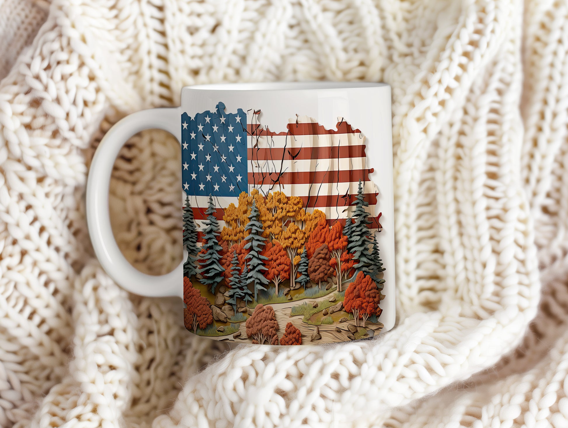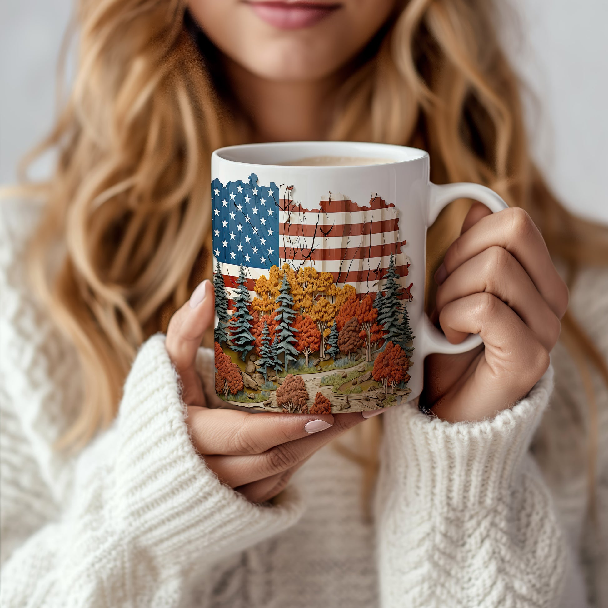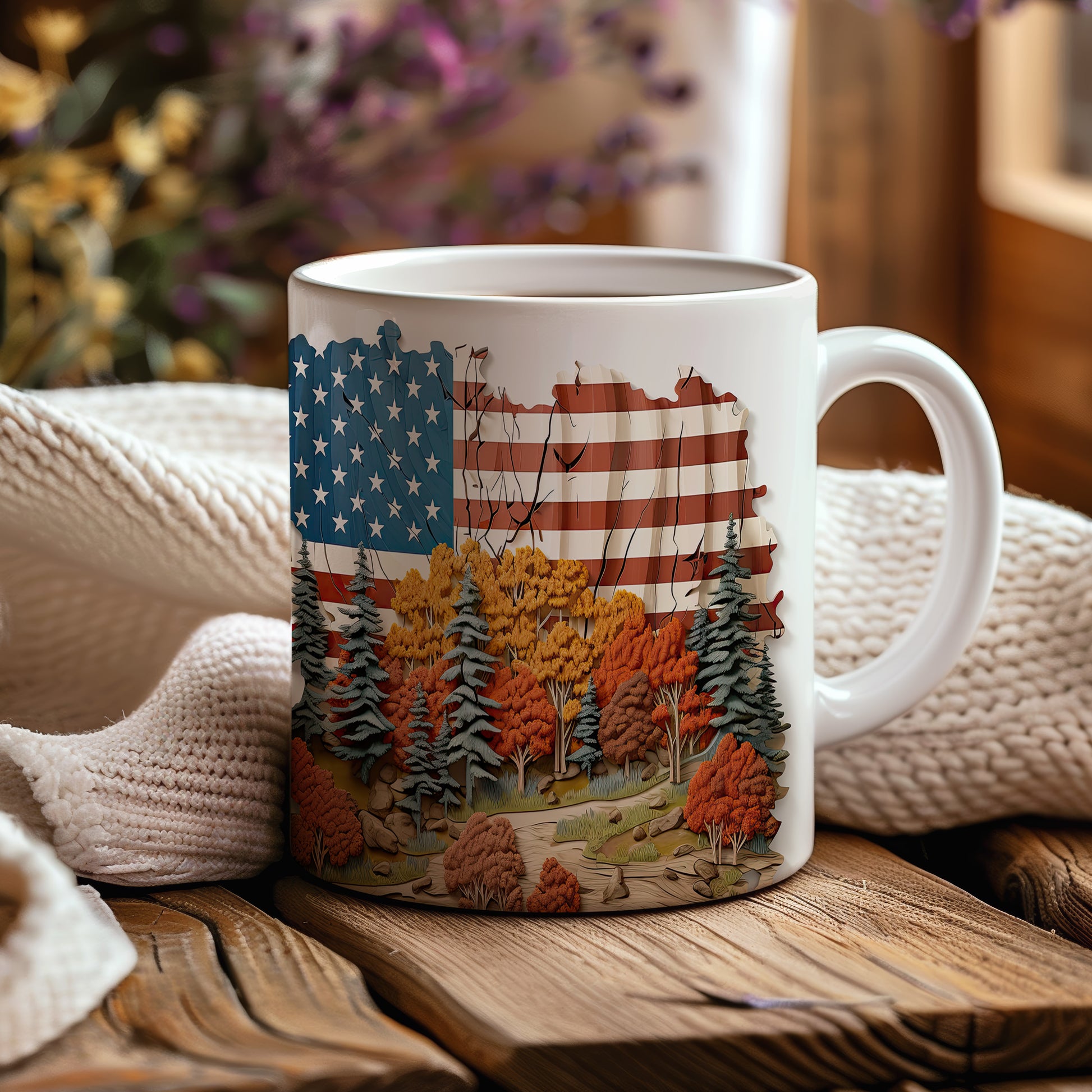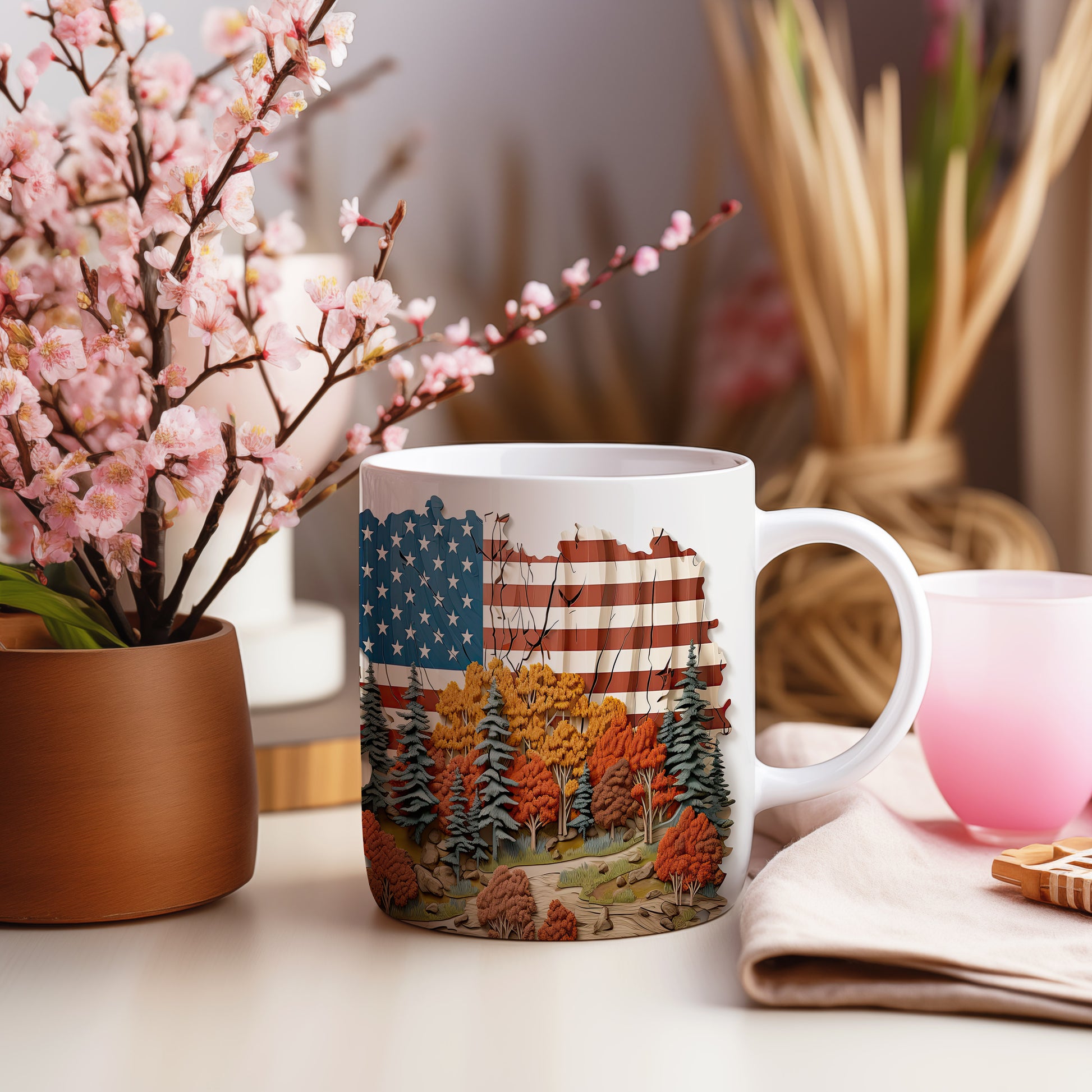 Hrnek s motivem krajiny a americkou vlajkou je skvělým kouskem pro milovníky přírody a vlastenectví. Tento hrnek je ideální jako dárek pro přátele nebo rodinu, kteří ocení krásu přírody a patriotismus. Materiál: keramika. Objem: 330 ml. Vhodné do myčky i mikrovlnky. Užívejte si svůj oblíbený nápoj s tímto stylovým hrnkem, který přináší radost do každého dne.