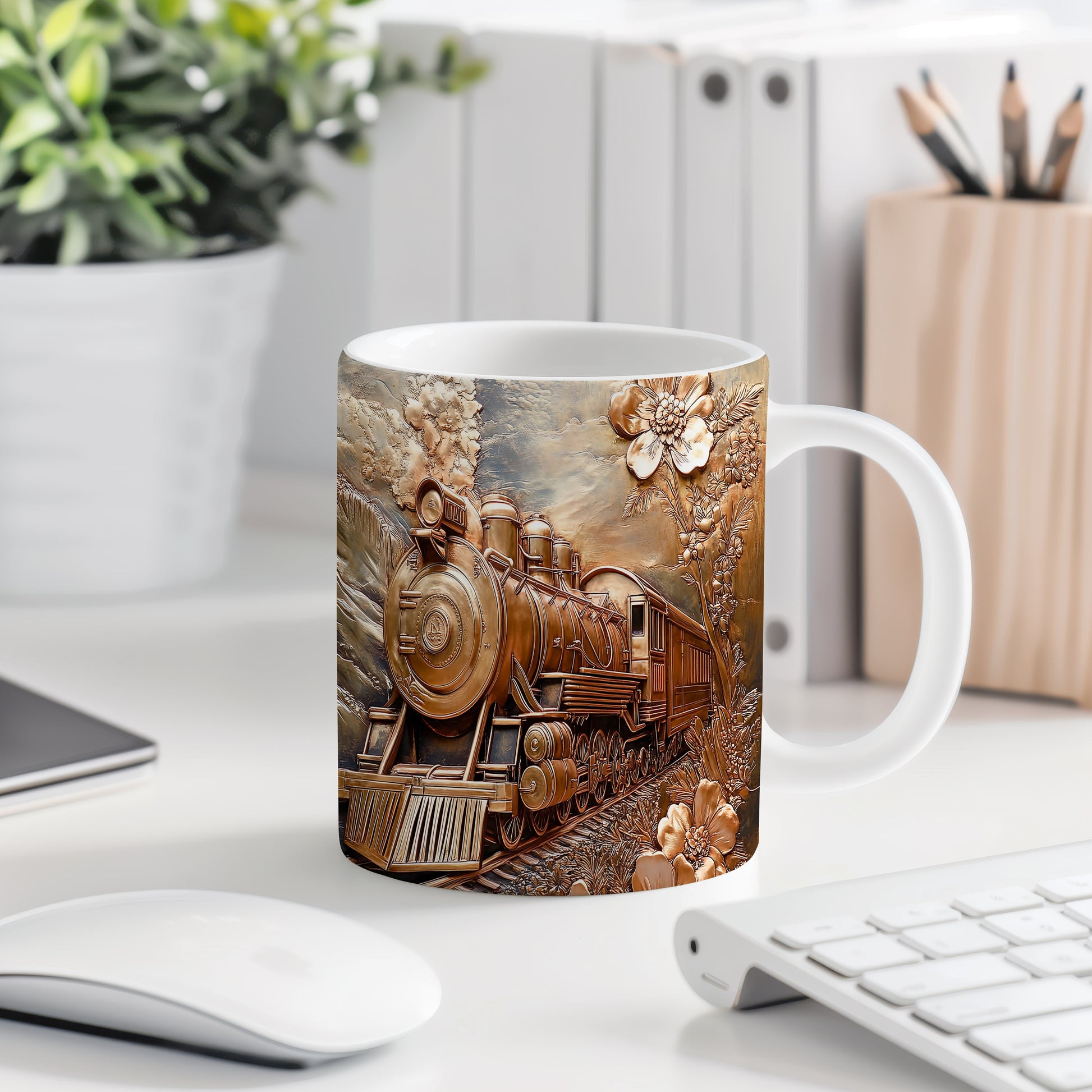 Tento hrnek zobrazuje krásný motiv vlaku projíždějícího malebnou krajinou. Je ideální pro milovníky vlaků a přírody, skvělý tip na dárek pro každého cestovatele. Materiál: keramika. Objem: 330 ml. Vhodné do myčky i mikrovlnky. Používáním tohoto hrnku si užijete nejen kávu nebo čaj, ale také pohled na nádhernou scenérii.