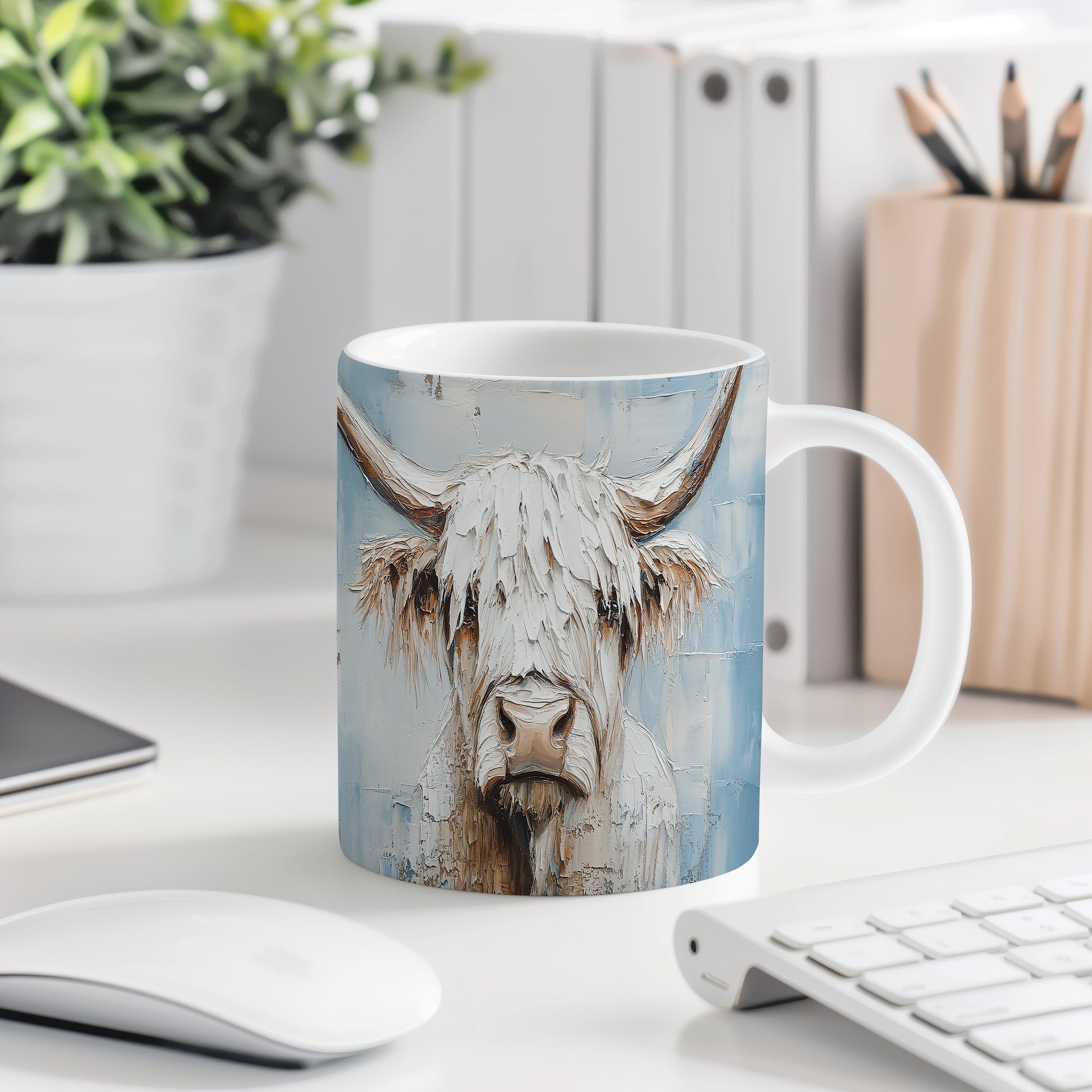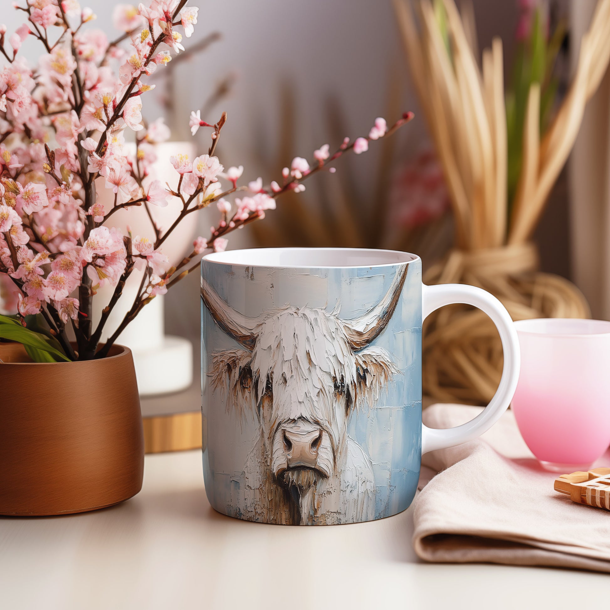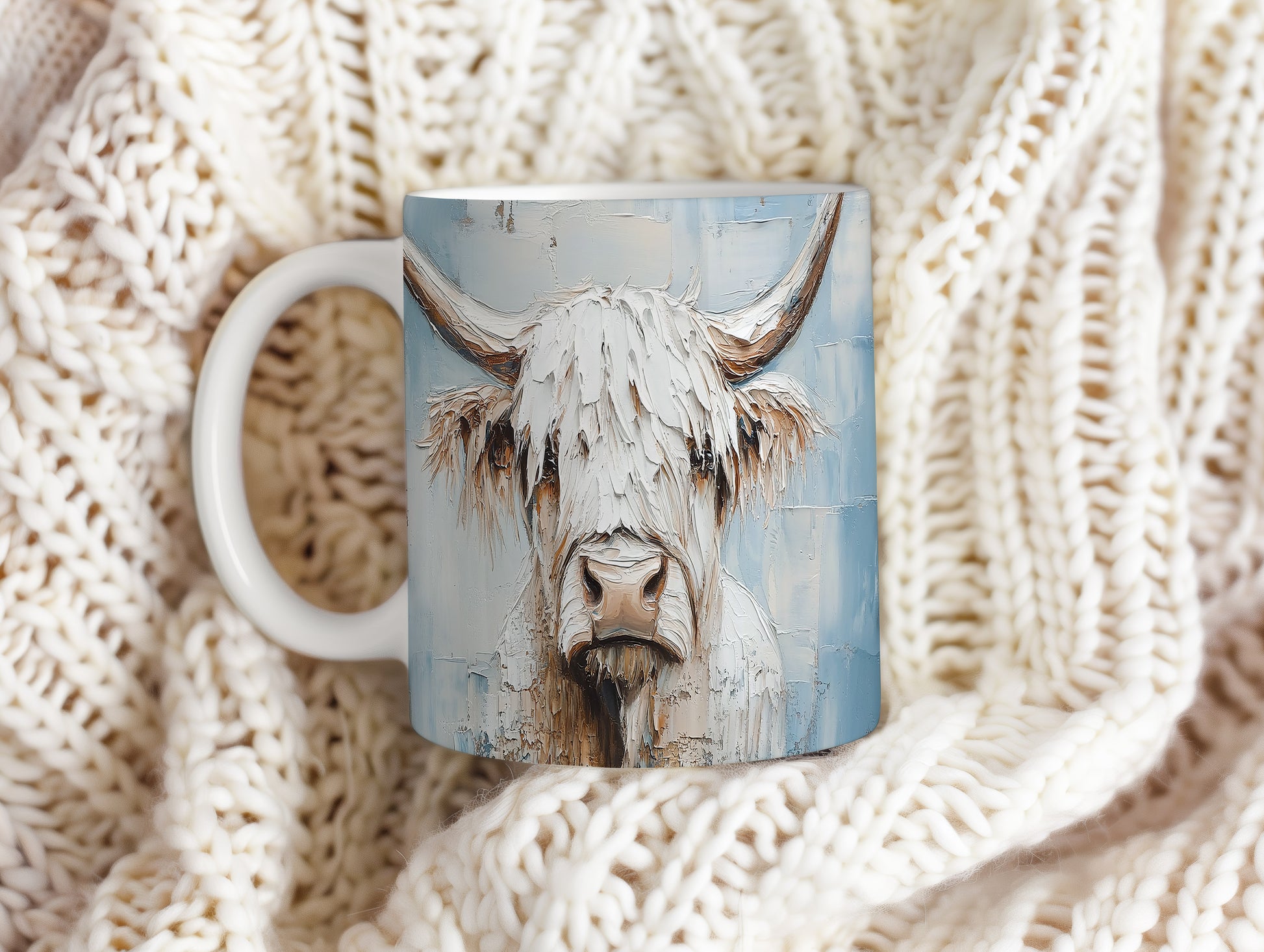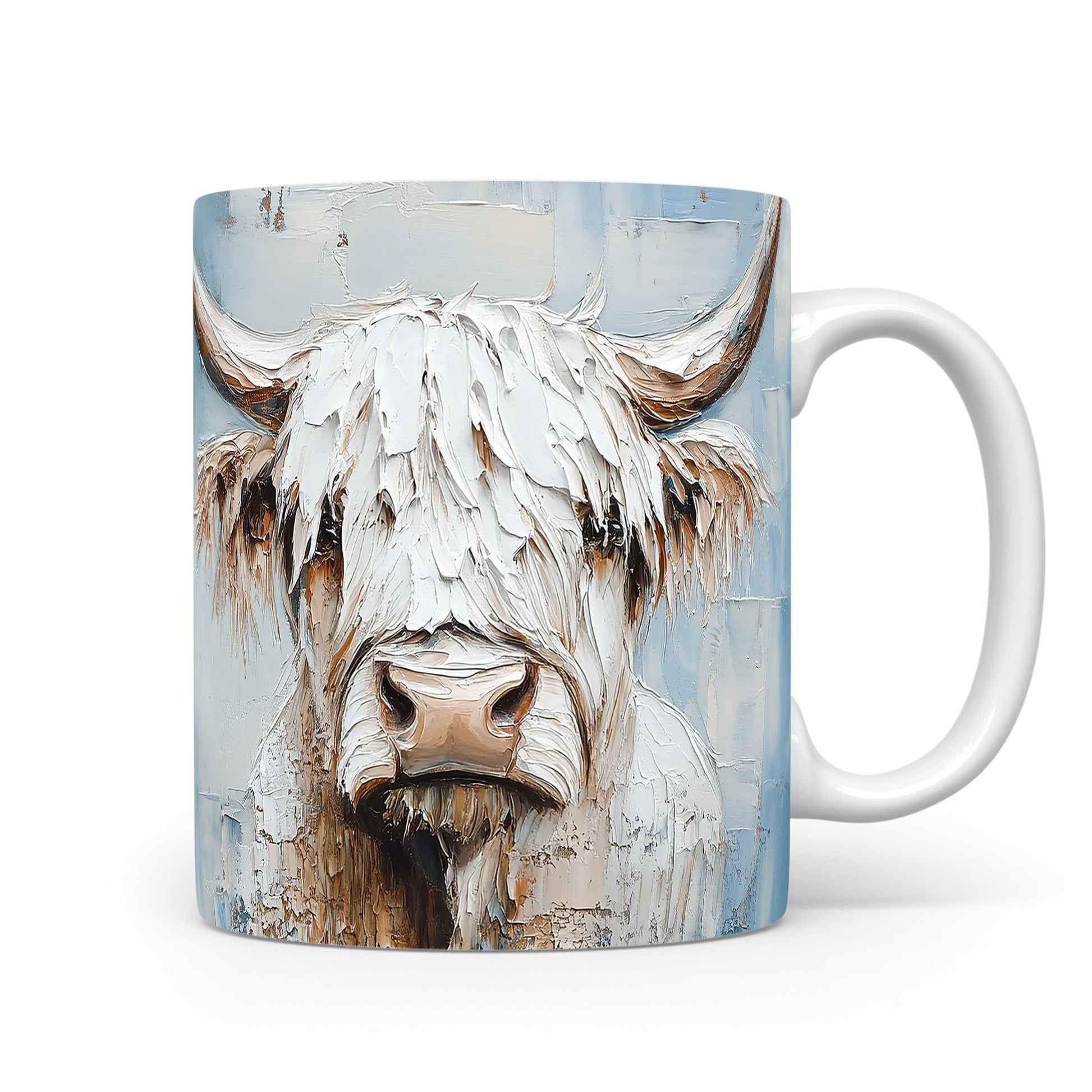 Hrnek s motivem krávy – modrými detaily