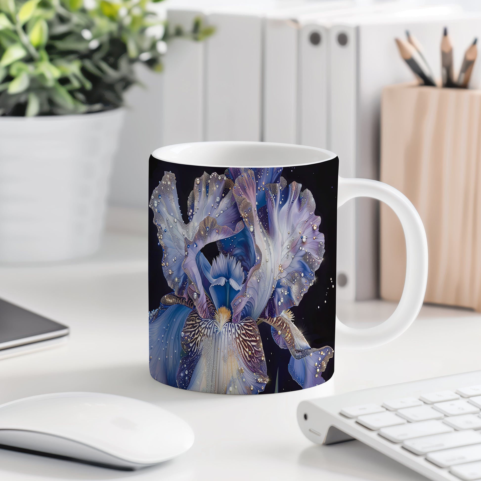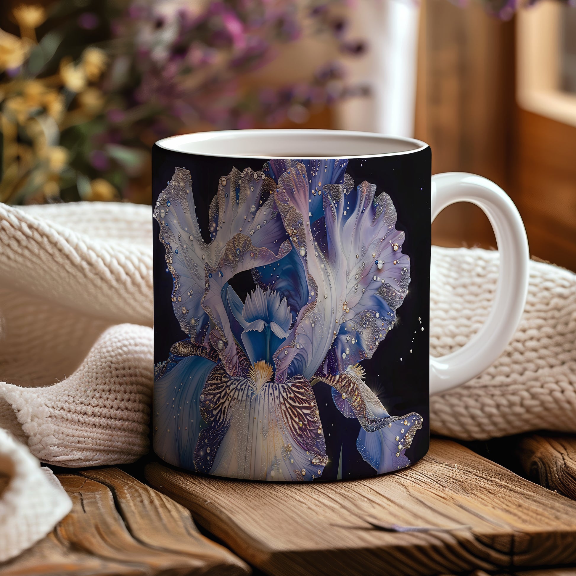 Tento hrnek je zdobený krásným motivem květiny v jemných odstínech modré a fialové. Je ideální pro milovníky přírody a skvělým dárkem pro každého, kdo ocení krásu květin. Materiál: keramika. Objem: 330 ml. Vhodné do myčky i mikrovlnky. Používání tohoto hrnku přináší radost z každého doušku vašeho oblíbeného nápoje.
